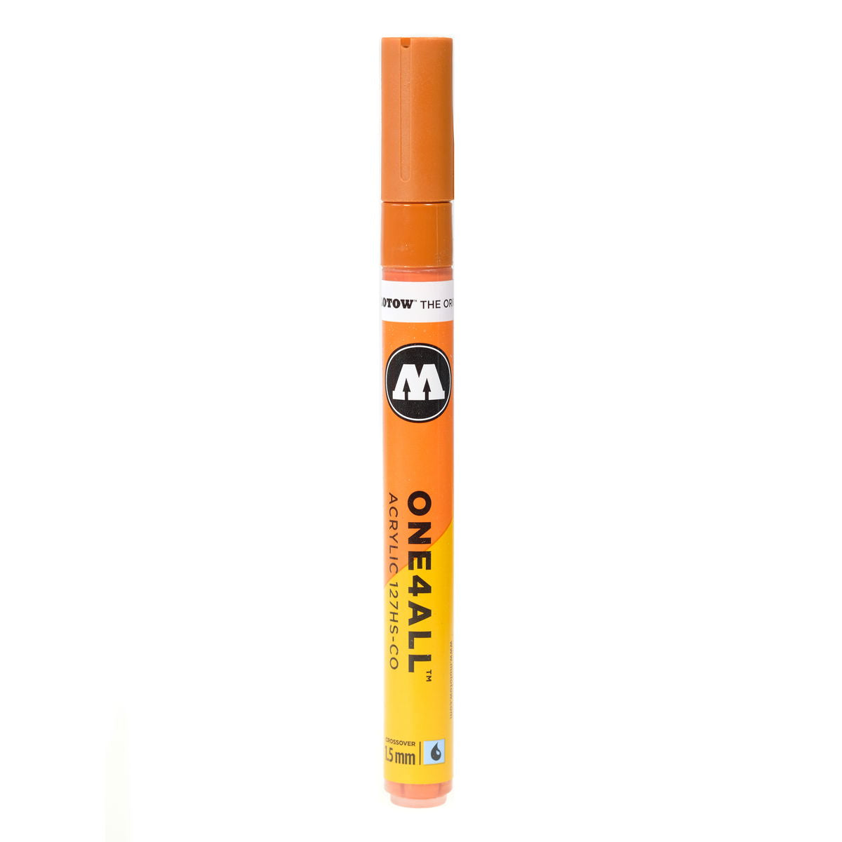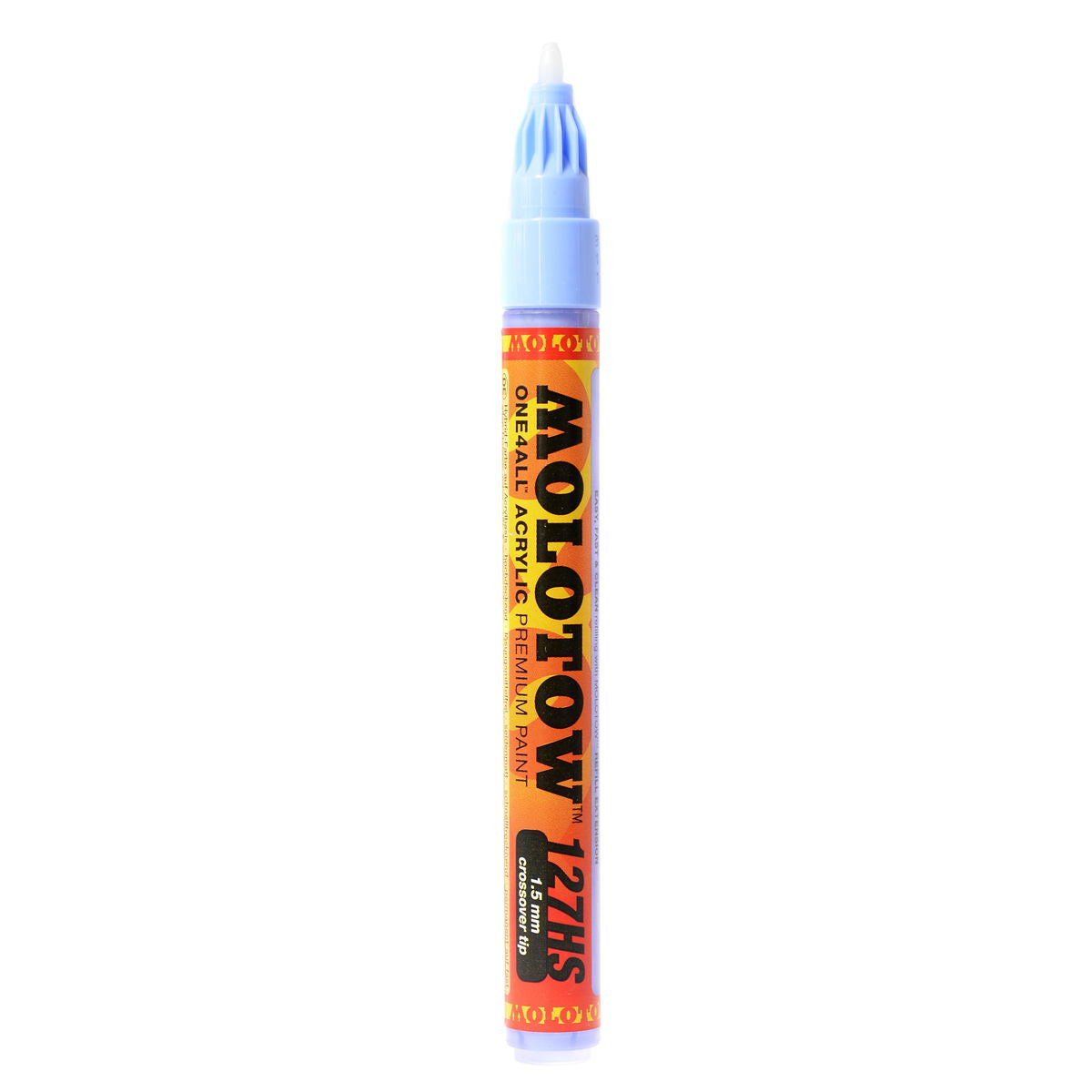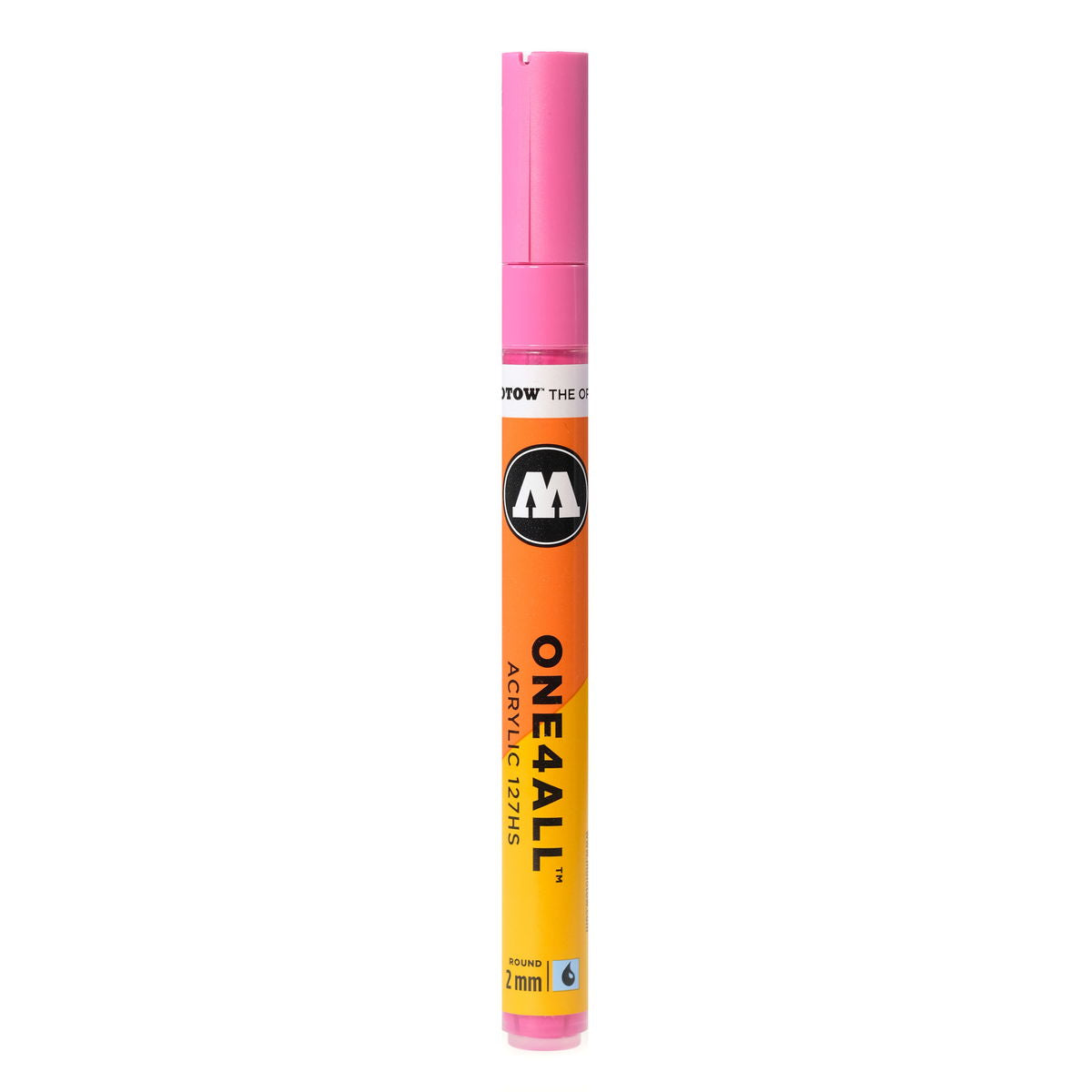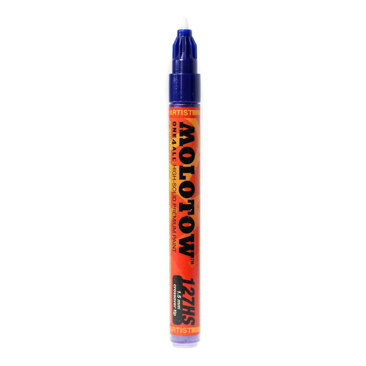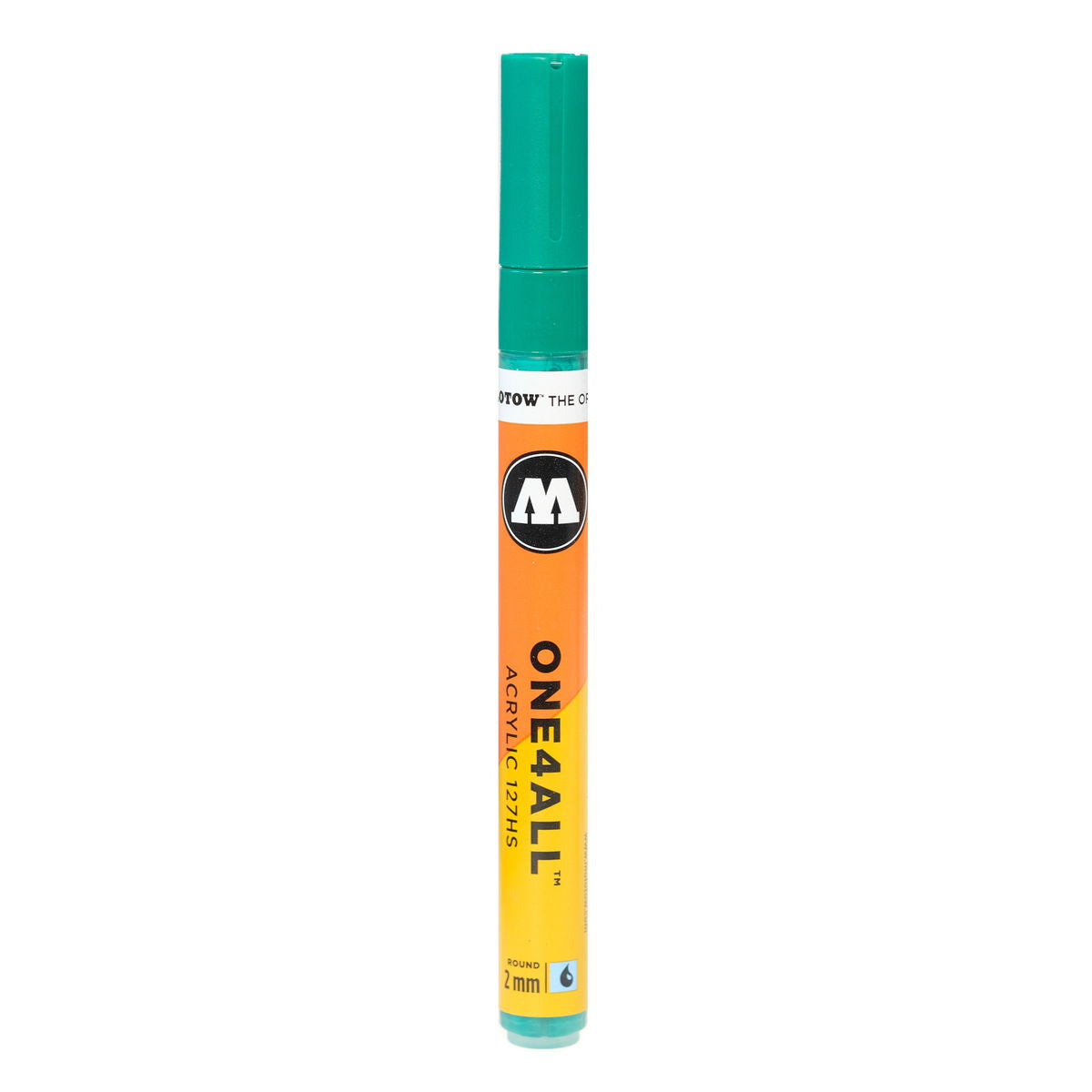 The Molotow One4All Acrylic Paint Makers are versatile and the part of most revolutionary and innovative paint system worldwide. The highly pigmented, solvent free acrylic-based hybrid-paint covers nearly every surface indoor and outdoor. Features include: exchangeable tips, dilutable with water or acetone, patented capillary technology, Flowmaster pump-valve, mixing balls, high-tight cap with rolling stop, refillable with One4All refills, high-covering and UV resistant. Available in 1 mm extra-fine, 1.5 mm crossover, 2 mm fine, 4 mm round, and 15 mm standard size nibs. With a variety of 50 fantastic colors, these markers are the perfect tool for creating hip urban art and much more.