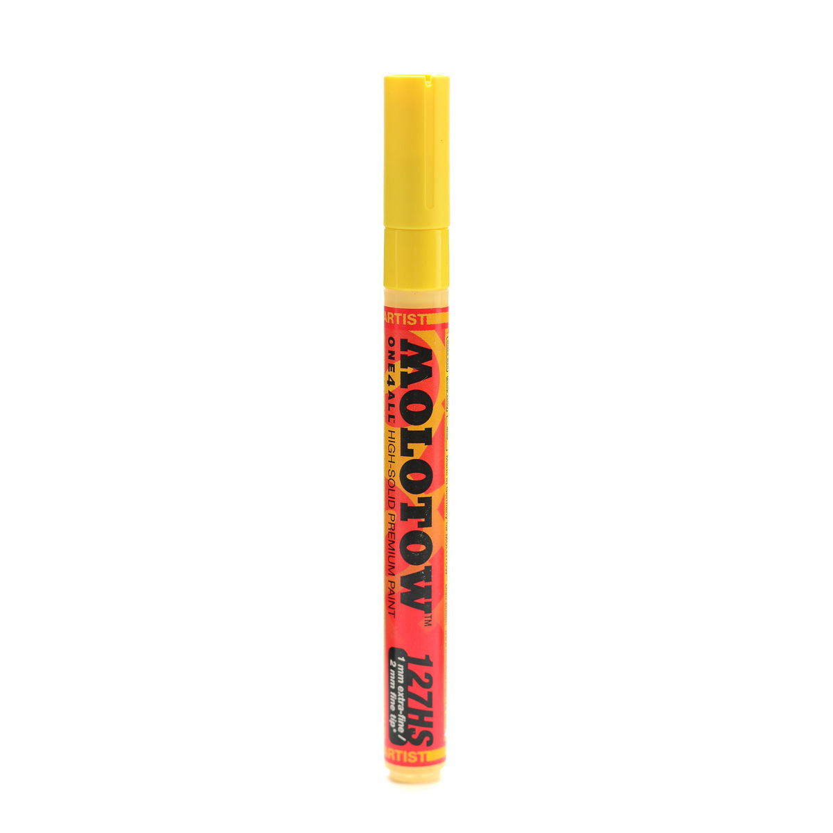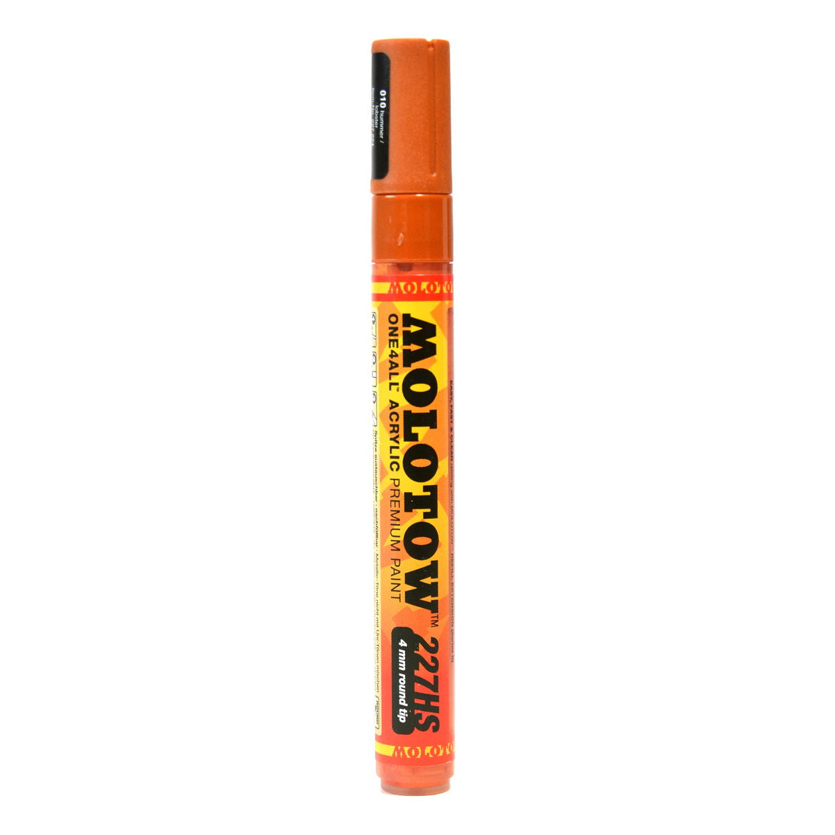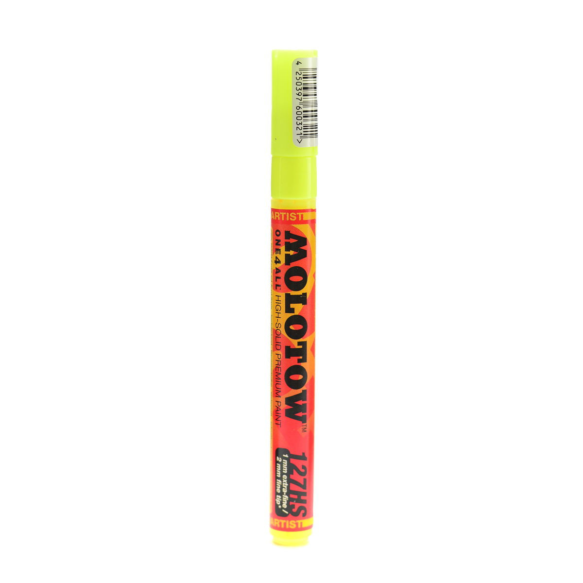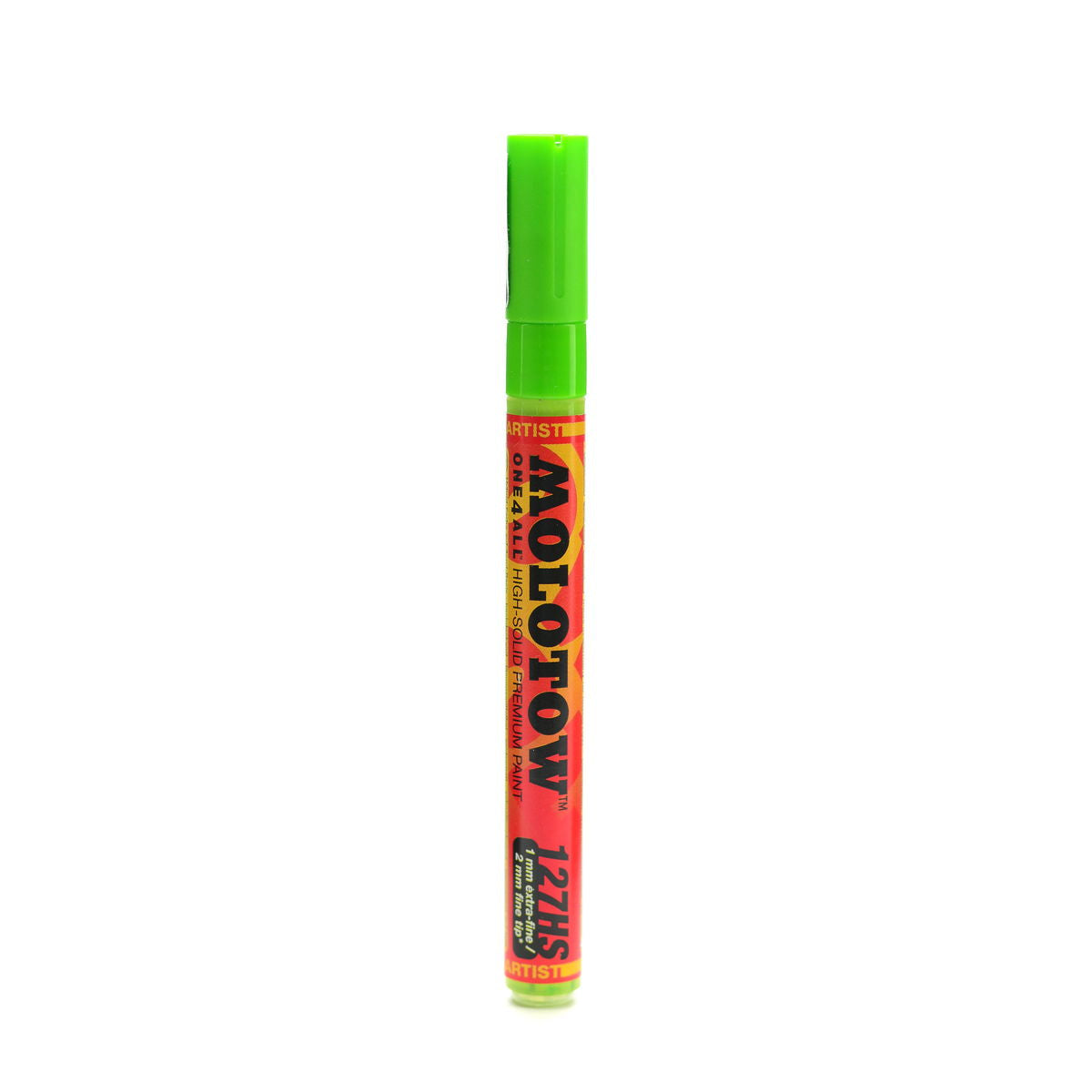 The Molotow One4All Acrylic Paint Makers are versatile and the part of most revolutionary and innovative paint system worldwide. The highly pigmented, solvent free acrylic-based hybrid-paint covers nearly every surface indoor and outdoor. Features include: exchangeable tips, dilutable with water or acetone, patented capillary technology, Flowmaster pump-valve, mixing balls, high-tight cap with rolling stop, refillable with One4All refills, high-covering and UV resistant. Available in 1 mm extra-fine, 1.5 mm crossover, 2 mm fine, 4 mm round, and 15 mm standard size nibs. With a variety of 50 fantastic colors, these markers are the perfect tool for creating hip urban art and much more.