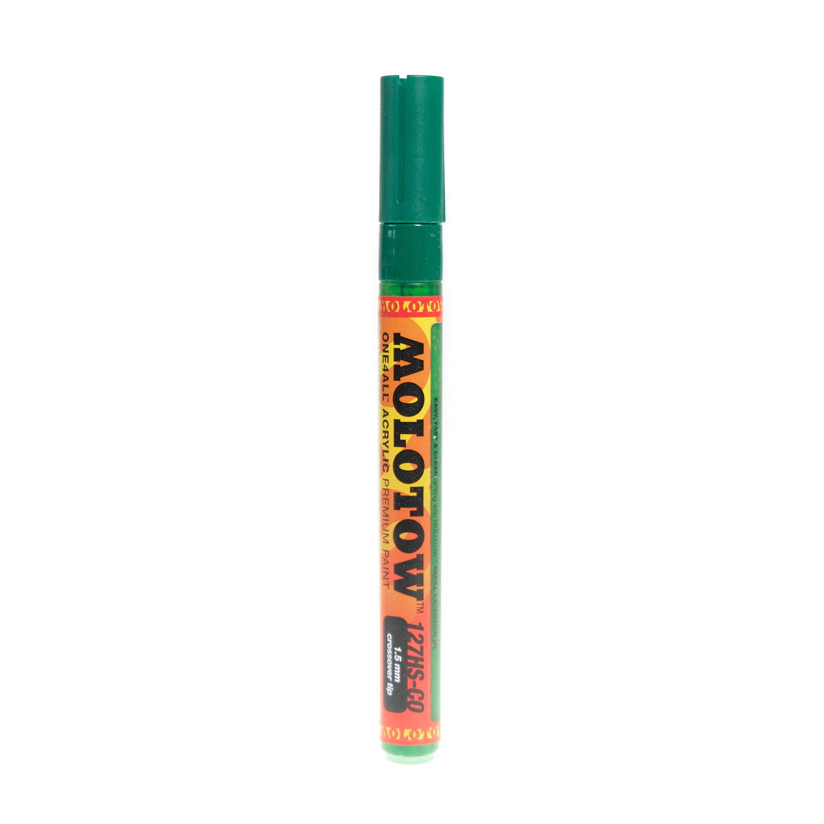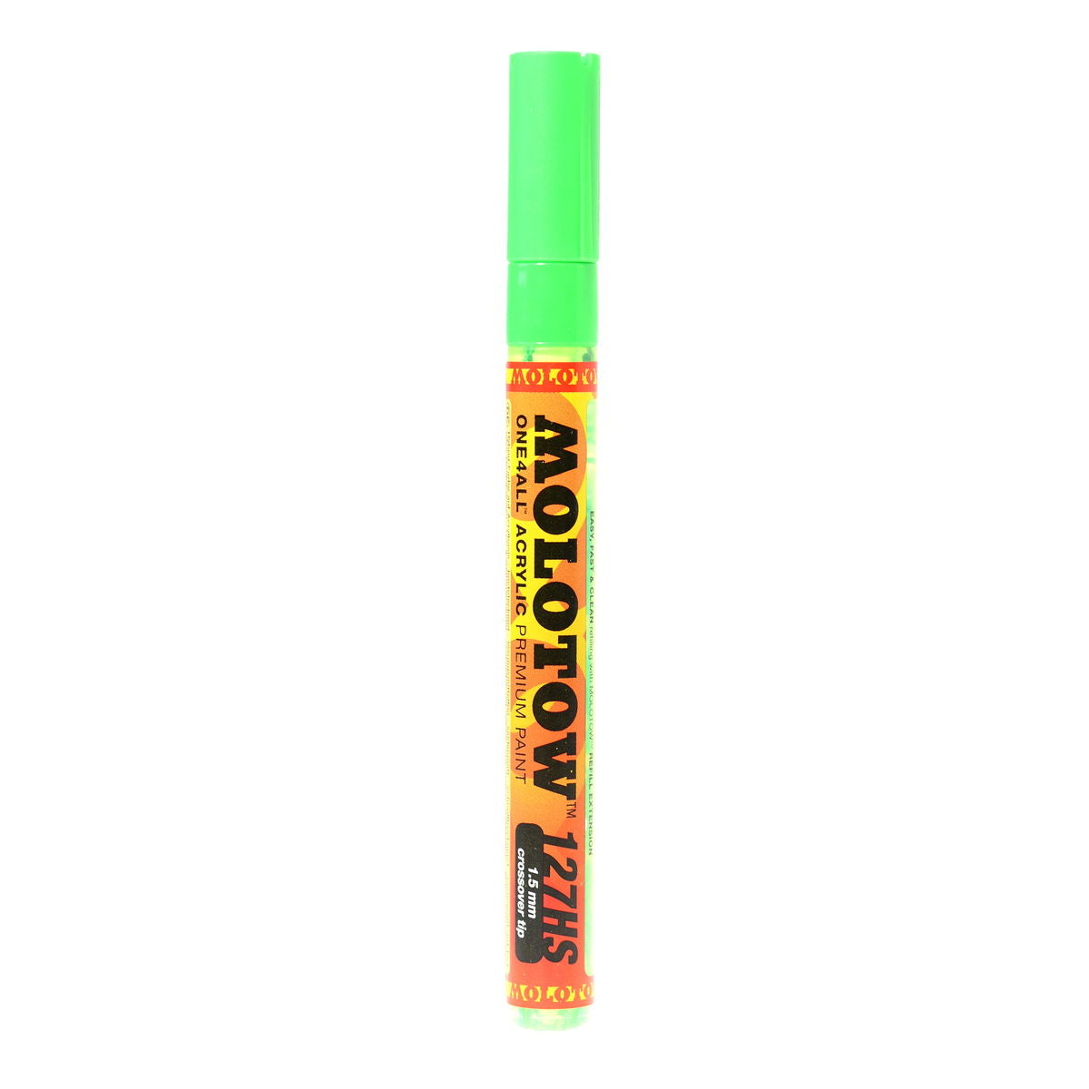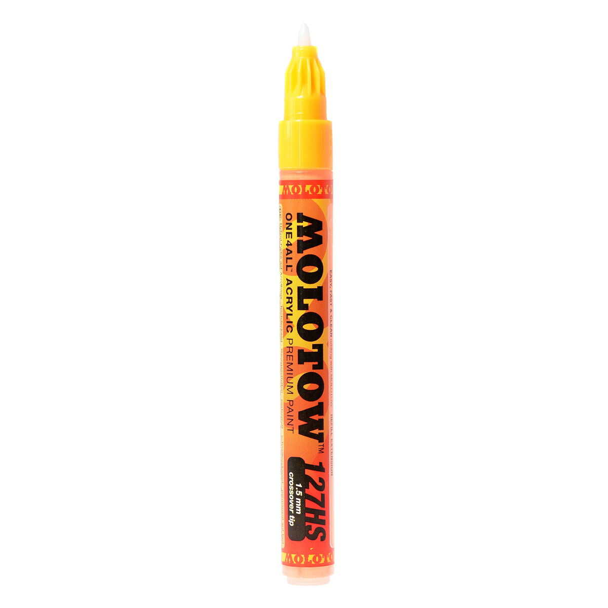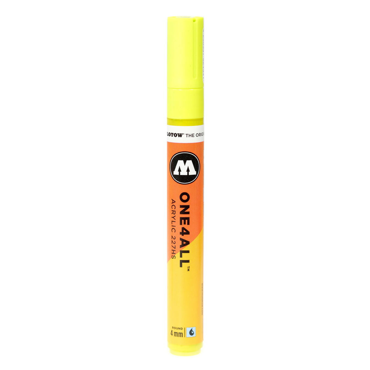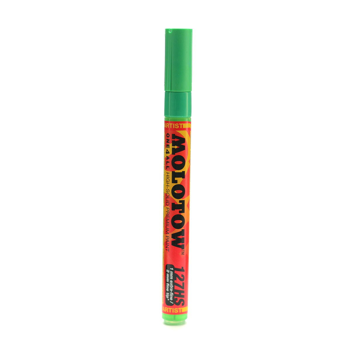 The Molotow One4All Acrylic Paint Makers are versatile and the part of most revolutionary and innovative paint system worldwide. The highly pigmented, solvent free acrylic-based hybrid-paint covers nearly every surface indoor and outdoor. Features include: exchangeable tips, dilutable with water or acetone, patented capillary technology, Flowmaster pump-valve, mixing balls, high-tight cap with rolling stop, refillable with One4All refills, high-covering and UV resistant. Available in 1 mm extra-fine, 1.5 mm crossover, 2 mm fine, 4 mm round, and 15 mm standard size nibs. With a variety of 50 fantastic colors, these markers are the perfect tool for creating hip urban art and much more.
