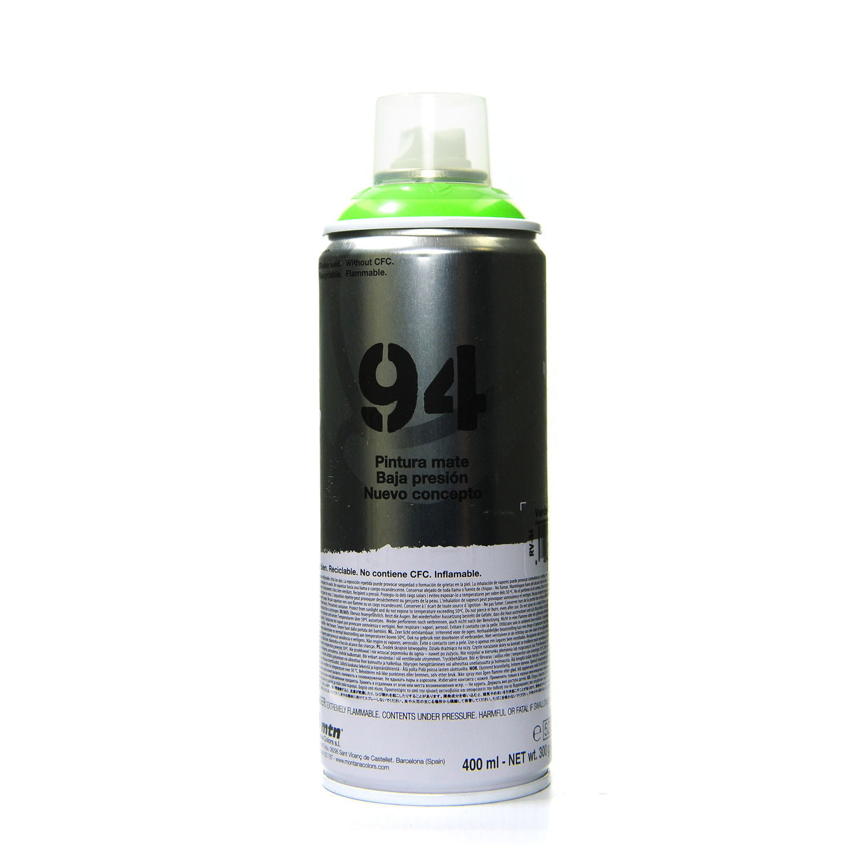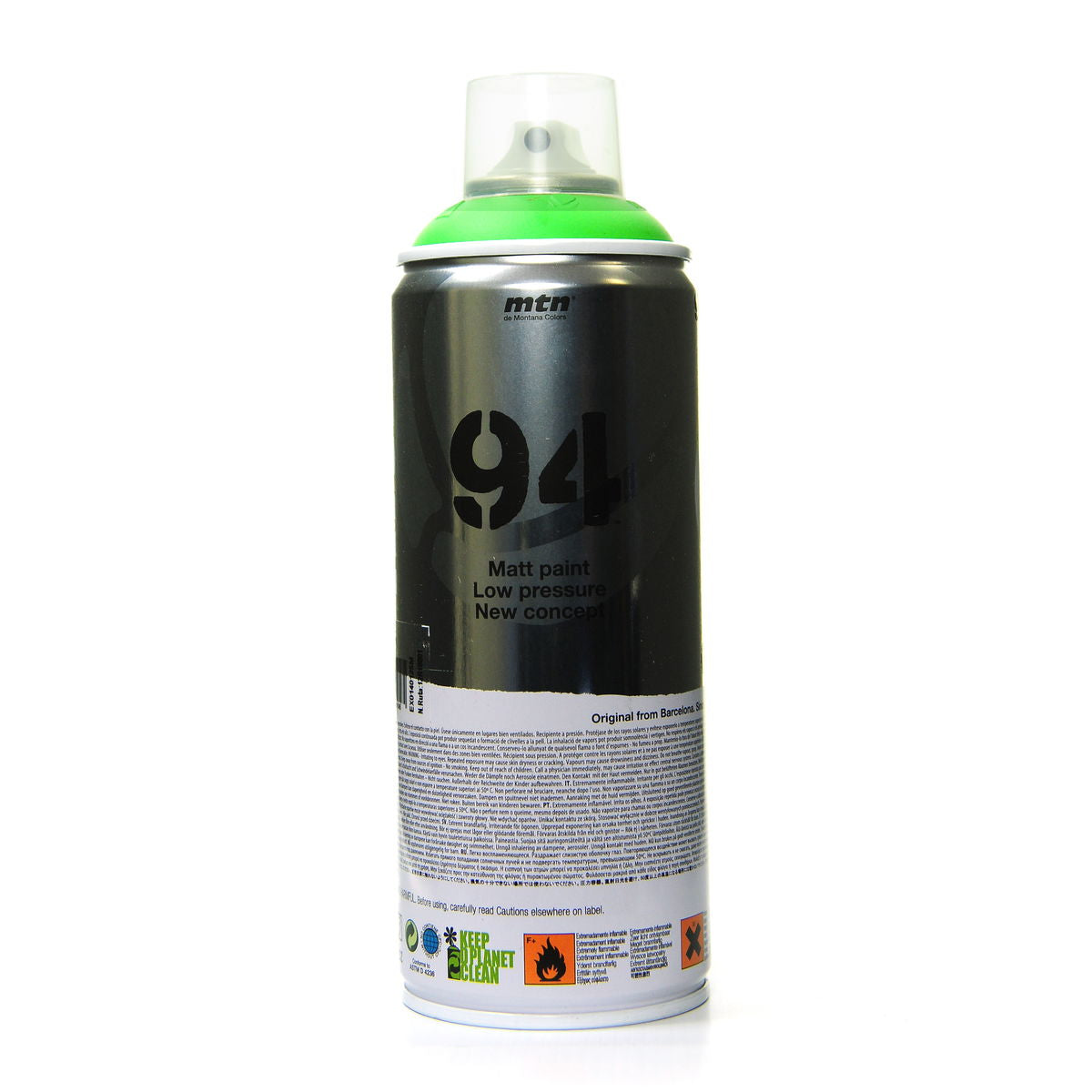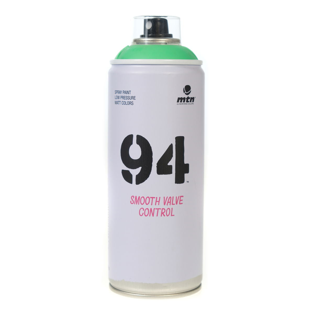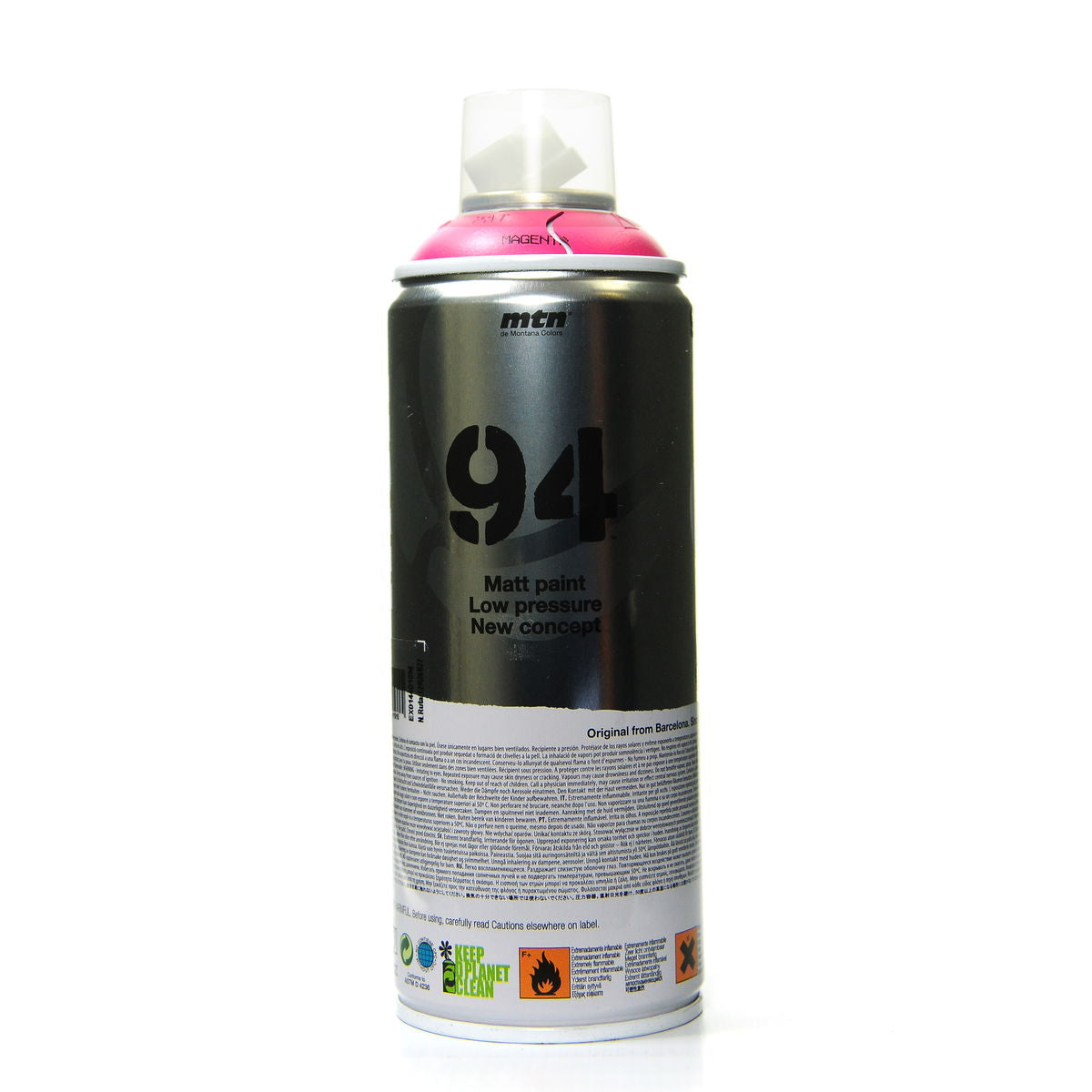 These spray paints, named for the year Montana Colors began manufacturing in 1994, feature variable pressure, excellent coverage, and give you amazing control. The 94 line of paints are specially formulated for smooth, even flow on many different kinds of surfaces. Spray on metal, canvas, painted surfaces, wood, glass, plastic, and paper. Permanent, quick-drying, fade and water-resistant, and containing no CFC s or lead, artists can create wherever the mood strikes, either indoors or outside. These paints all have a matte finish, and are available in 400-millileter cans.