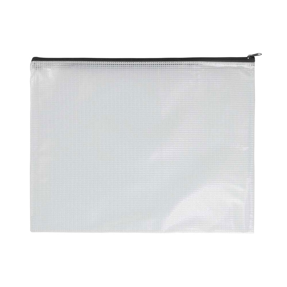 Pacific Arc Vinyl Bags are designed to be convenient carrying cases for art supplies and more. They are constructed with mesh-reinforced sides, providing increased strength and durability. The heavy-duty vinyl material ensures long-lasting performance at an affordable price. These bags are available in a wide variety of sizes and styles to suit your needs. Each bag is securely enclosed with a zipper. The Envelopes and Totes feature a zipper along the long edge, except for the 5 in. x 16 in. size, which has a zipper along the short edge. The 3-Ring Binder Case is equipped with a blue reinforced edge and three grommets. The Deluxe Bags are designed with two handles and a convenient small outside storage pocket.