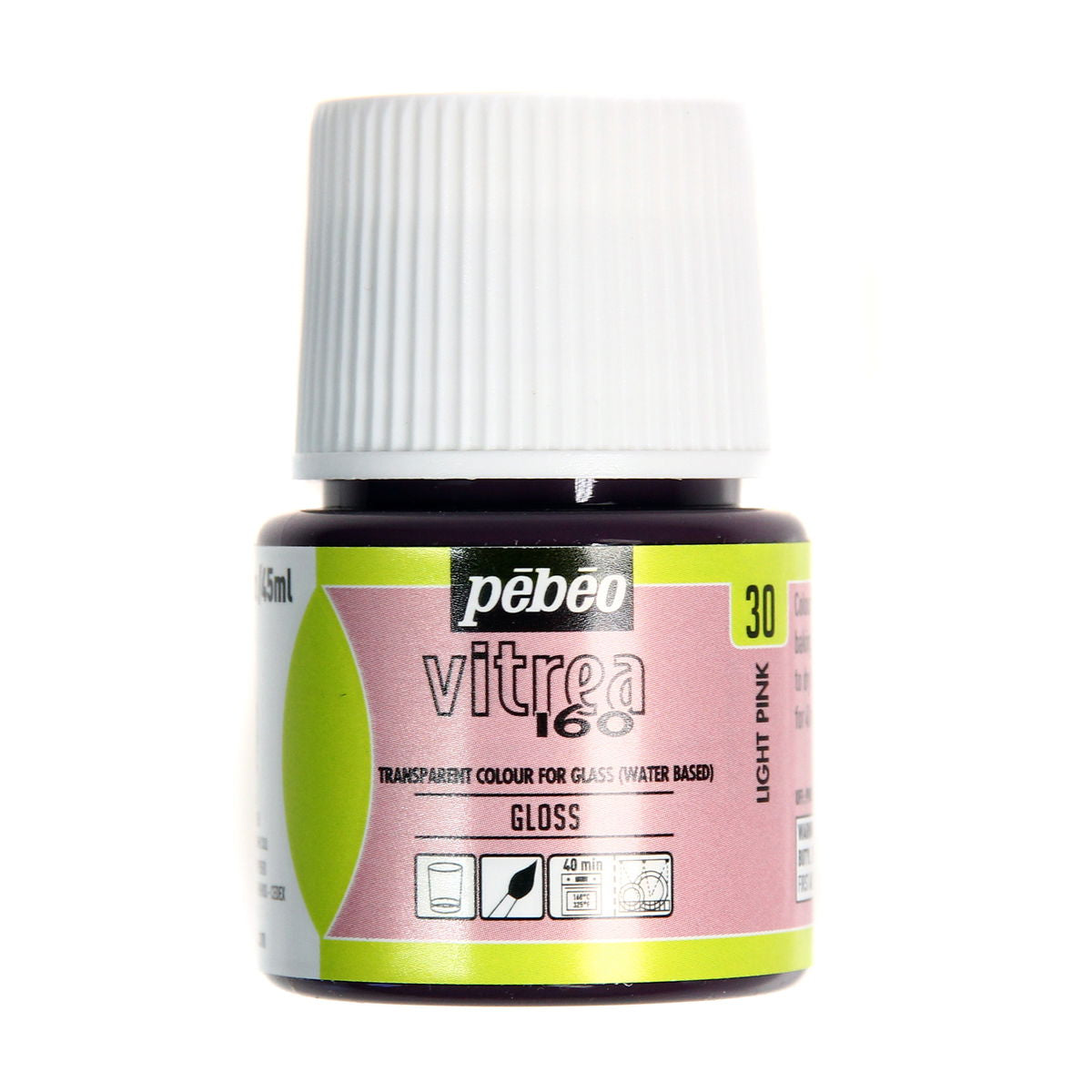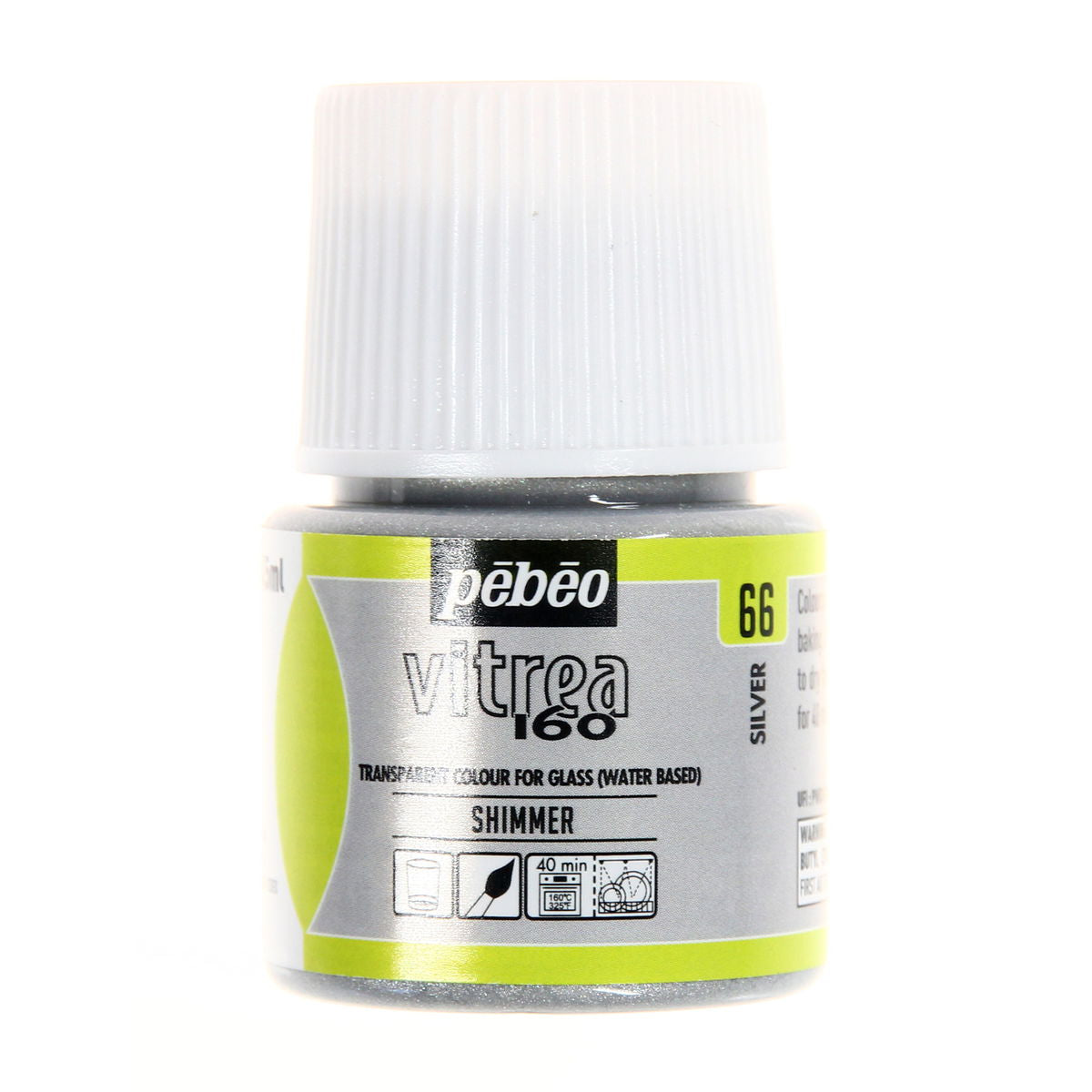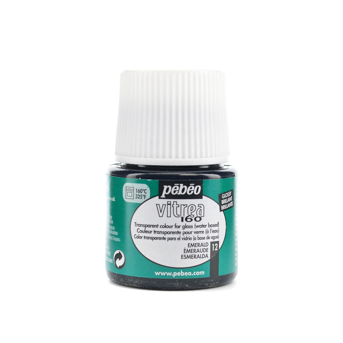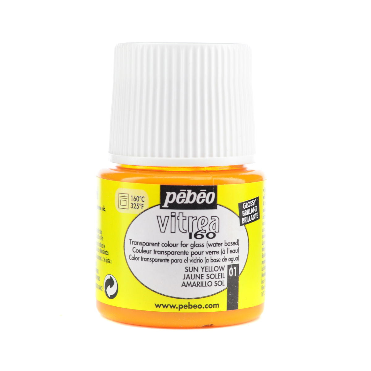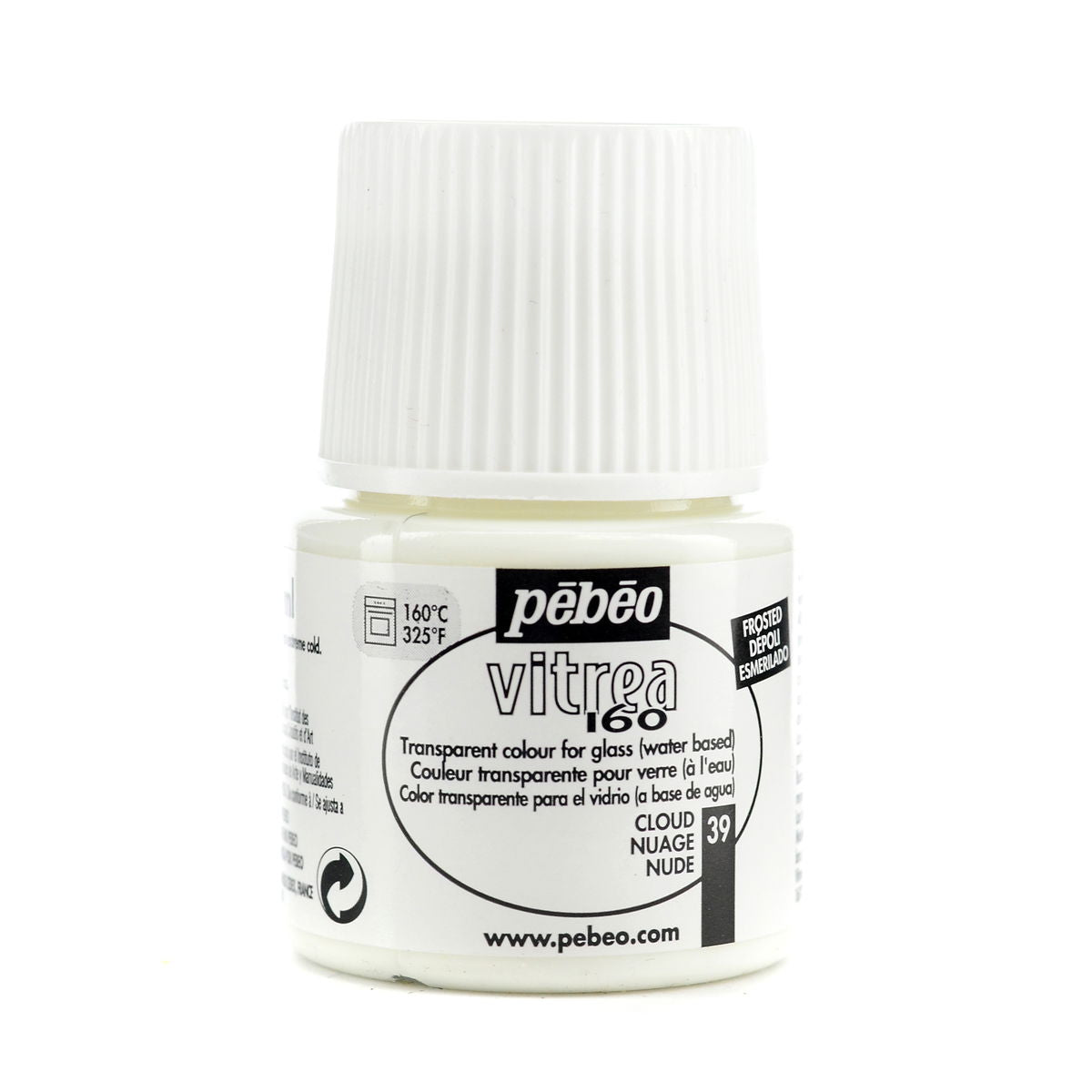Pebeo Vitrea 160 colors are transparent, water-based paints for use on glass. Use Vitrea 160 glossy or frosted colors to create vivid artwork that gathers gorgeous light. Vitrea 160 colors become dishwasher-safe after baking. Available in 1.5-ounce (45 ml) bottles.
