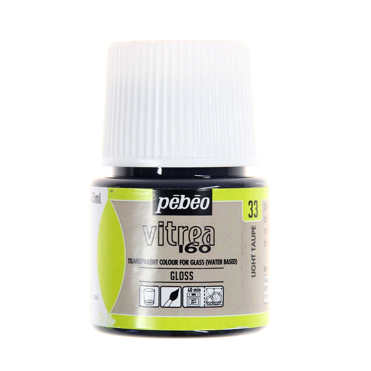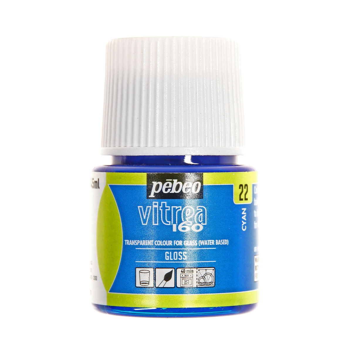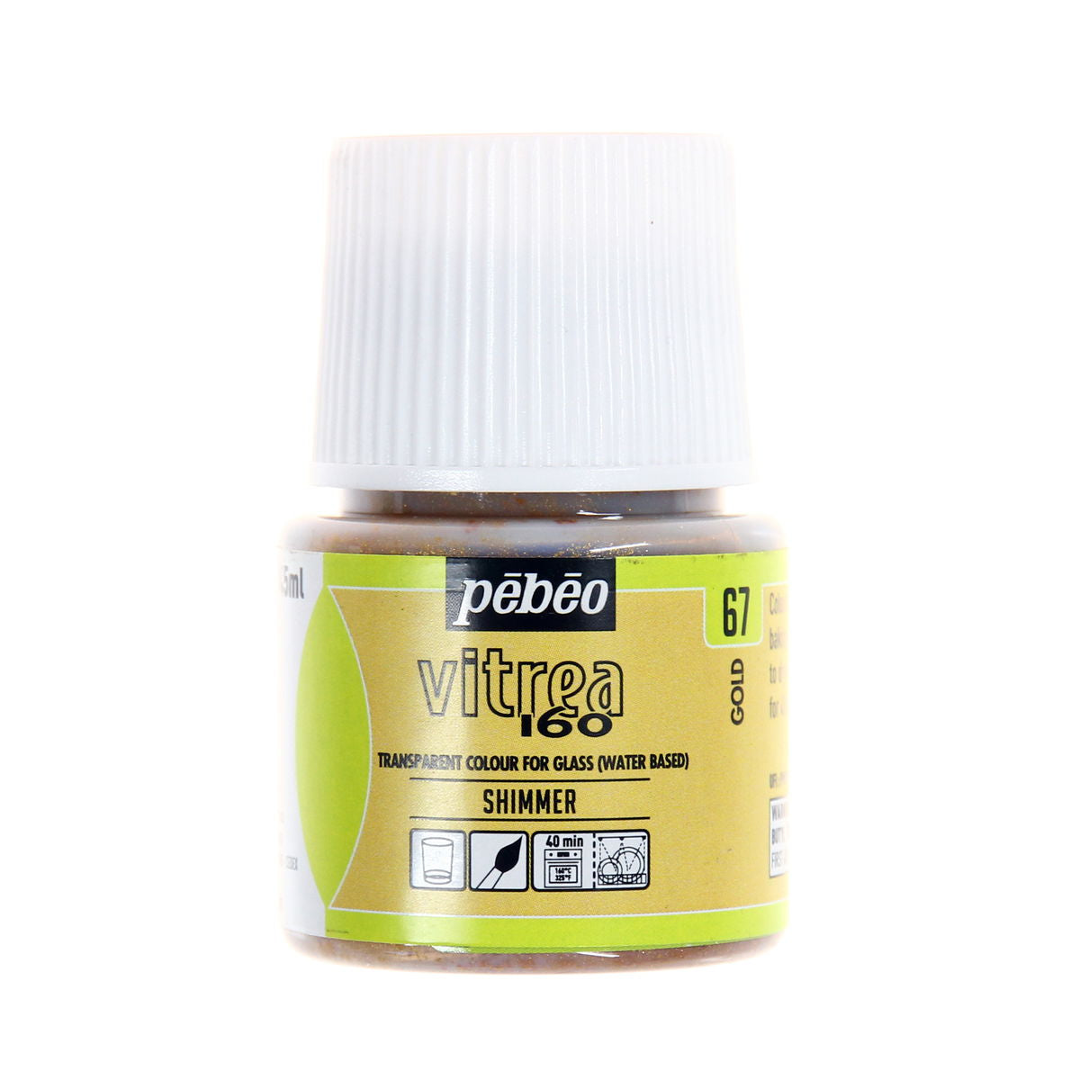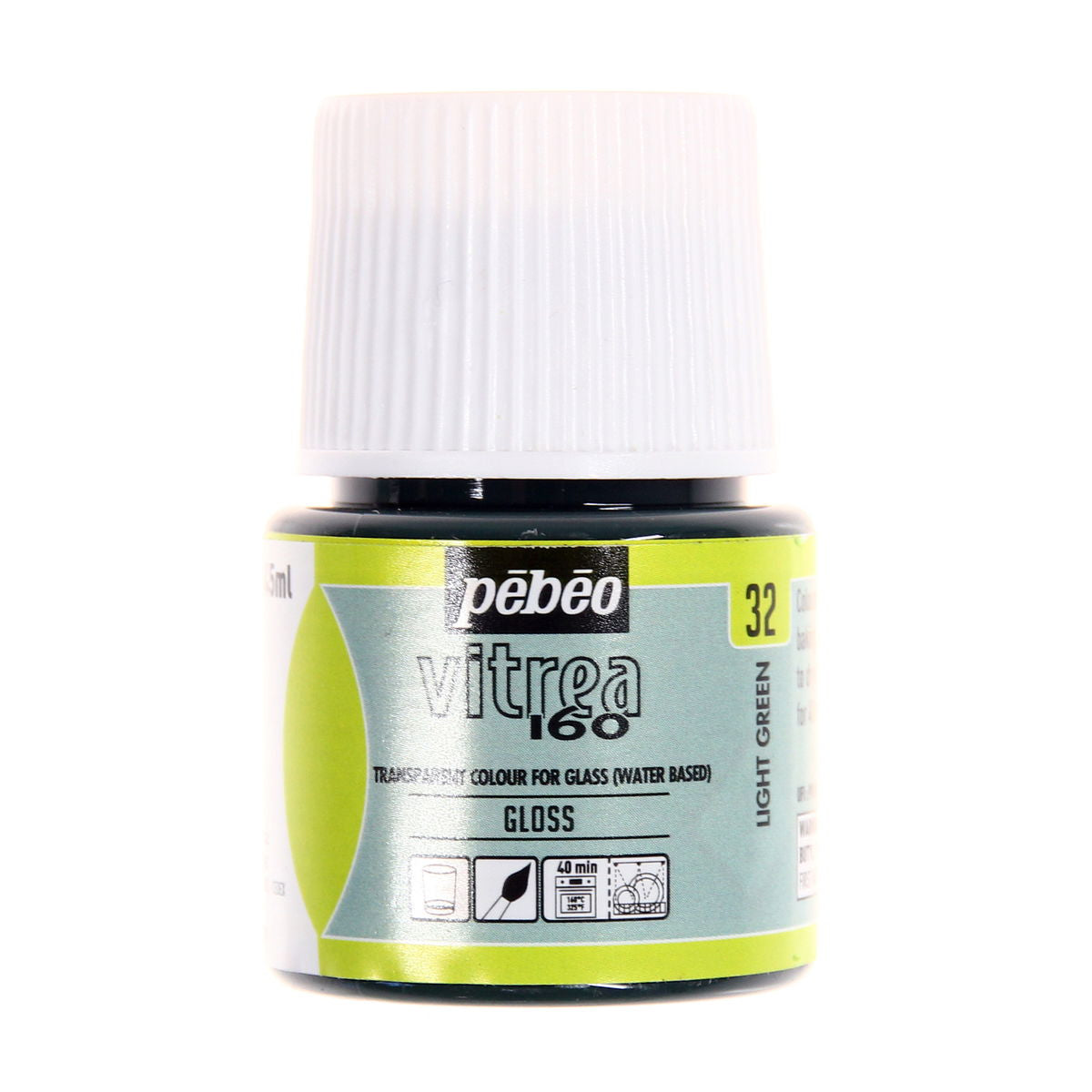 Pebeo Vitrea 160 colors are transparent, water-based paints for use on glass. Use Vitrea 160 glossy or frosted colors to create vivid artwork that gathers gorgeous light. Vitrea 160 colors become dishwasher-safe after baking. Available in 1.5-ounce (45 ml) bottles.