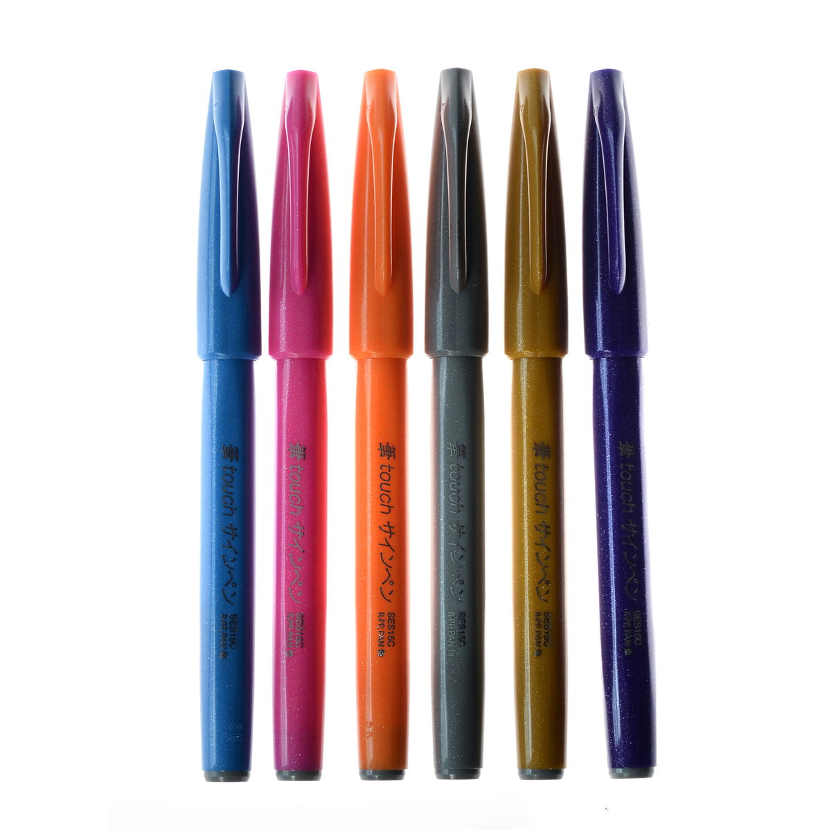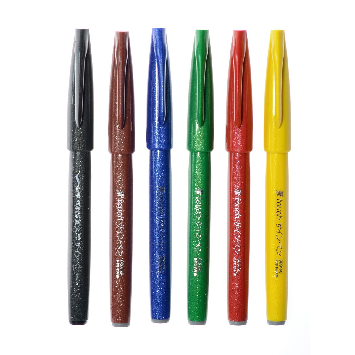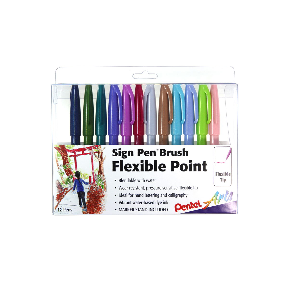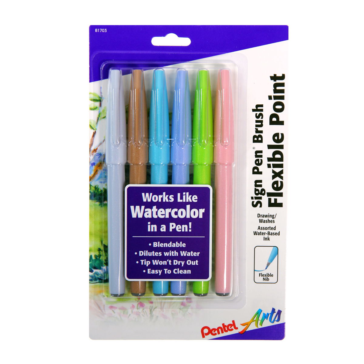 Sets of Brush-Tip Sign Pens in assorted ink colors. Radiant, water-based ink produces expressive, bold lines. Snap-fit cap prevents the firm, durable tip from drying out when not in use. Ideal for artists or anyone who enjoys writing and drawing. Perfect for general writing, drawing, doodling and adding character to any signature. ACMI Certified Nonrefillable