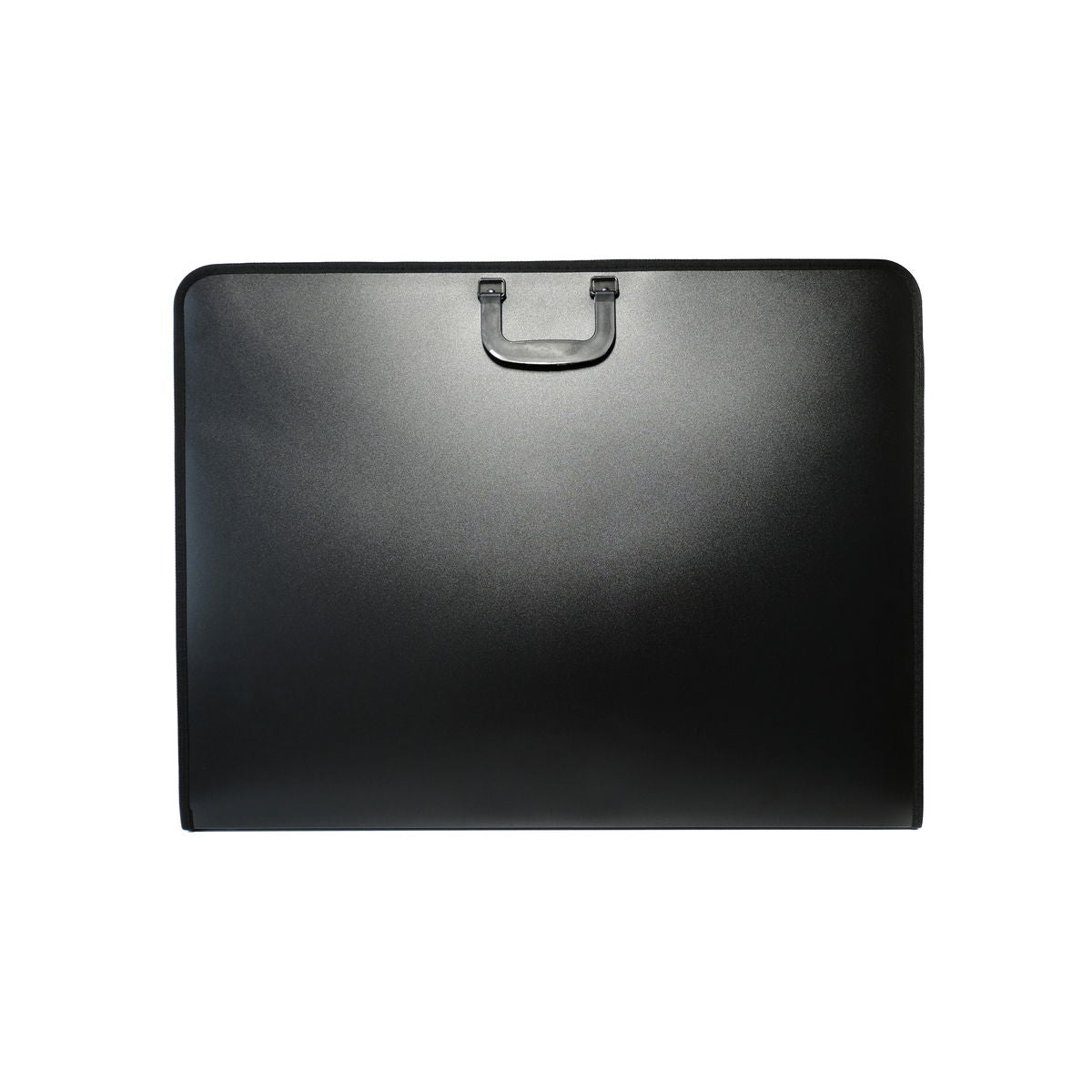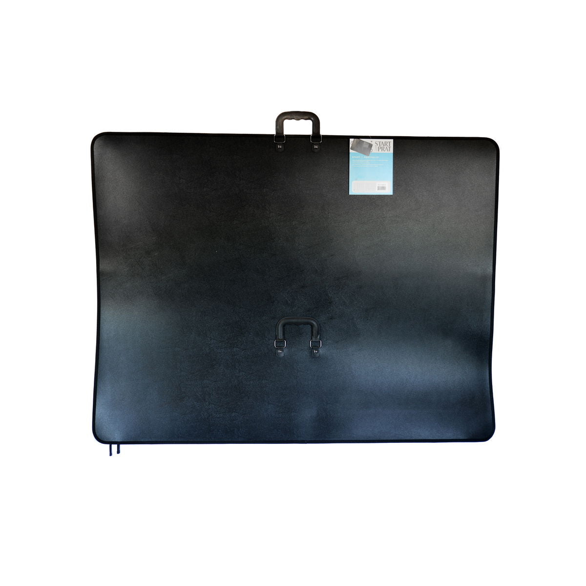 Prat s Start 1 Portfolios are the perfect tool for students or professionals to carry their artwork, photographs, graphics, documents, and more! The sleek, sturdy, and lightweight portfolio protects your work with an acid-free construction and buffalo grain polypropylene surface. Its comfortable handle fits right in your hand, and the smooth running double-action zipper makes it easy to secure your work. The inner straps feature a clip fastener for secure placement and a full-sized pocket on the opposite side provide additional organization options.