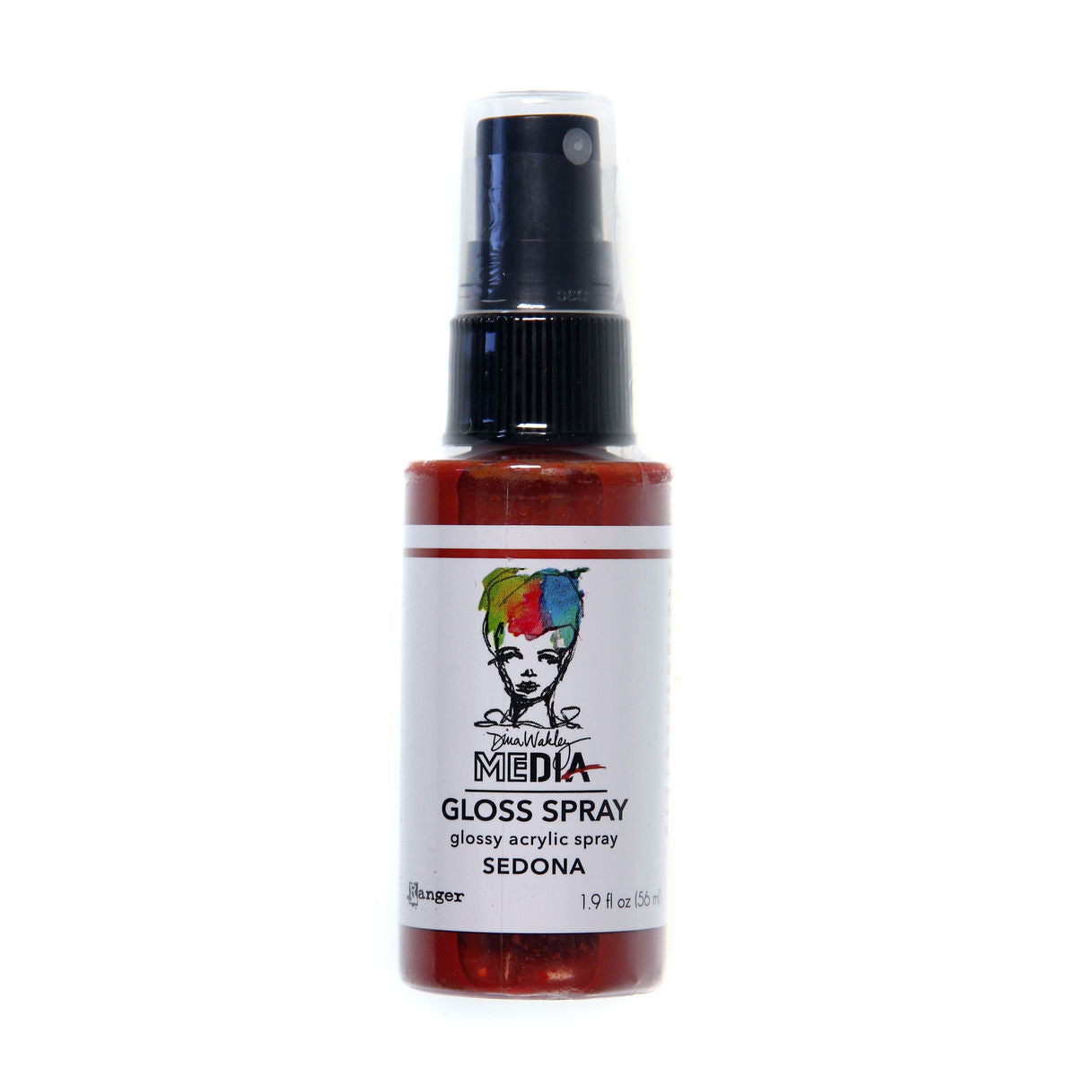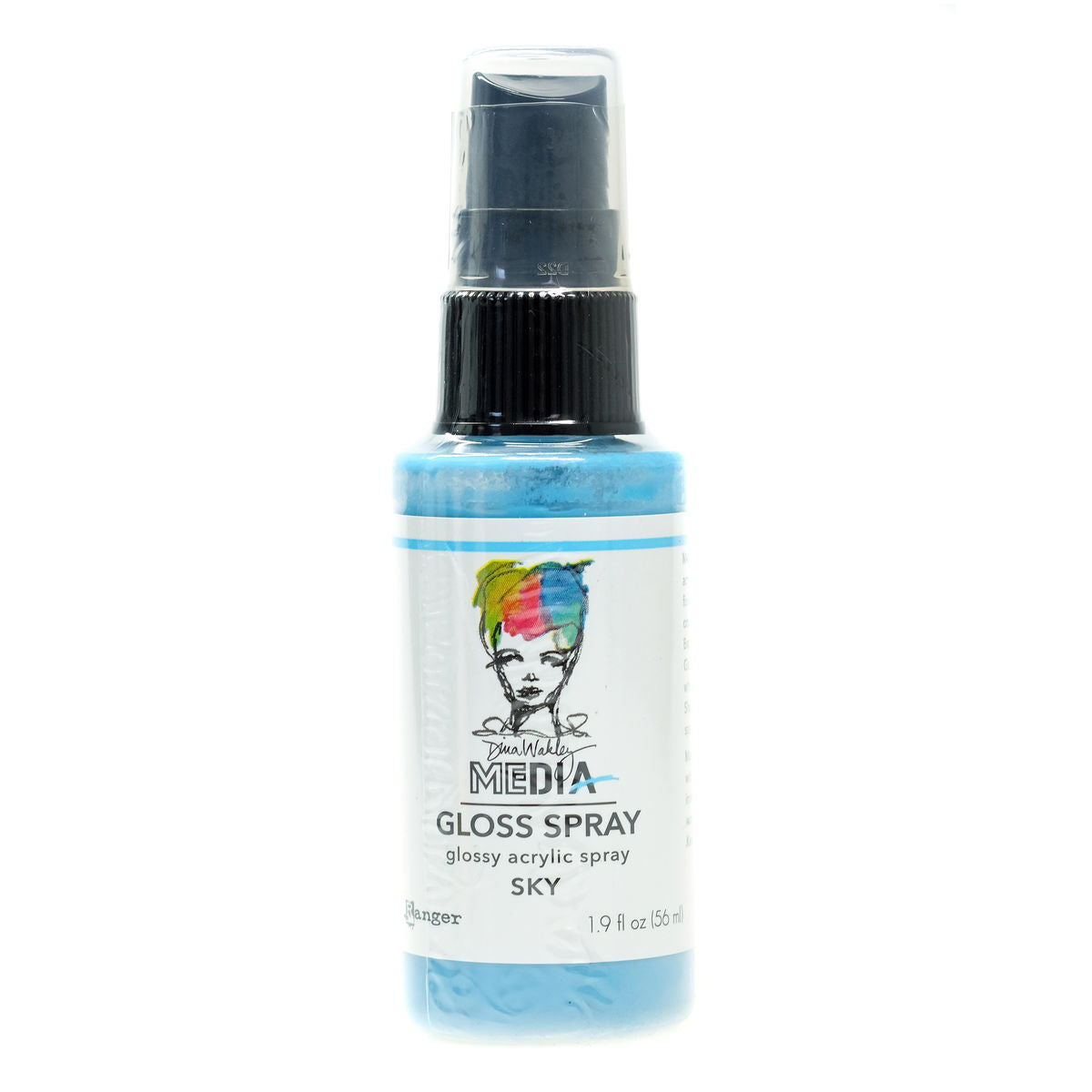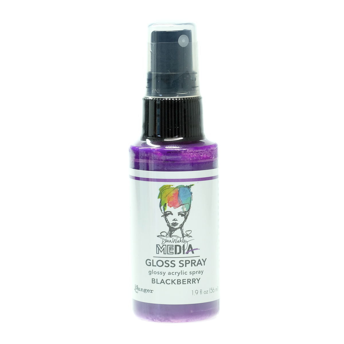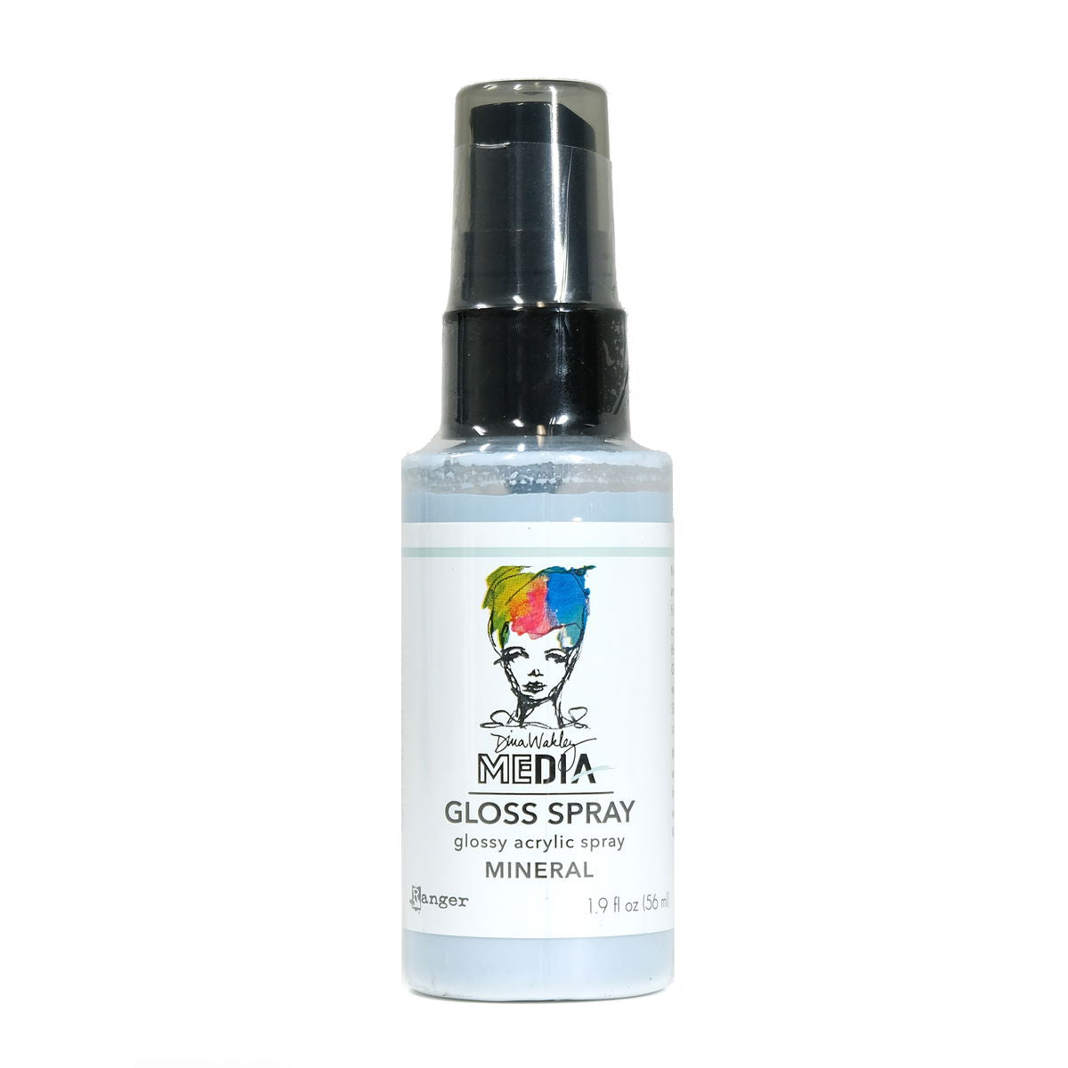 New Dina Wakley MEdia Gloss Spray is an opaque acrylic spray that dries to a glossy finish. Spray into Media Journals, onto Chipboard Shapes, Media Board and other porous surfaces. Gloss Sprays are water-soluble when wet, permanent when dry. All Dina Wakley MEdia Gloss Spray colors are available in a 1.9 fl. oz. spray bottle.