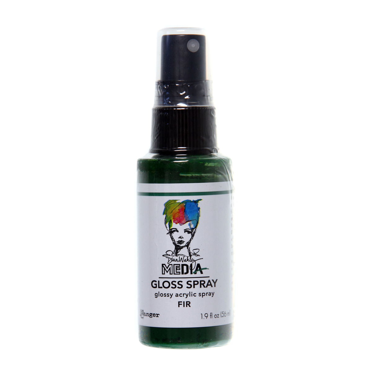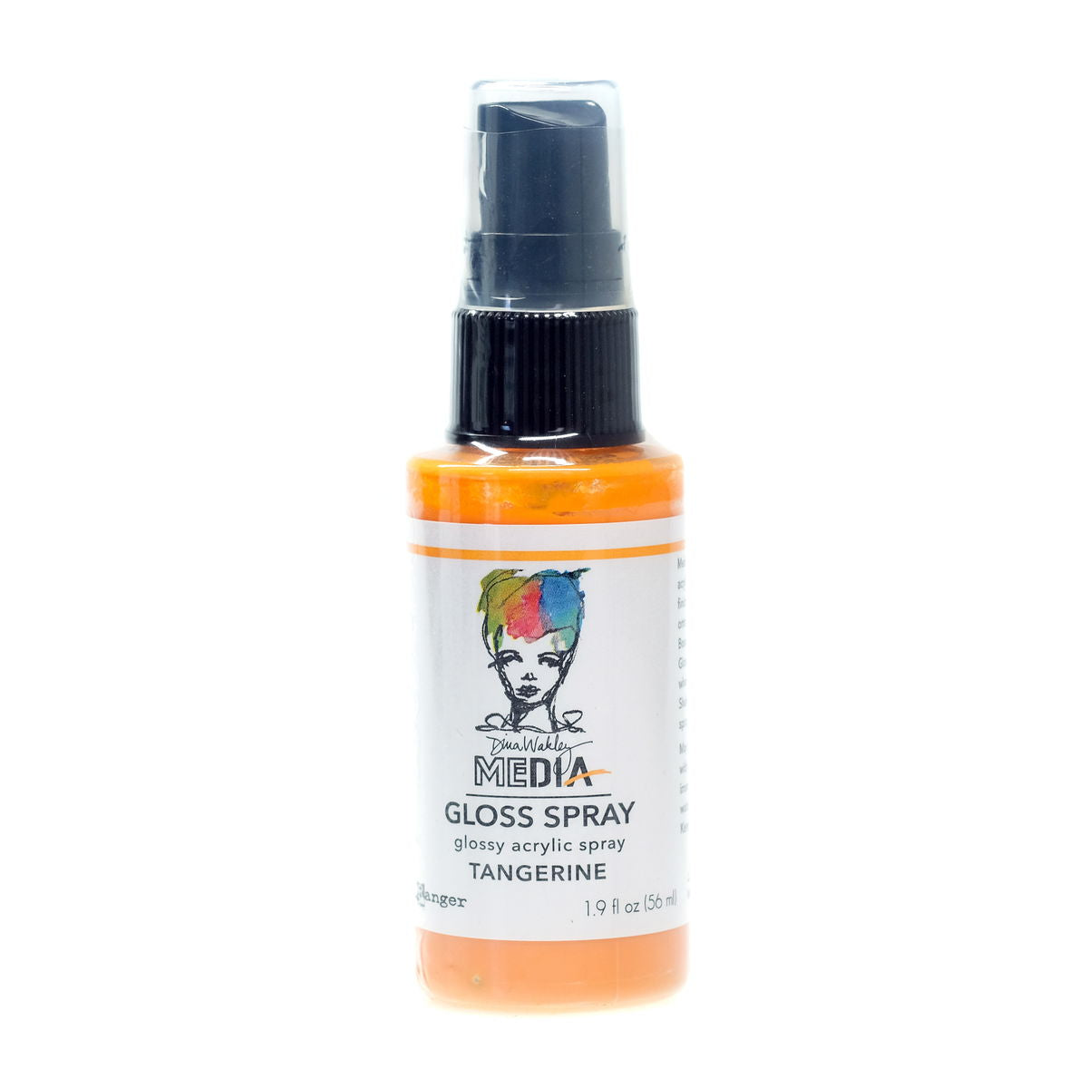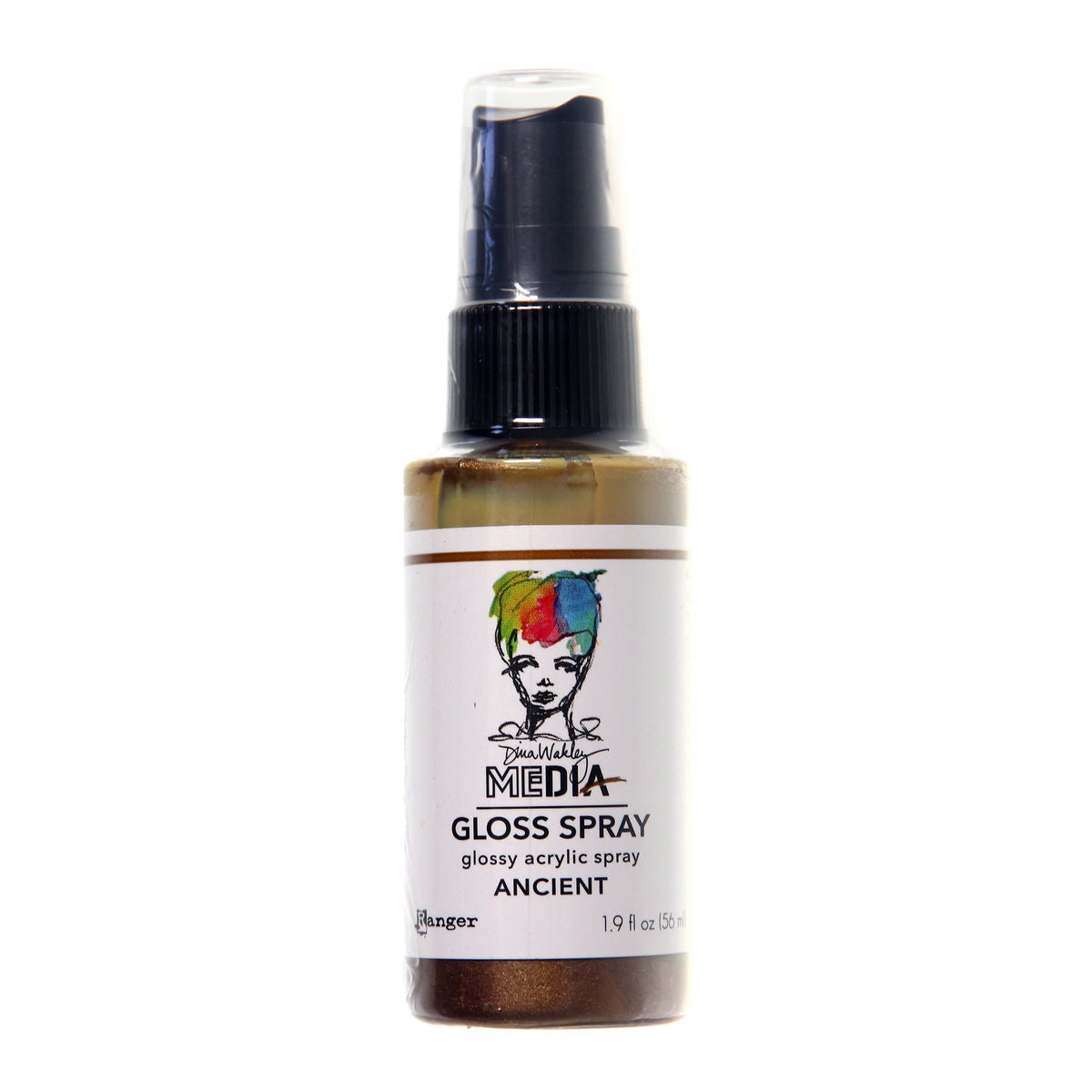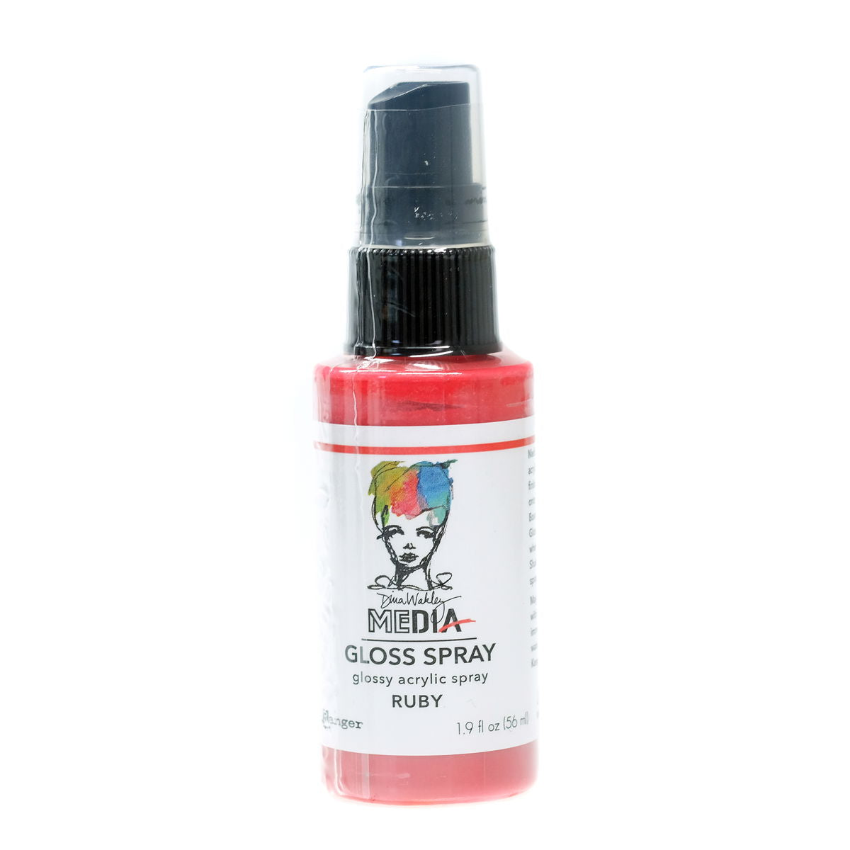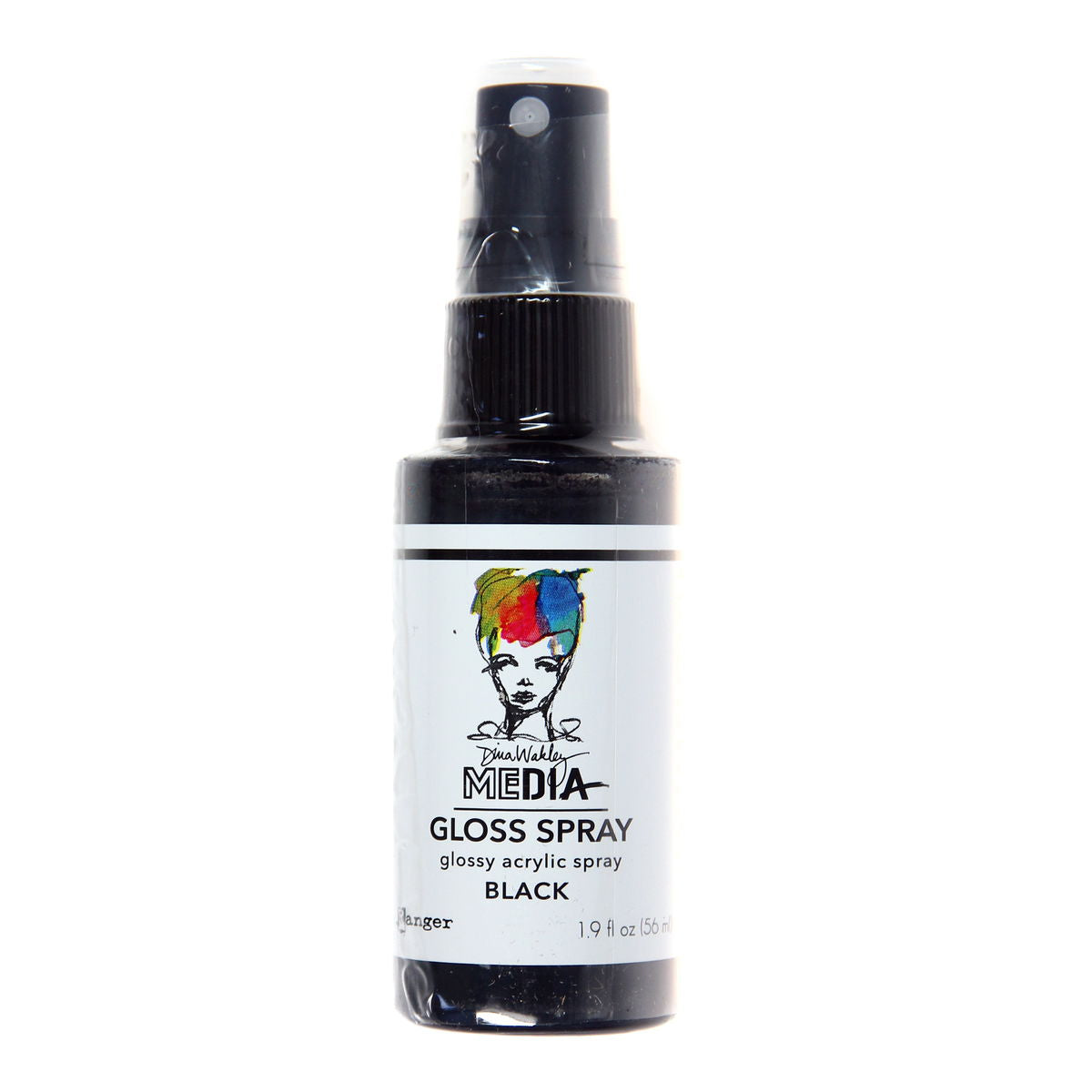New Dina Wakley MEdia Gloss Spray is an opaque acrylic spray that dries to a glossy finish. Spray into Media Journals, onto Chipboard Shapes, Media Board and other porous surfaces. Gloss Sprays are water-soluble when wet, permanent when dry. All Dina Wakley MEdia Gloss Spray colors are available in a 1.9 fl. oz. spray bottle.