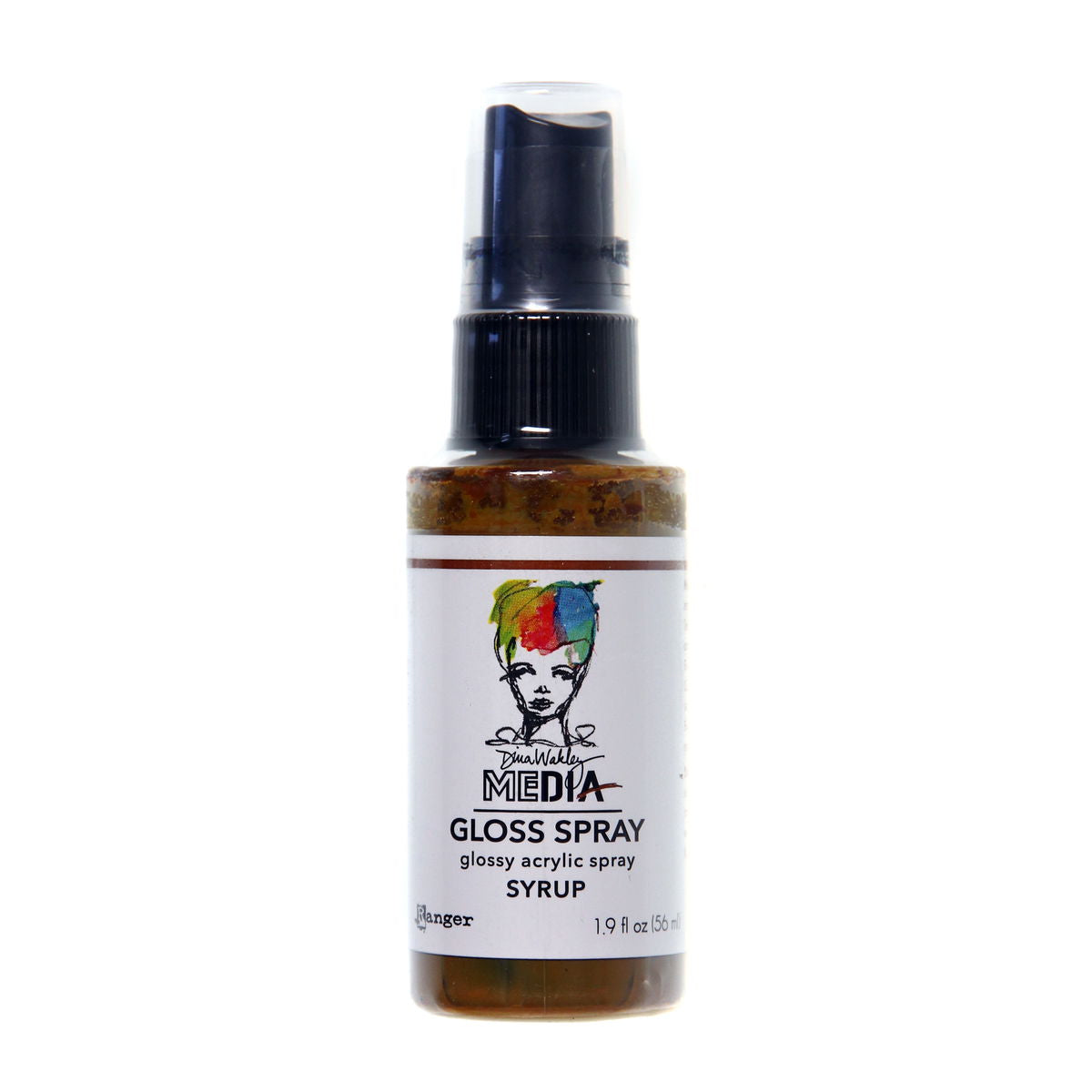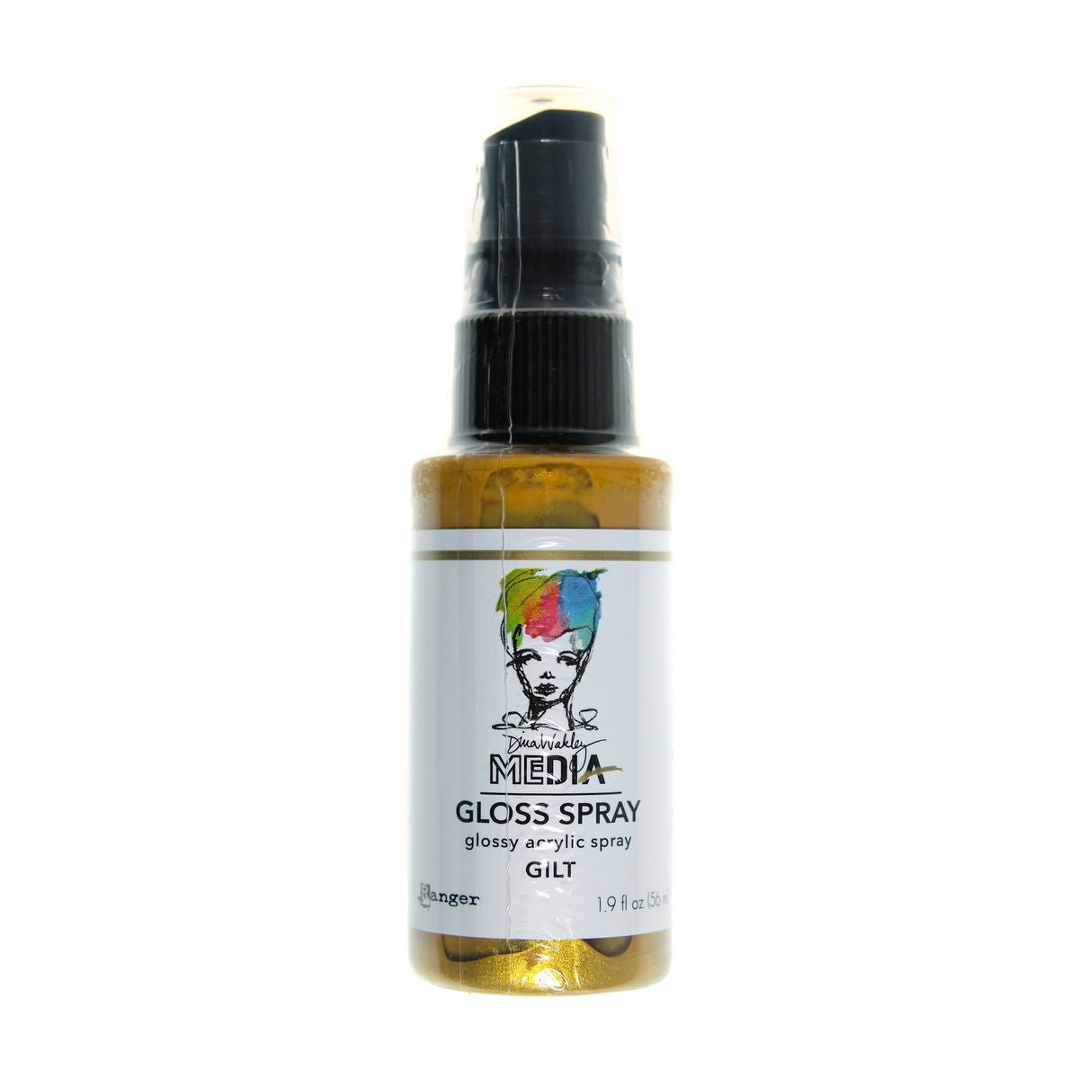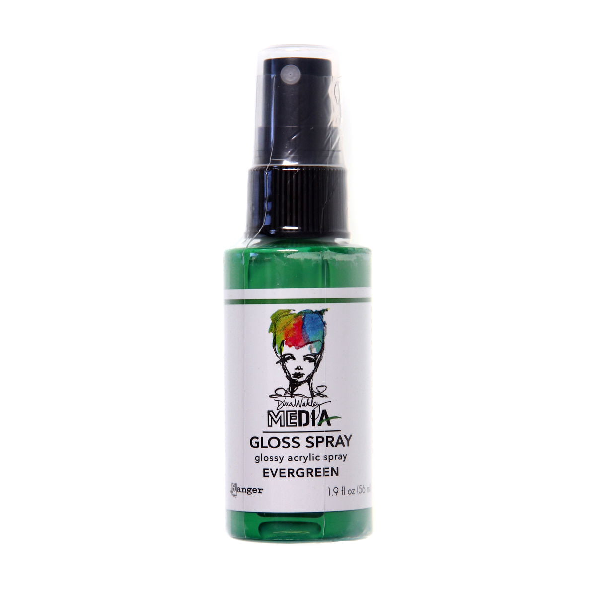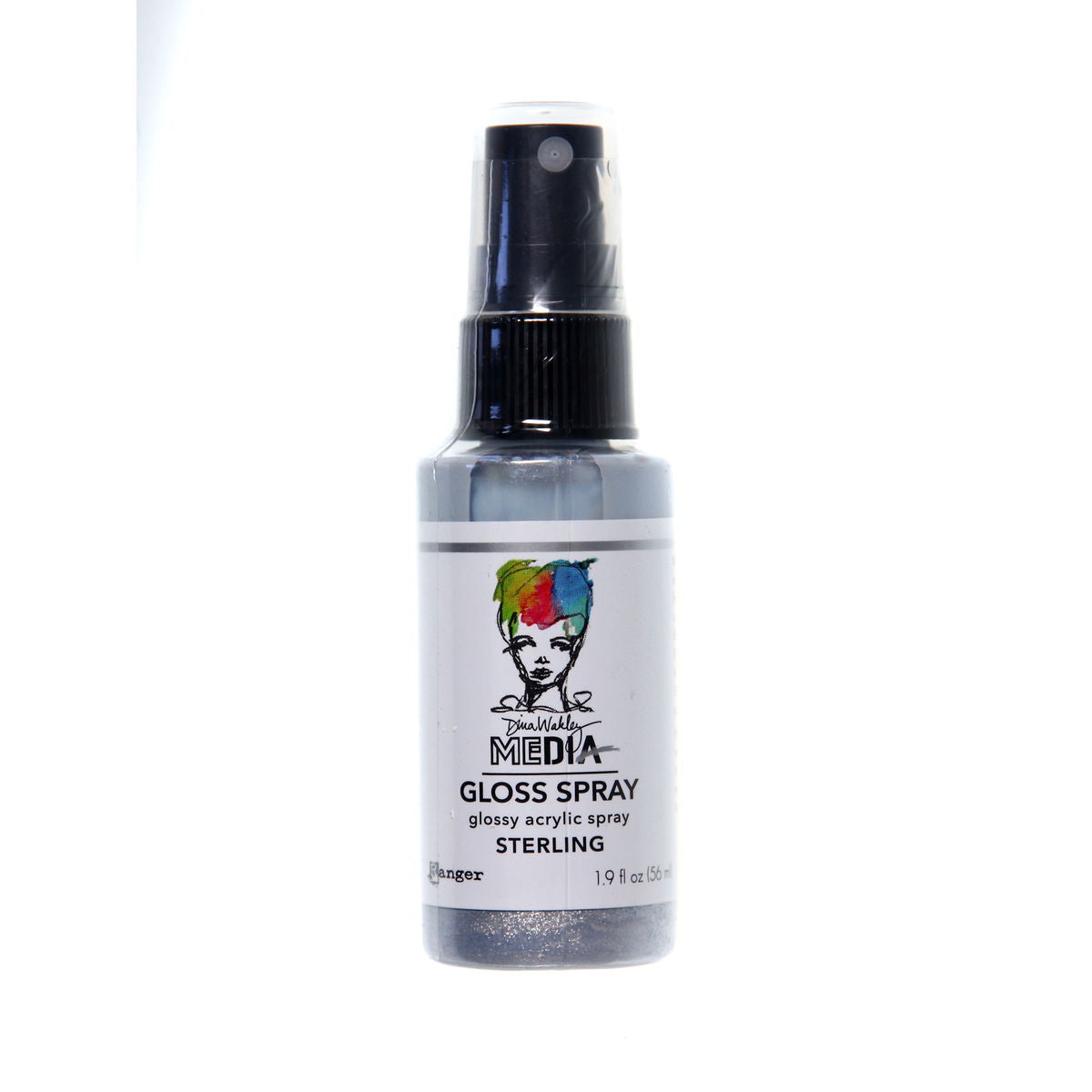 New Dina Wakley MEdia Gloss Spray is an opaque acrylic spray that dries to a glossy finish. Spray into Media Journals, onto Chipboard Shapes, Media Board and other porous surfaces. Gloss Sprays are water-soluble when wet, permanent when dry. All Dina Wakley MEdia Gloss Spray colors are available in a 1.9 fl. oz. spray bottle.