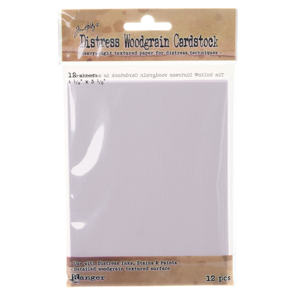 Tim Holtz Distress Woodgrain Cardstock is a textured surface with a detailed woodgrain embossed design. This new surface is ideal to use with Distress Ink, Paint, Stain, and Crayon techniques to create layered effects. Woodgrain Cardstock is a heavyweight 111 lb. cover weight cardstock that is durable and maintains its texture. This new surface comes in convenient pre-cut sheets measuring 4 1/4 in. x 5 1/2 in. perfect for card making and mixed media projects.