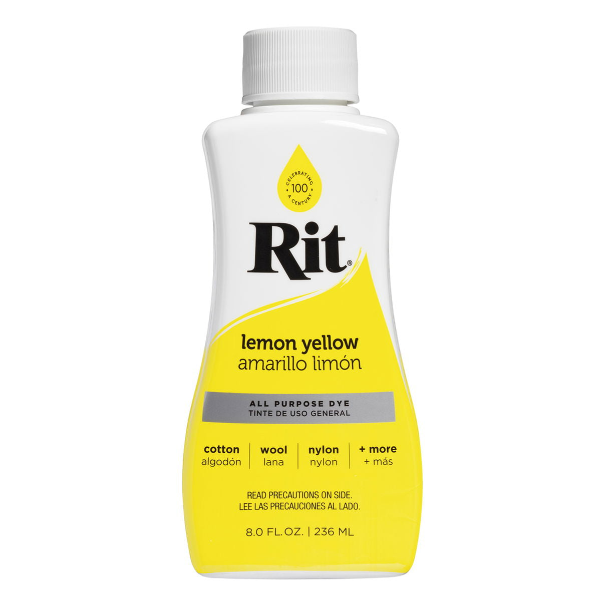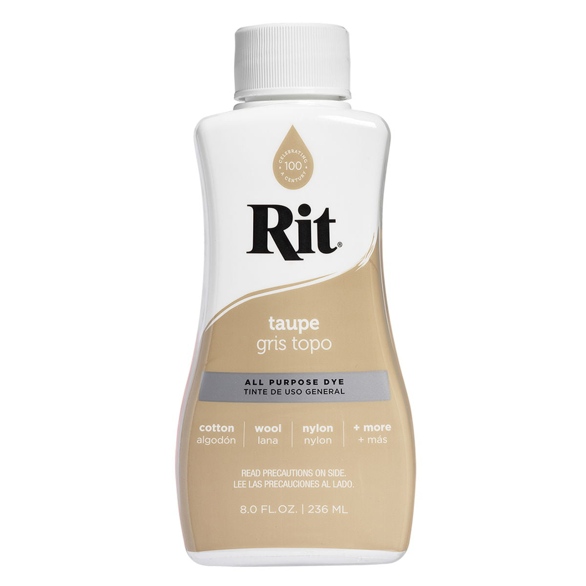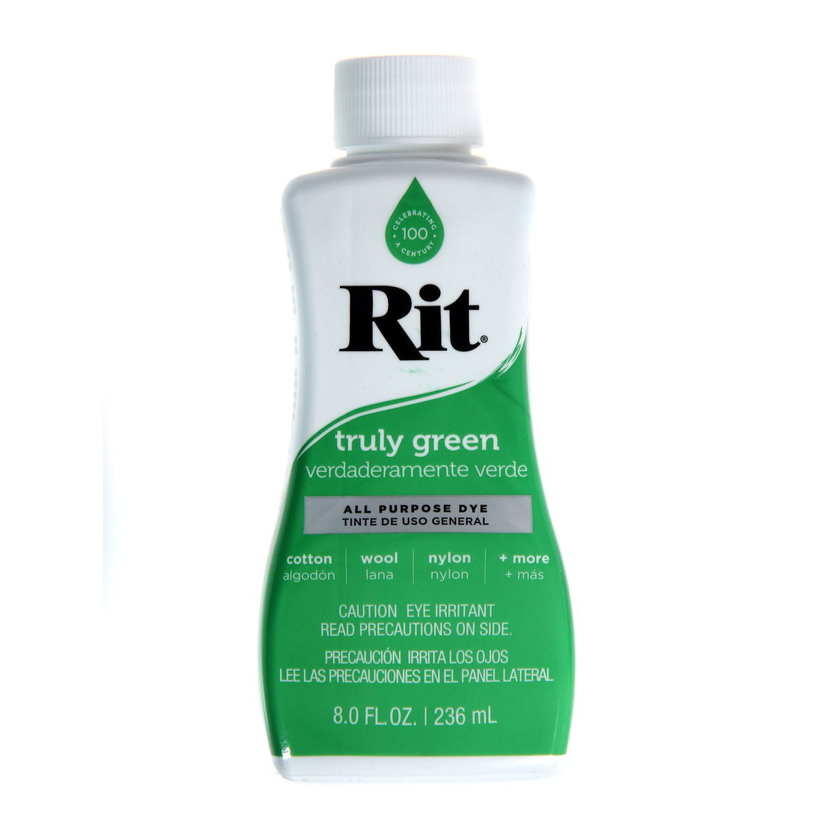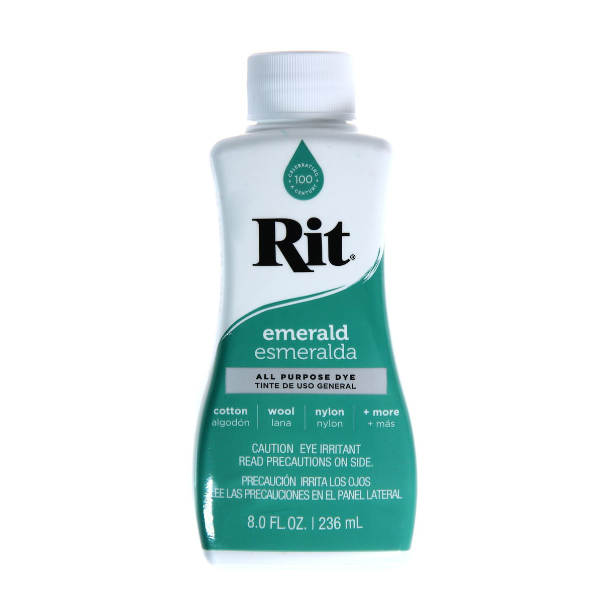 This versatile, easy-to-use and non-toxic liquid dye is ready to deliver vibrant color to almost any type of fabric or fabric blend including cotton, linen, silk, wool, rayon, ramie or nylon. Perfect for rejuvenating faded clothing, changing the color of apparel, shoes or accessories, coordinating home d cor, hiding laundry accidents and so much more. Looking to create something unique? Rit has been tie-dyeing clothing and d cor for decades. It s also the perfect tool to create an ombr , dip dyed, marbled or shibori pattern. It can even dye wood, wicker, paper and cork. Plus, because it is a pre-mixed concentrated liquid, you can use a little or a lot depending on your project and have the flexibility to save it for another time. Whether you are rescuing faded jeans, creating a costume, or decorating for a party, all you need is a washing machine, plastic container or stainless steel sink to get started. With 500+ color recipes, it is almost certain you ll find the right color for your needs. One bottle will color approximately 2 lbs. of dry fabric. Use double the quantity of dye for dark or bright colors such as black, navy blue, cocoa brown, purple, scarlet, etc. Use RIT Color Remover, in a 2 oz. box, to remove the existing color from fabric, giving you a dye-ready canvas for spectacular results and true color. It can also remove dye stains including color transfer in the laundry or to fix other dye mistakes. Use the 8 oz. liqiud RIT Fixative to reduce the fabric's colors from fading.