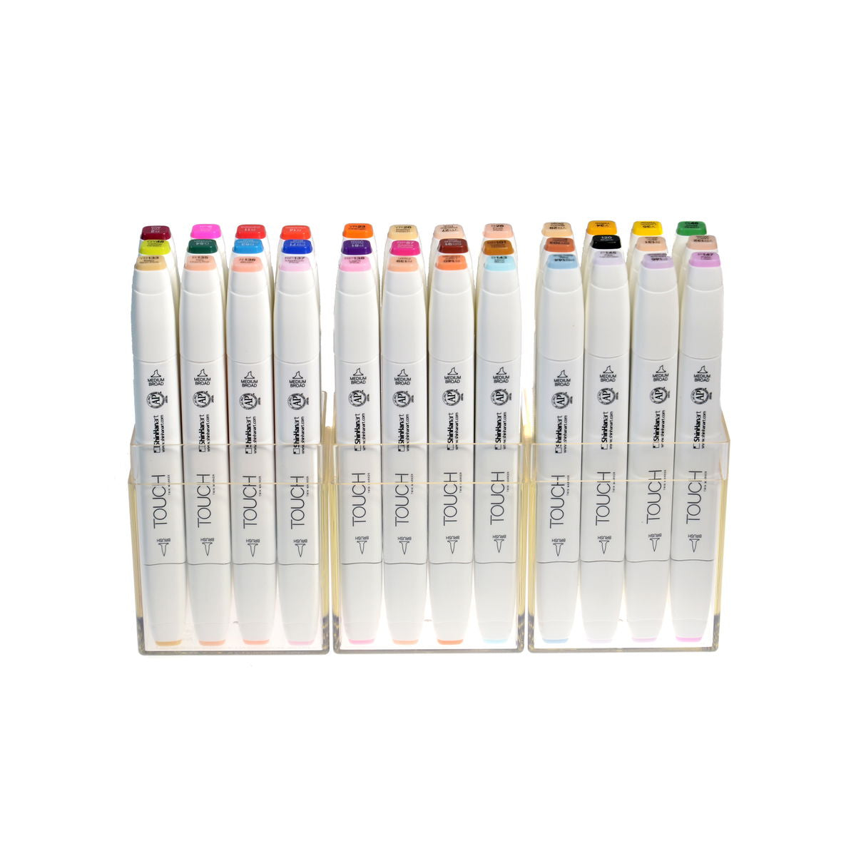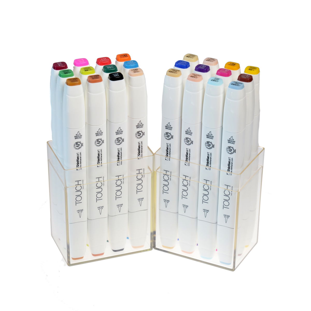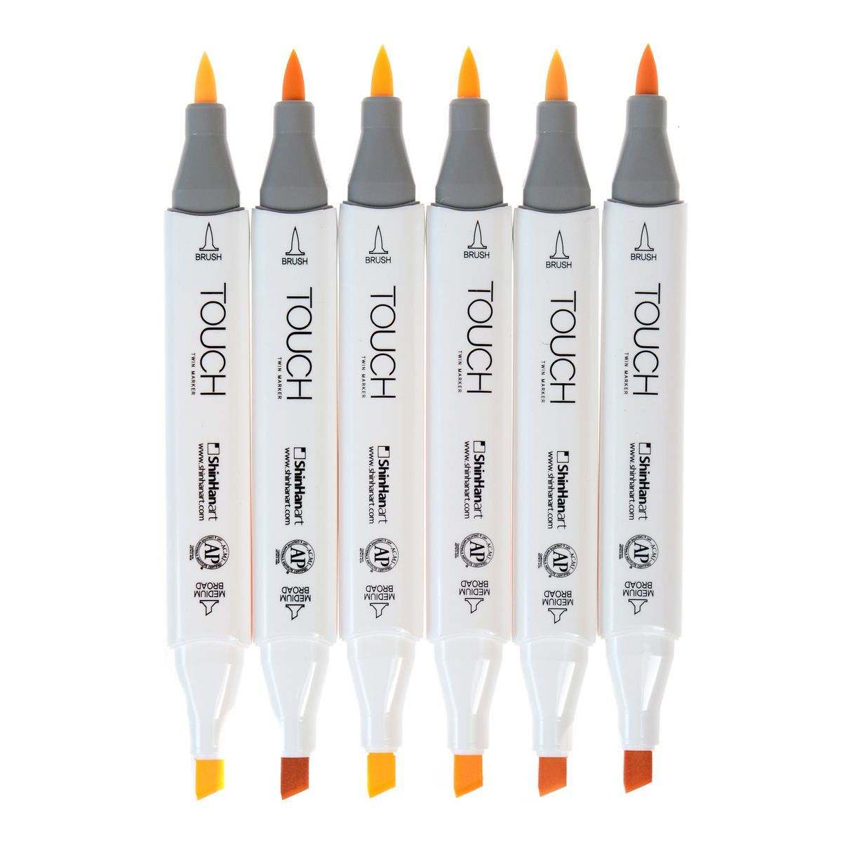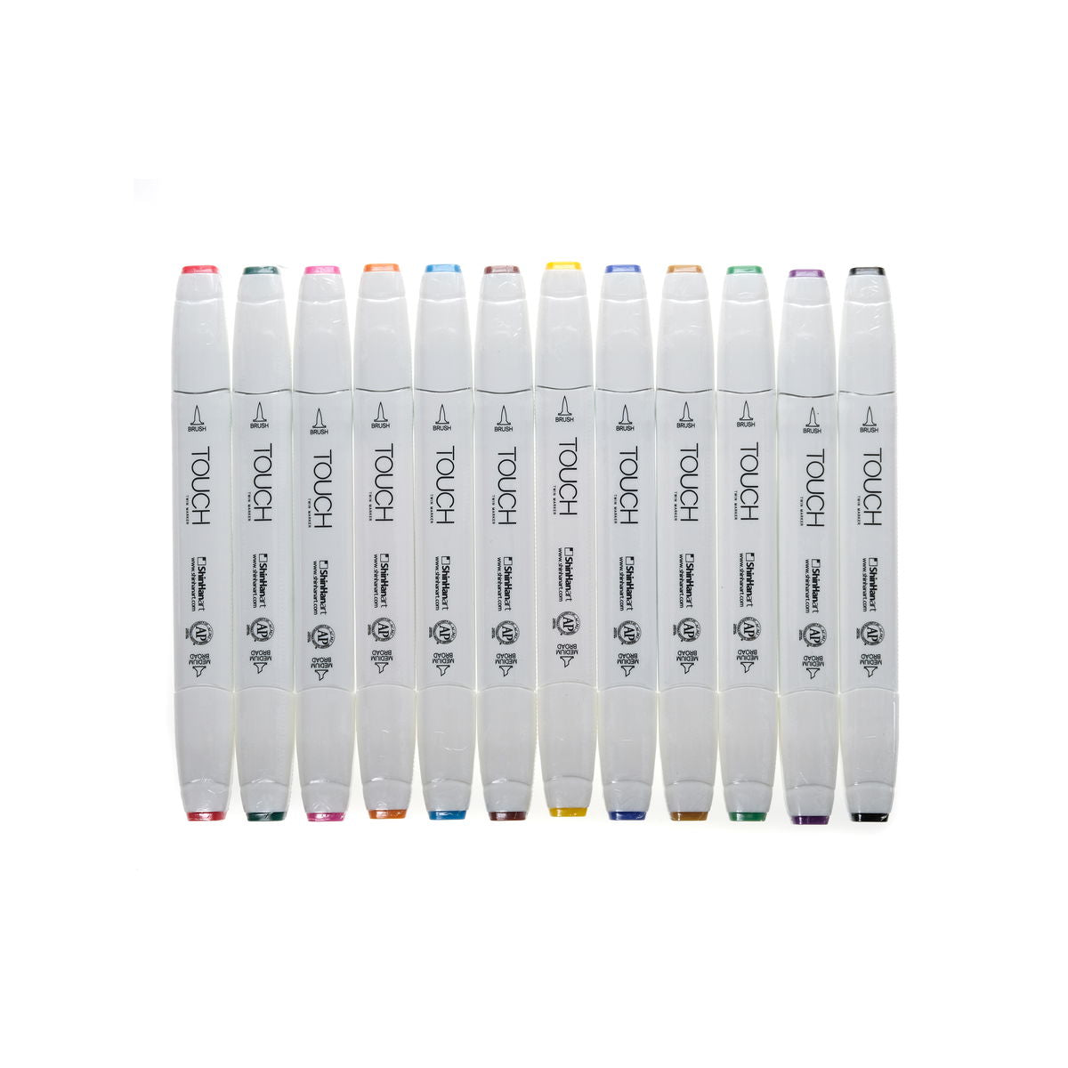 The ShinHan Touch Twin Brush Marker offers a wide assortment of brilliant colors that are ideal for animation, illustration, architectural, and interior design sketches. With a fine brush nib on one end and a medium-wide chisel nib on the other these markers allow for a wide range of possible marks. The brush nib gives artist the flexibility and technicality of a paintbrush with smooth blending capabilities. Touch Twin Maker s brush nibs are durable and resists losing firmness over time. These makers boast optimal ink flow and fast drying times. The ergonomic, easy grip barrels can be refilled with and with more odorless ink and their nibs are replaceable.