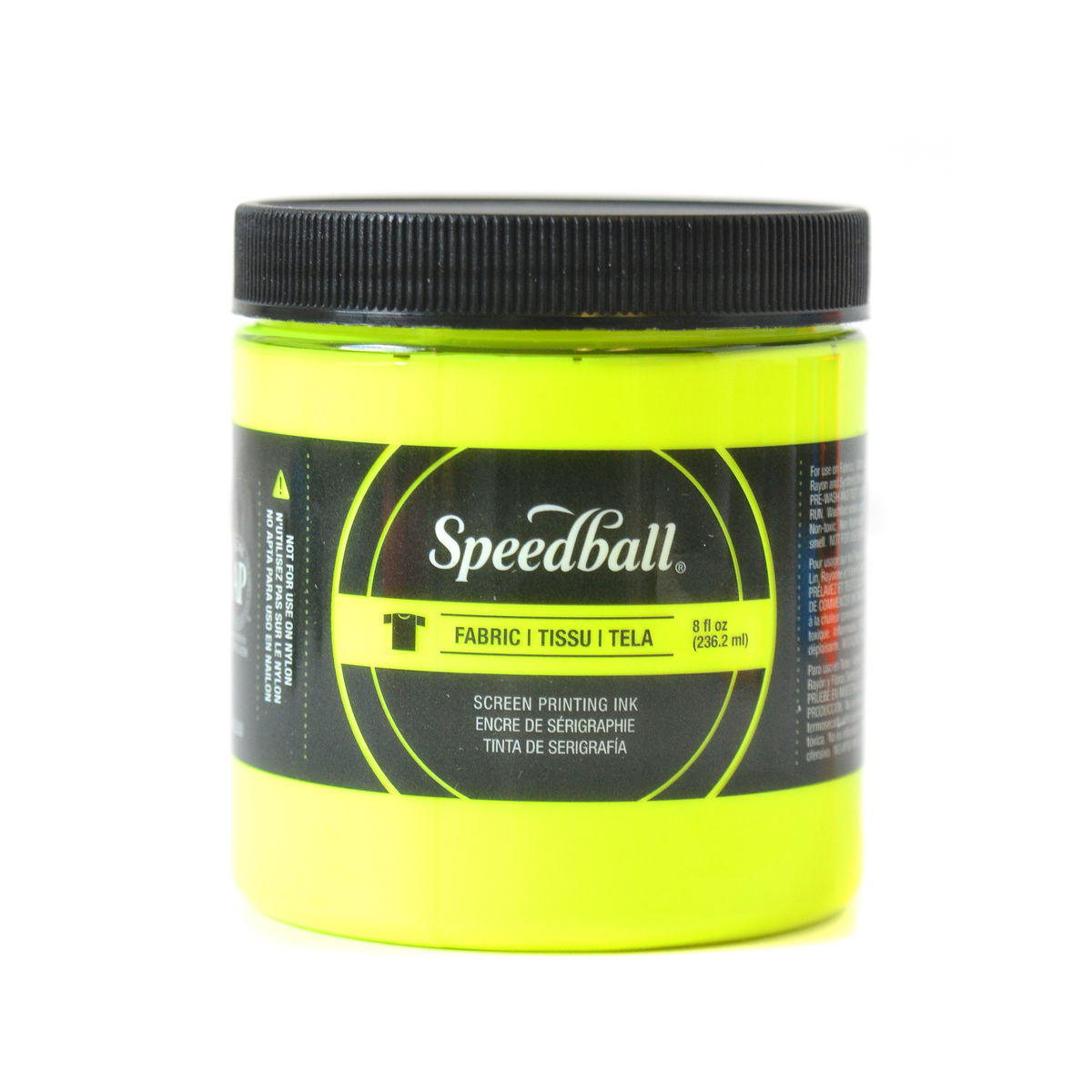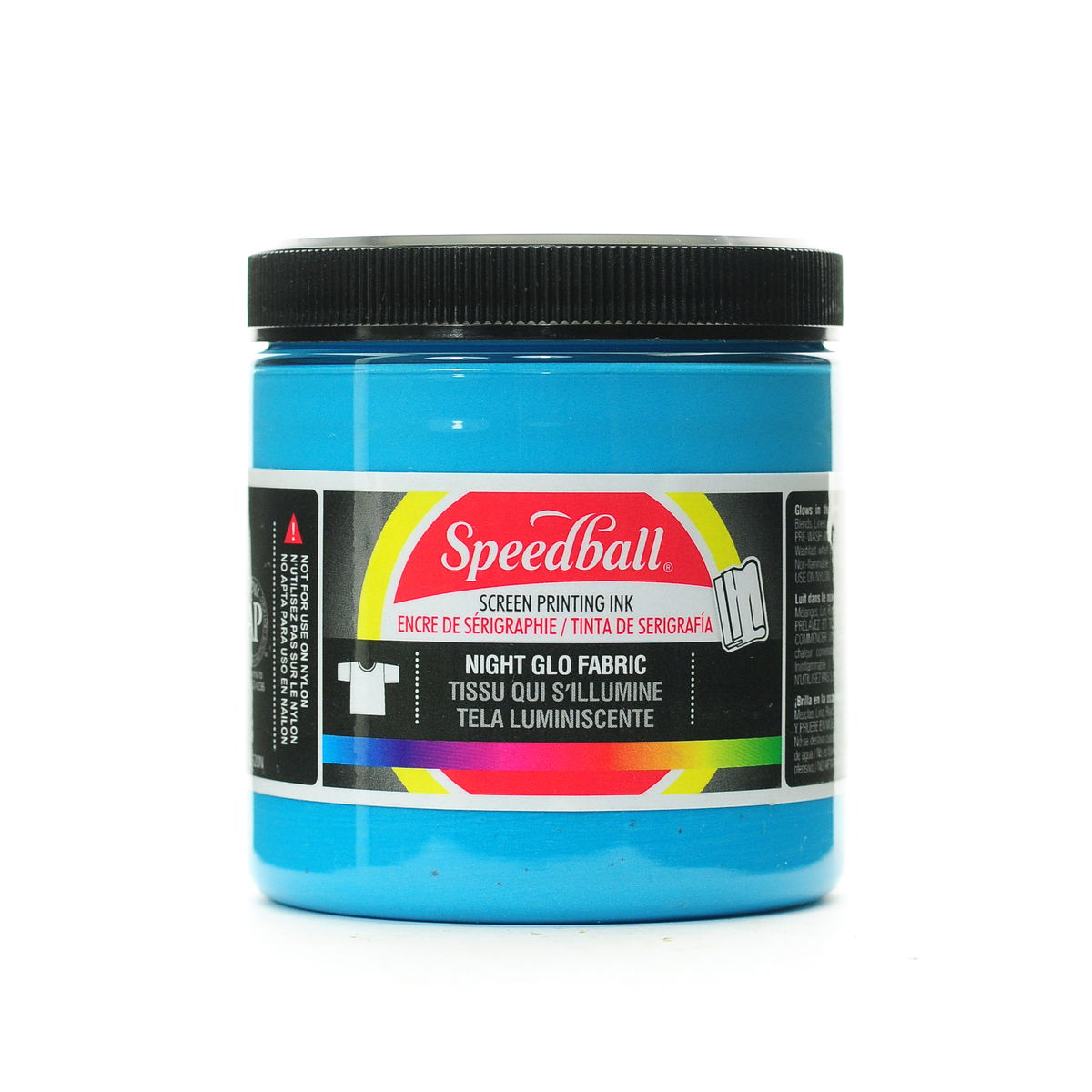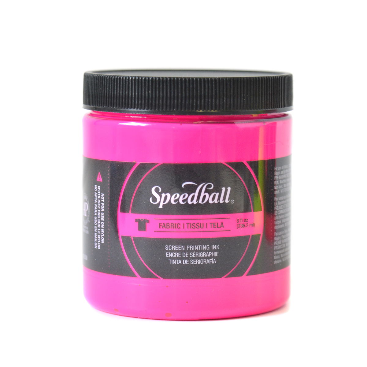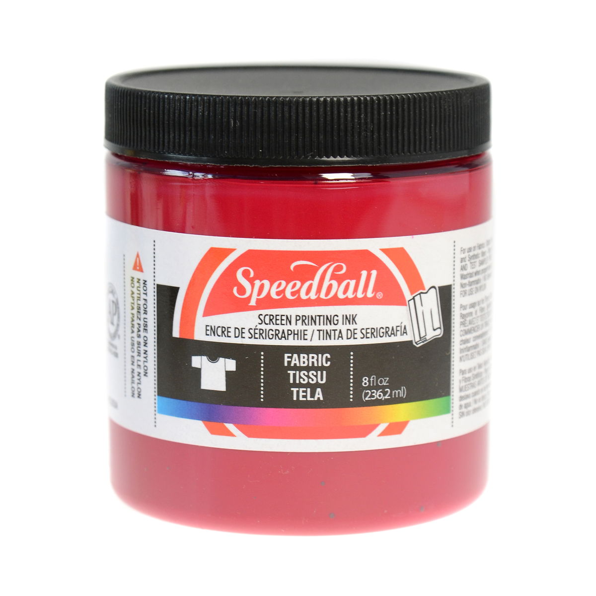 Fabric Screen Inks are water-based, non-toxic, and non-flammable. Suitable for T-shirts, tablecloths, and other textiles made of cotton, polyester blends, linen, rayon, and other synthetic fibers (NOT for use on nylon). Also works great on paper and cardboard! Ink can be screen printed or painted on with a brush. For best results, pre-wash fabric and always pre-test before production runs. Mix with Speedball Transparent Base for transparency and Speedball Retarder Base to slow the drying process. Inks must be properly heat set. After the ink dries, use a paper or cloth interface and apply heat using a household iron at medium to high setting for 3 to 5 minutes on each side. Fabric Screen Printing Inks are easy to clean with water but become wash-fast when properly heat-set. Available in Night Glo and new Fluorescent Colors in 8 oz. jars. Jars have an inner seal and contain no solvents or offensive smell. AP Non-Toxic conforms to ASTM D-4236.