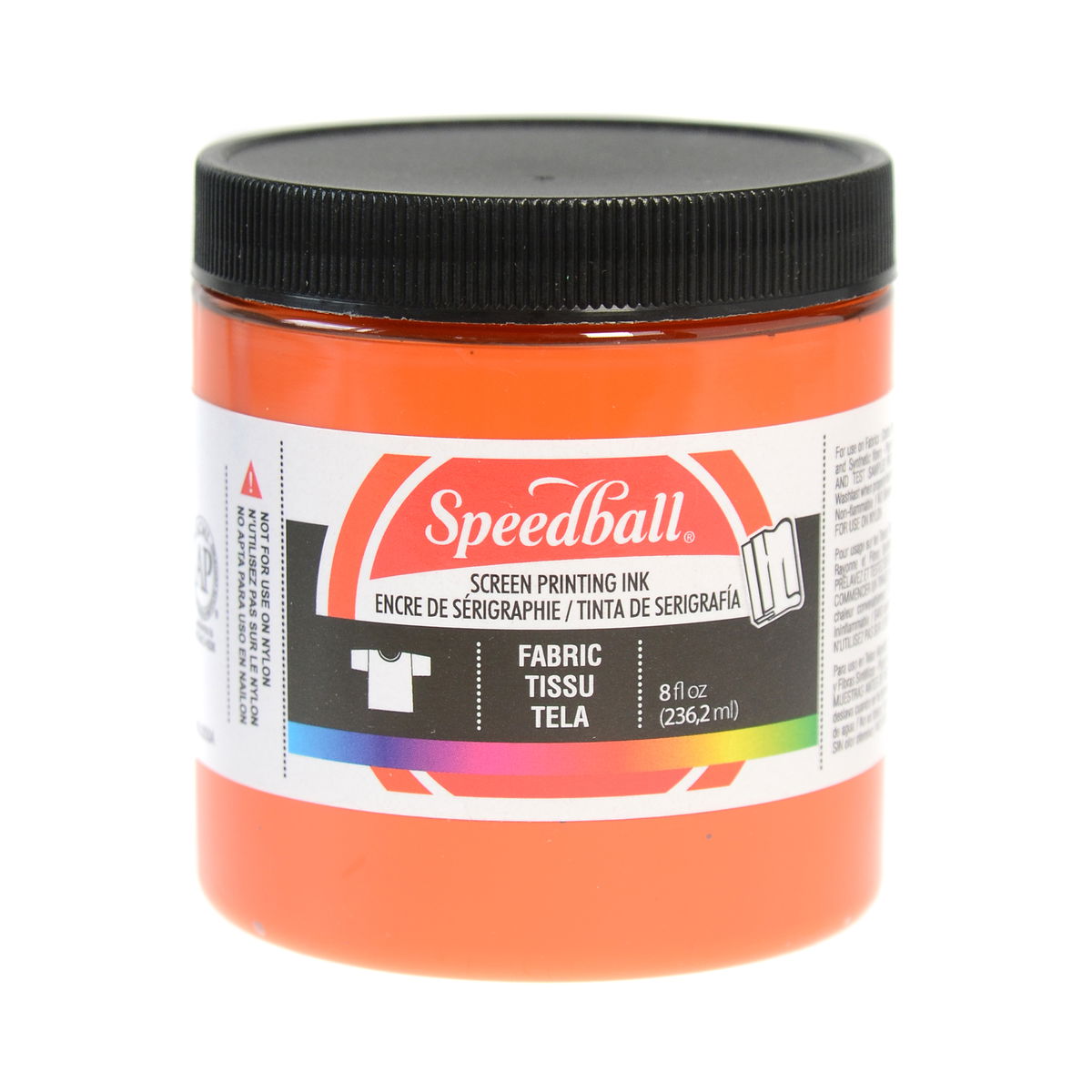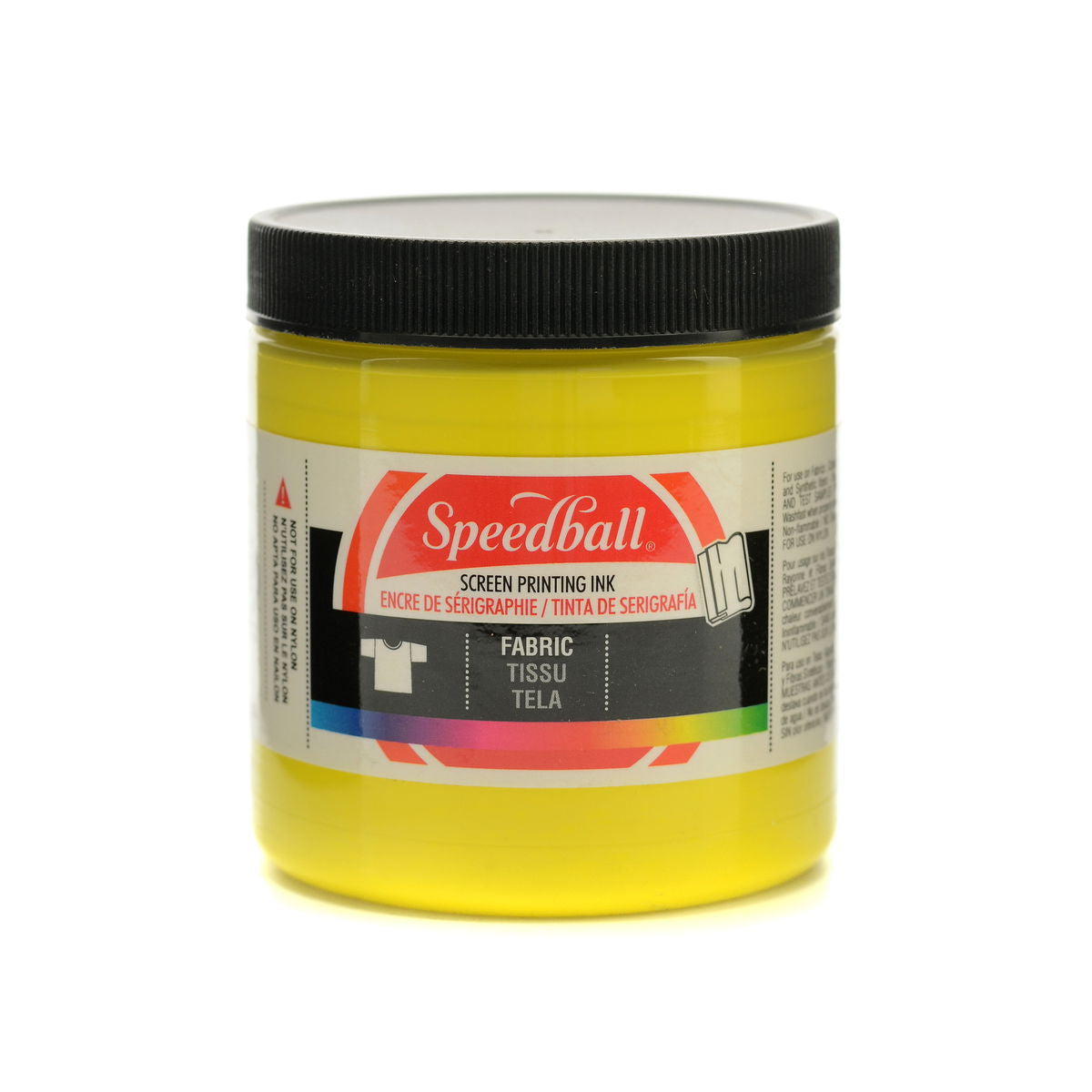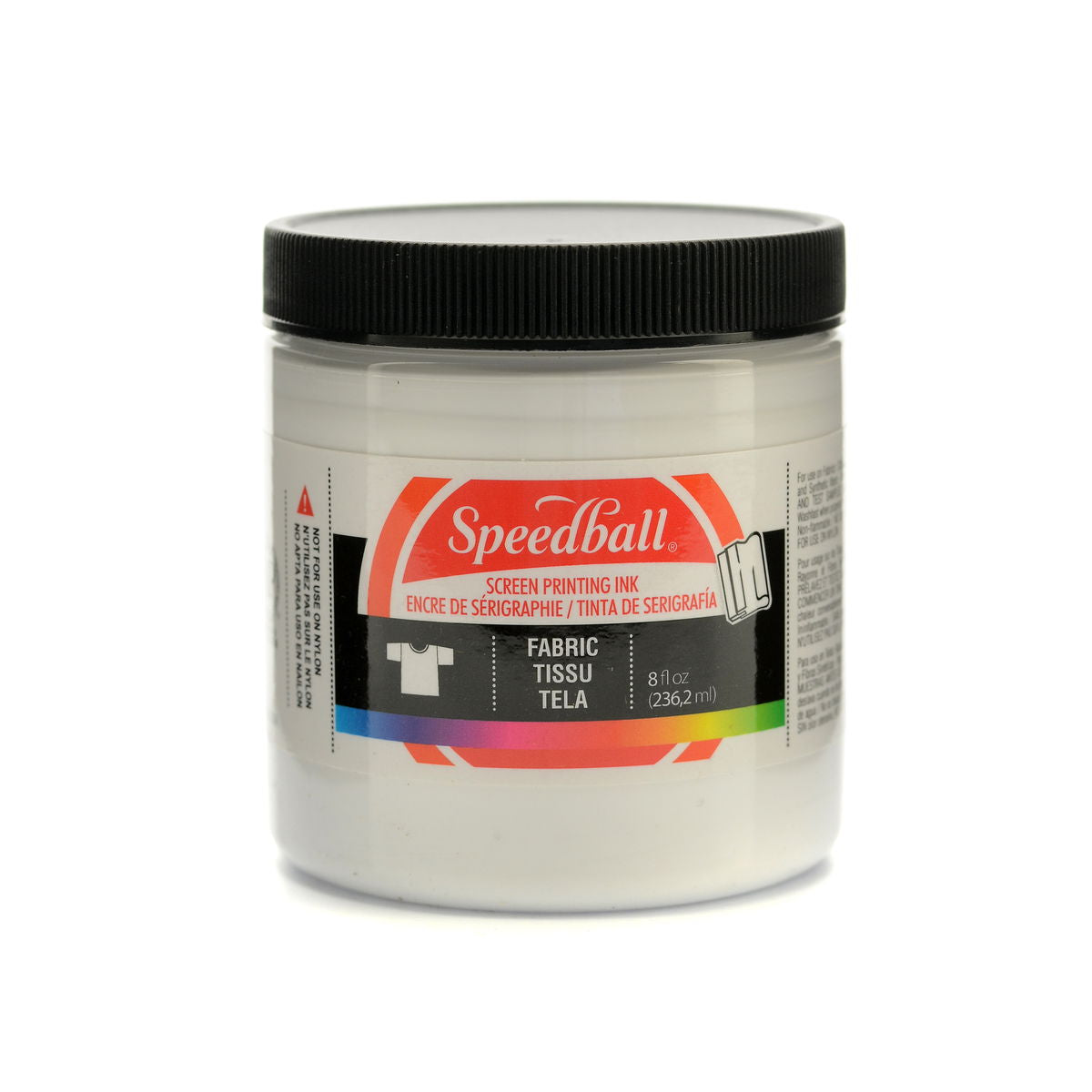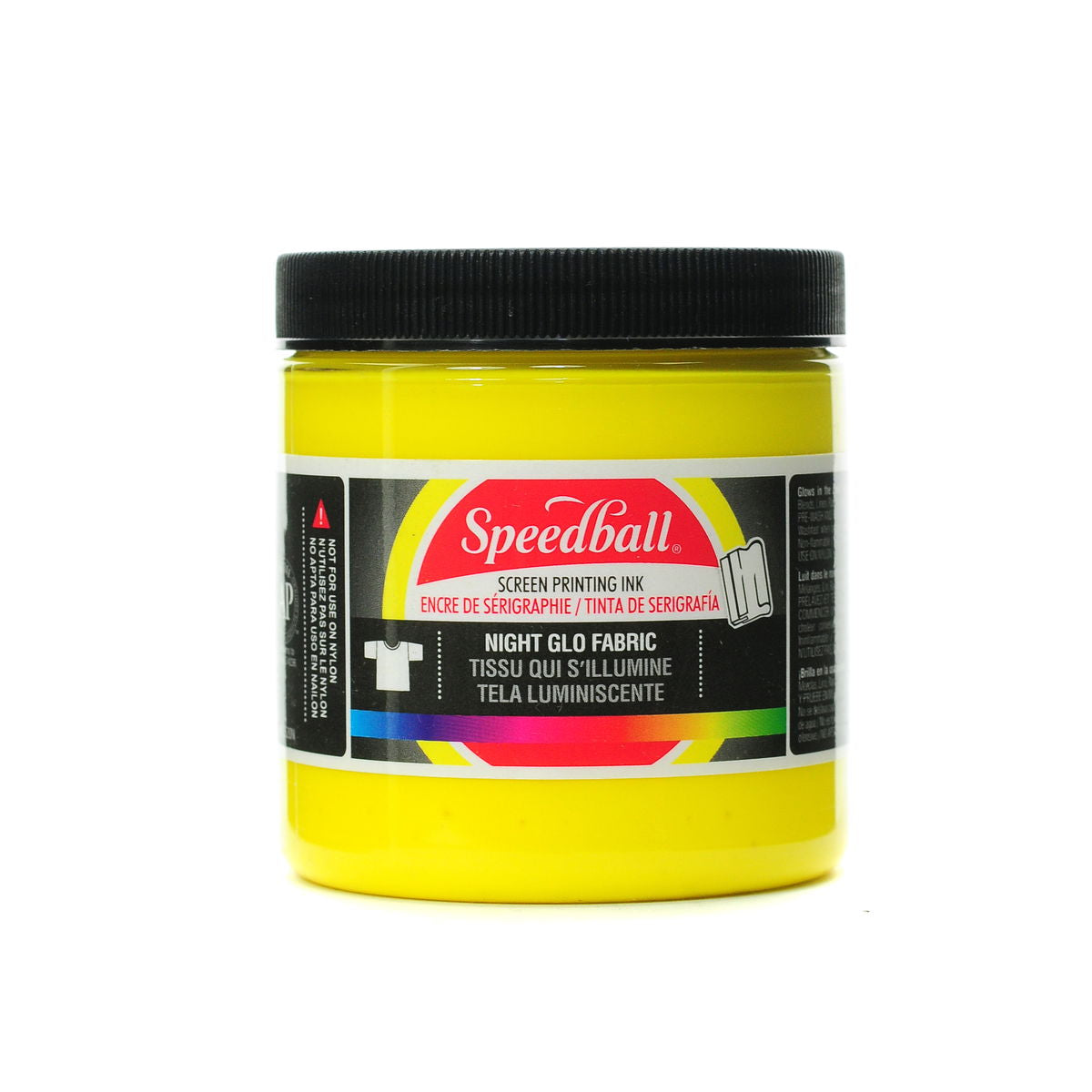Fabric Screen Inks are water-based, non-toxic, and non-flammable. Suitable for T-shirts, tablecloths, and other textiles made of cotton, polyester blends, linen, rayon, and other synthetic fibers (NOT for use on nylon). Also works great on paper and cardboard! Ink can be screen printed or painted on with a brush. For best results, pre-wash fabric and always pre-test before production runs. Mix with Speedball Transparent Base for transparency and Speedball Retarder Base to slow the drying process. Inks must be properly heat set. After the ink dries, use a paper or cloth interface and apply heat using a household iron at medium to high setting for 3 to 5 minutes on each side. Fabric Screen Printing Inks are easy to clean with water but become wash-fast when properly heat-set. Available in Night Glo and new Fluorescent Colors in 8 oz. jars. Jars have an inner seal and contain no solvents or offensive smell. AP Non-Toxic conforms to ASTM D-4236.