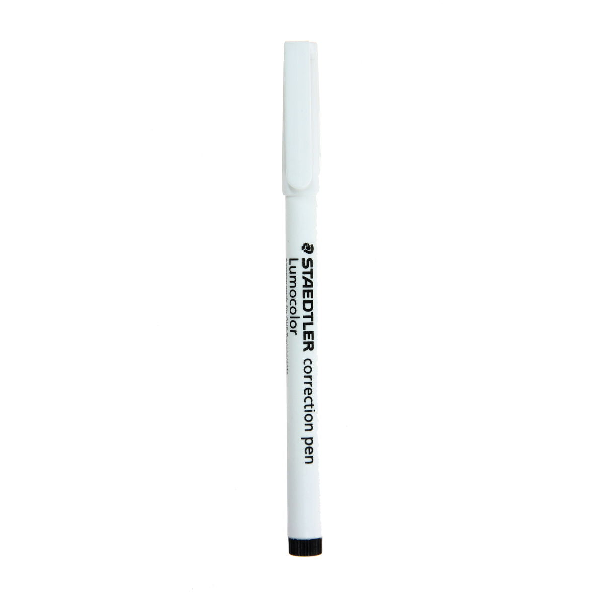 The Lumocolor Correction Pen makes the correction of OHP films and transparencies a breeze. With its 1/8 in. angled and chiseled head, the pen allows the correction of both broad lines and fine markings.
