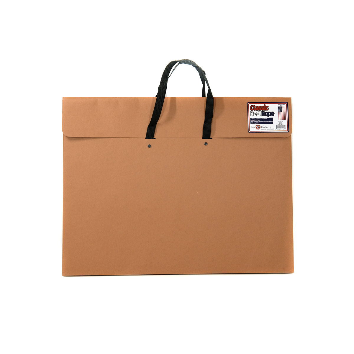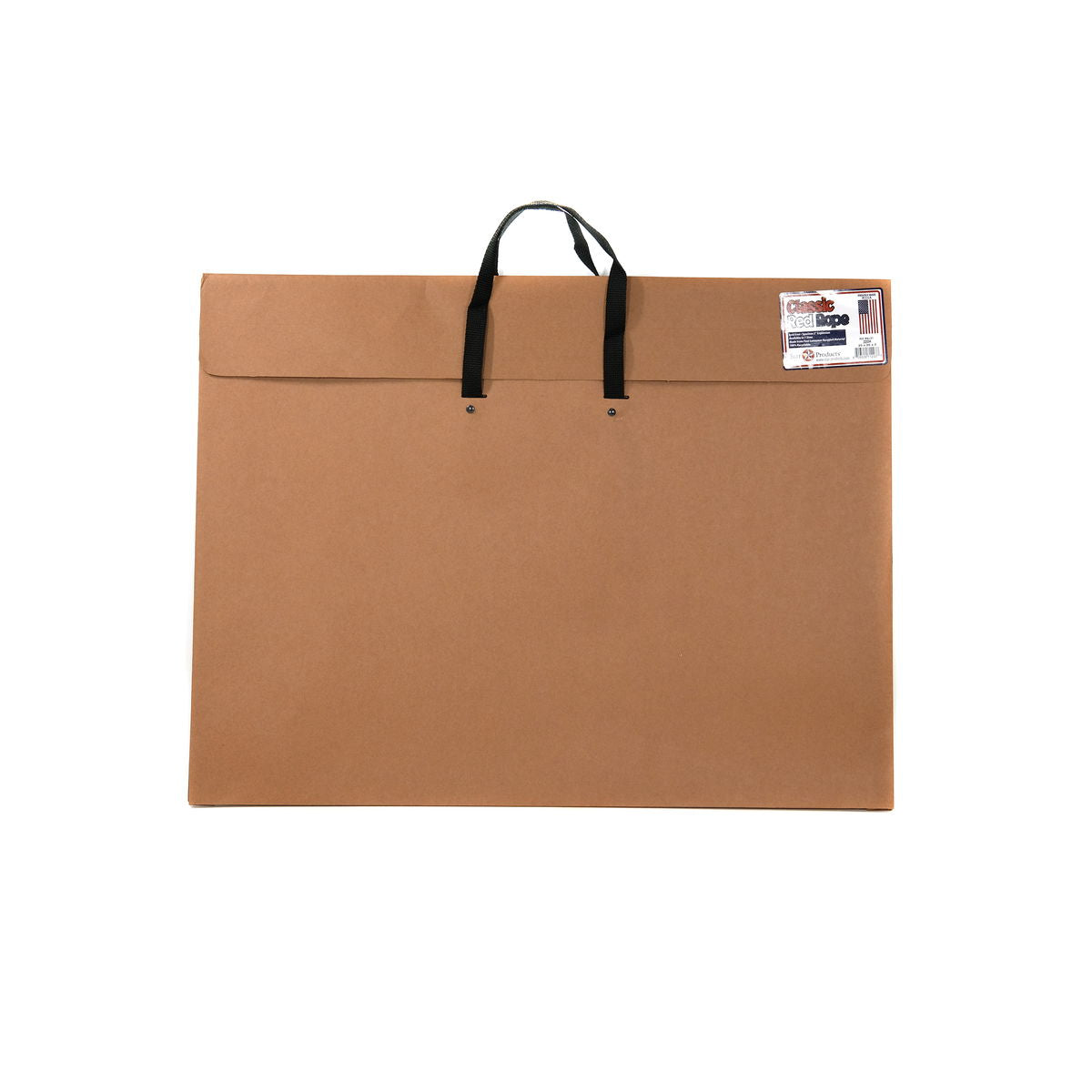 These art portfolios are constructed in a wide range of sizes from sturdy traditional wallet material. The portfolios are available with plastic carrying handles, tie closure, or hook-and-loop closure. 2 in. gusset. Handle attachment is reinforced for extra strength and carrying capacity.