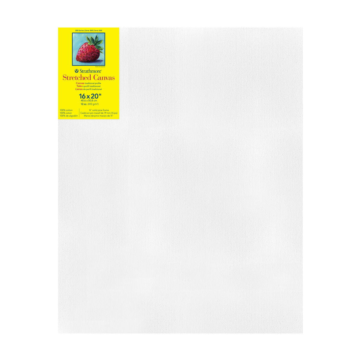 Strathmore 300 Series Stretched Canvas is an ideal choice for artists of all skill levels. Excellent for use with acrylic, oil and water mixable oil paints. They are also sturdy enough for heavy applications such as mixed media, collage and impasto. Available in traditional (3.4 in.) and gallery (1 3/8 in.) profiles.