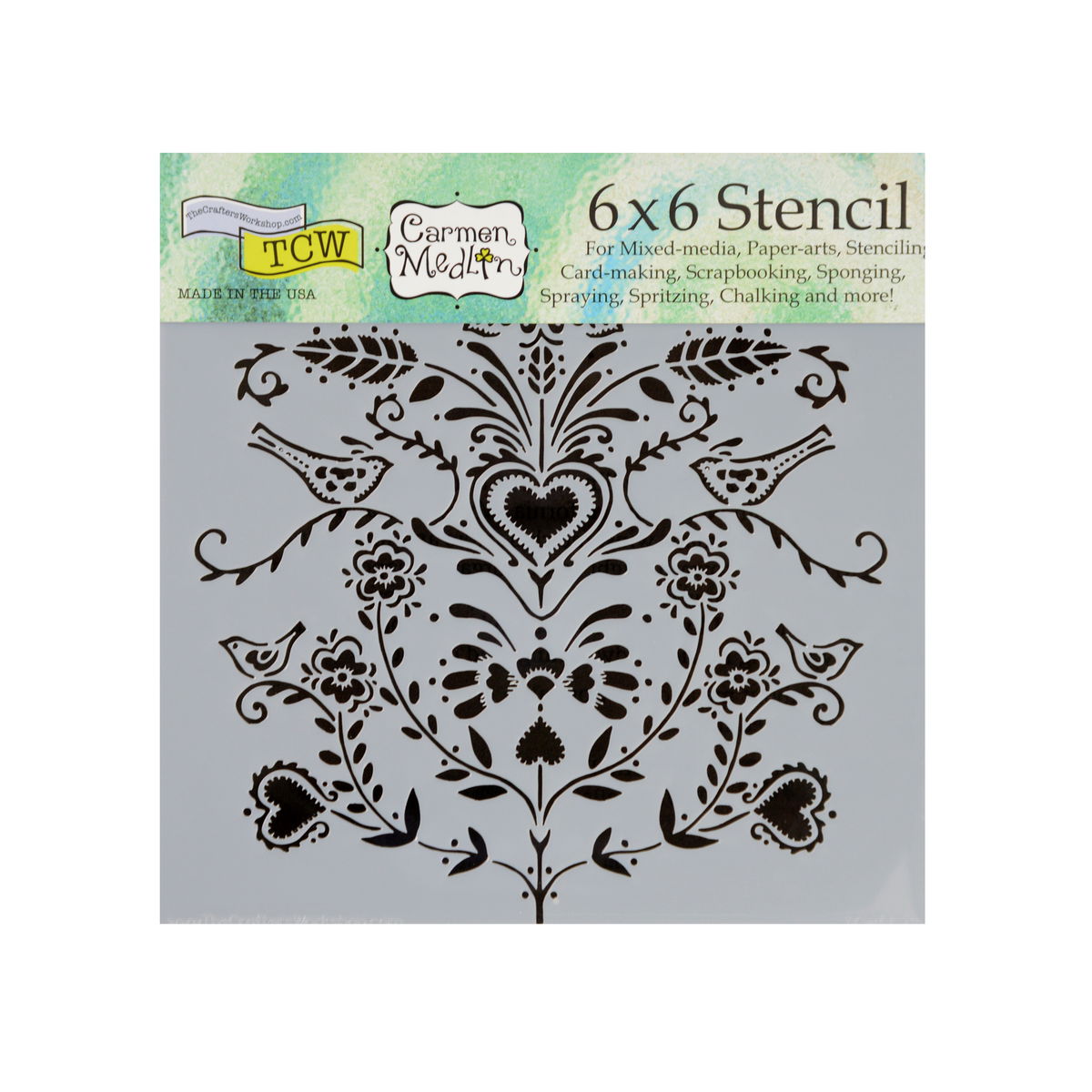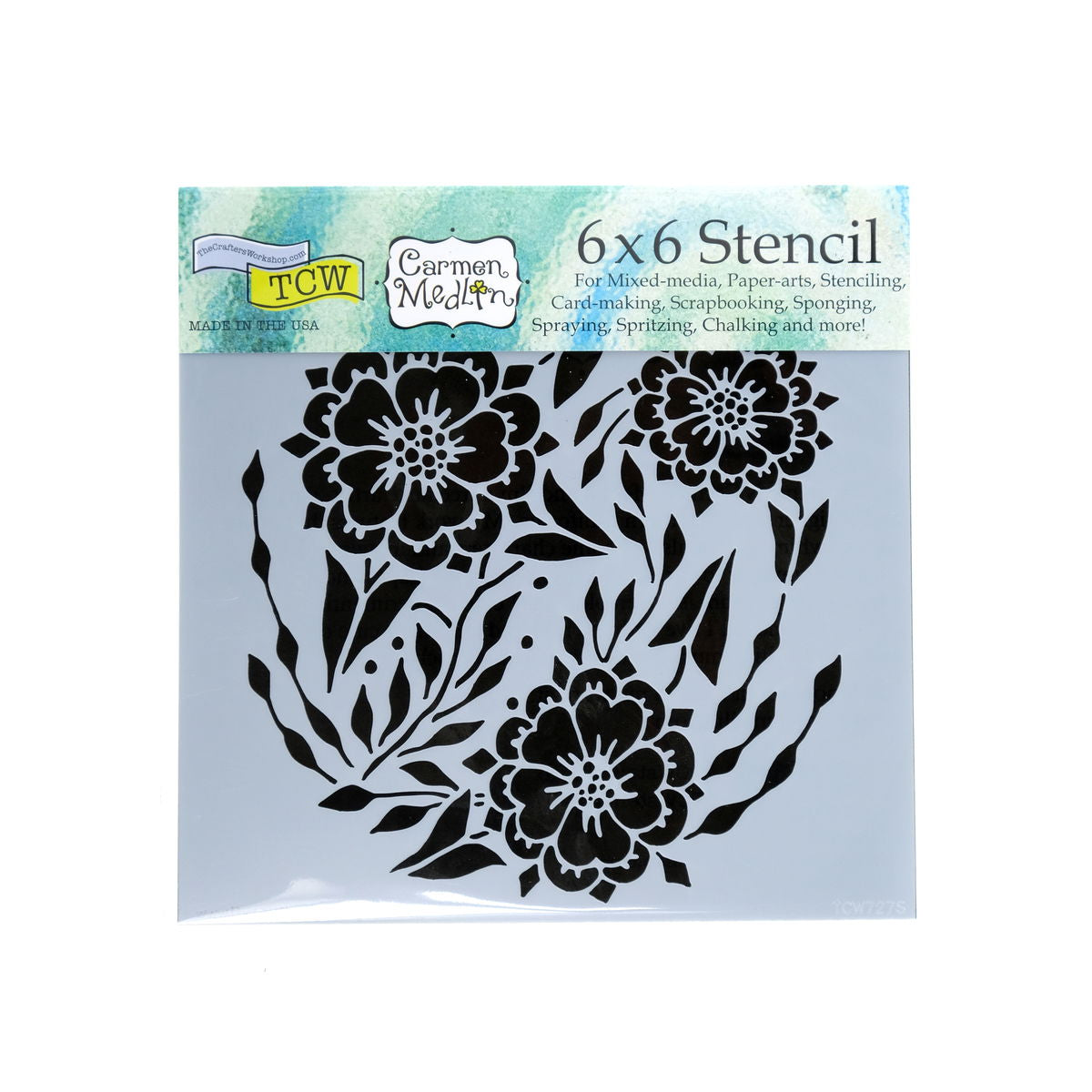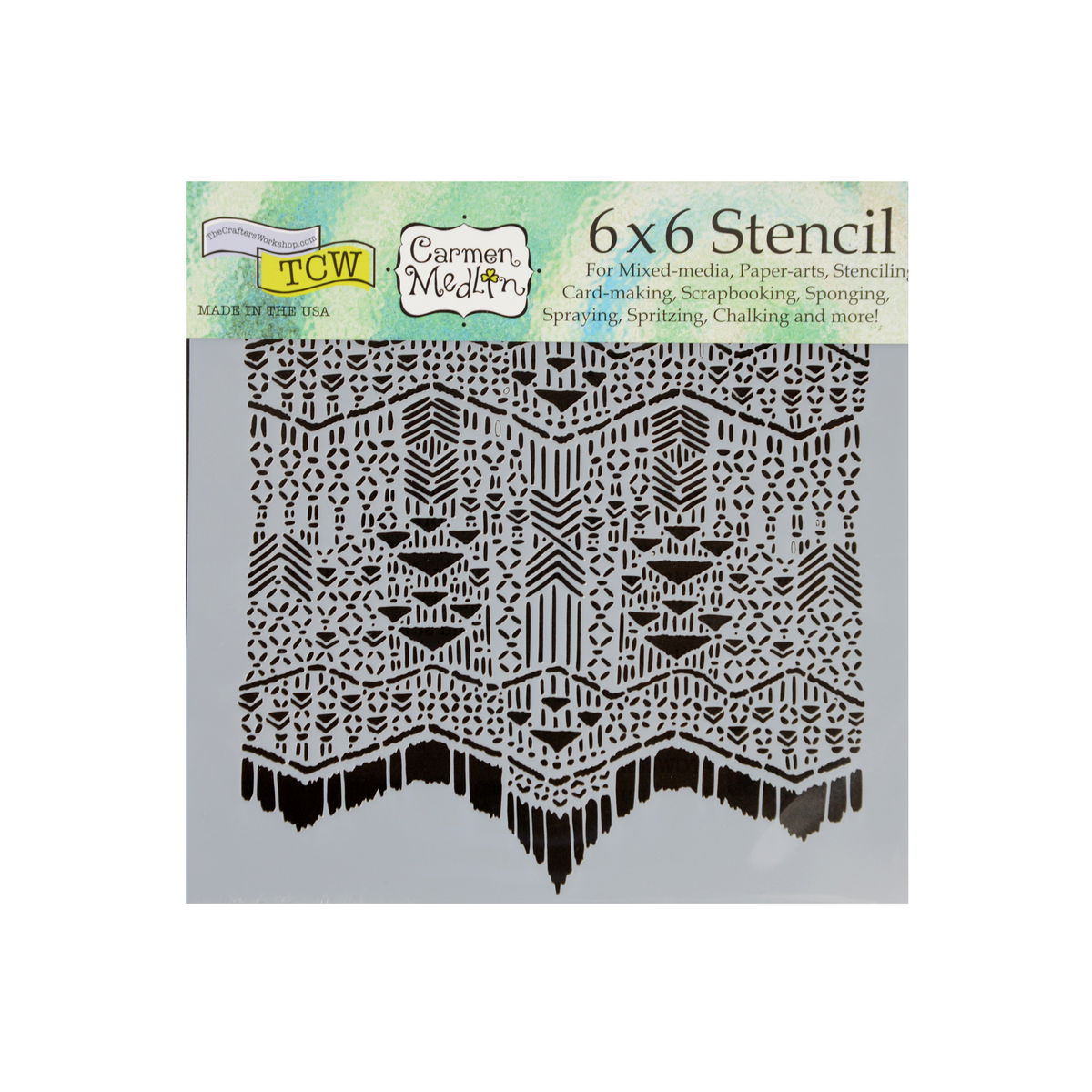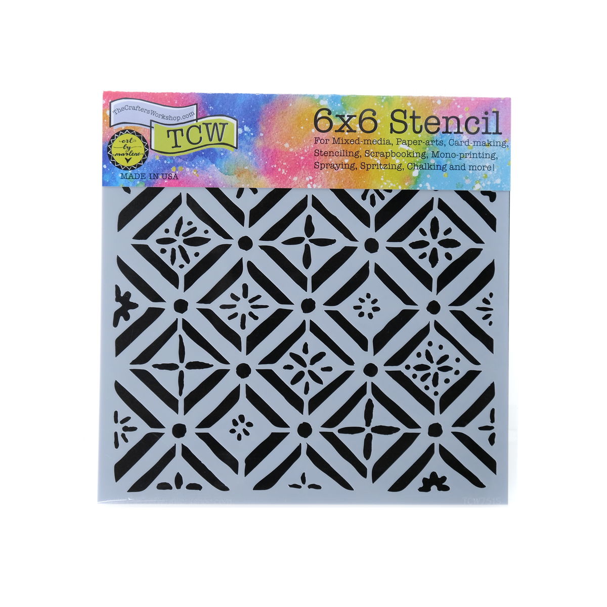 Made of a sturdy plastic material, these detailed stencils can be used in paper crafting projects, quilting, home decorating, and beyond. They are great for chalking, inking, spraying or use with modeling paste for a textured effect. They can be used as an artistic focal point or to create a unique background. Available in a 6 in. x 6 in. format and in a wide variety of designs.