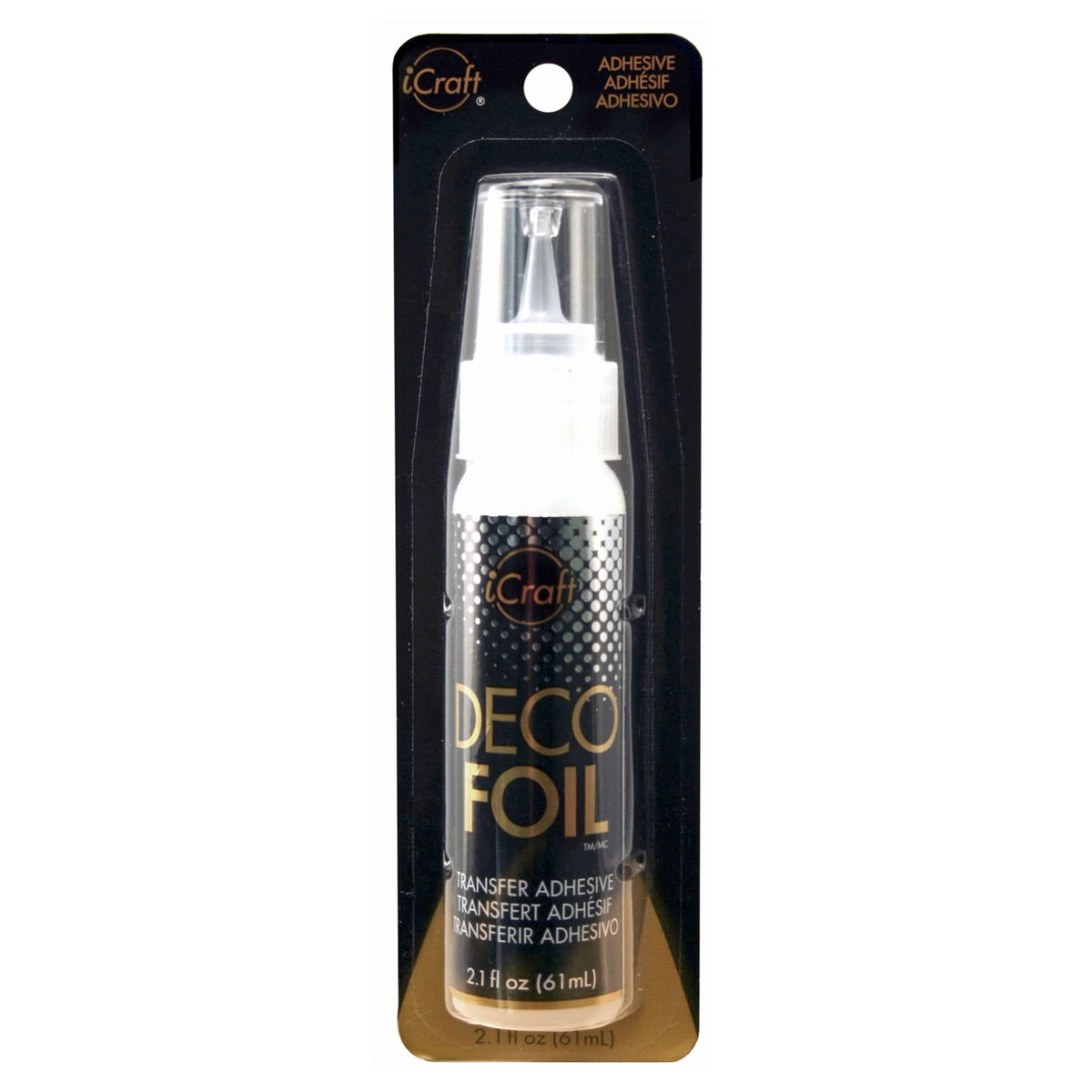 Made exclusively to use with iCraft Deco Foil, this non-toxic acid-free adhesive can be applied to paper or fabric for beautiful metallic accents. Let dry until crystal clear before applying foil. Fabrics may be machine washed in cold water after foil is applied, but do not tumble dry. Available in a 2.1 oz. bottle (61 ml) with an applicator tip.