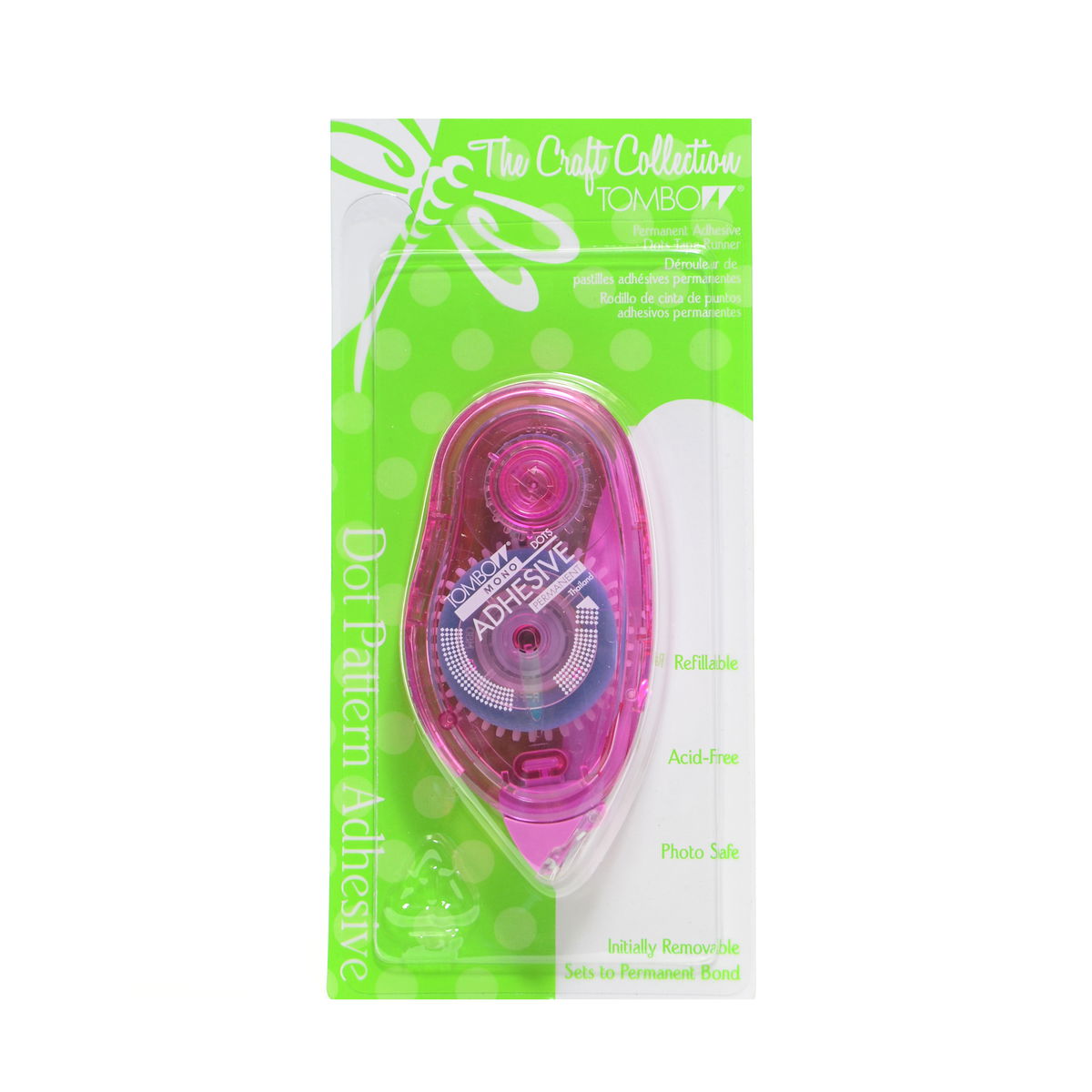 Conveniently apply adhesive tape or dots without the mess of glue. Ergonomic dispenser precisely applies a film of glue smoothly, quickly, and cleanly. Mono Adhesive Dots applies a strip of unique permanent diamond dot adhesive. Available in permanent for strong bond and repositionable for self-sticking and removing. Repositionable bond with stronger adhesion, removes cleanly without leaving residue. Acid-free: ideal for use with memory albums and archival materials. CK OK and Photographic Activity Test (PAT) ANSI IT9.16 approved. Non-refillable dispenser contains 1/3 in. x 335 in. of adhesive. Refillable dispenser and refills contain 1/3 in. x 472 in. of adhesive.