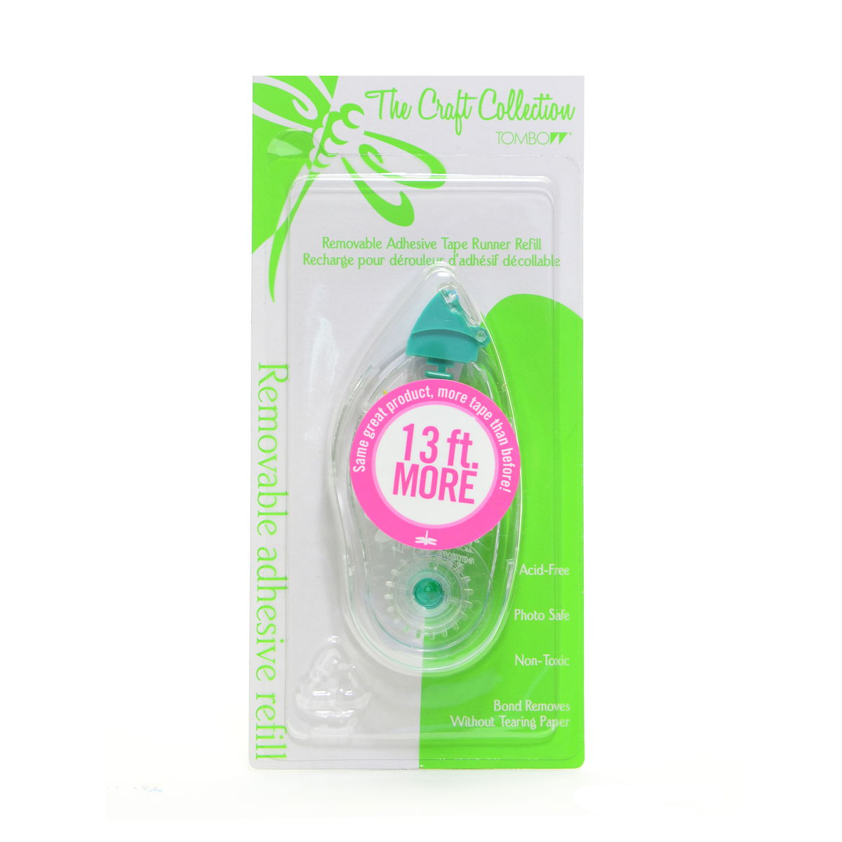 - Refillable dispenser holds 1/3 in. x 472 in.