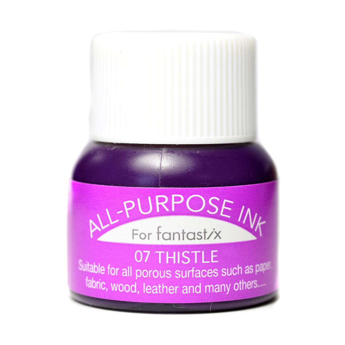 Tsukineko All-Purpose Ink is water-based pigment ink which can be painted, airbrushed stenciled or dyed onto any porous surface. Use as a blendable craft ink on paper, wood, leather, fabric and much more. This ink will maintain the soft hand of fabric and is permanent when heat set. Use with Tsukineko bullet or brush tip Fantastix and create your own ink markers to provide a consistent flow of ink and create custom colors.