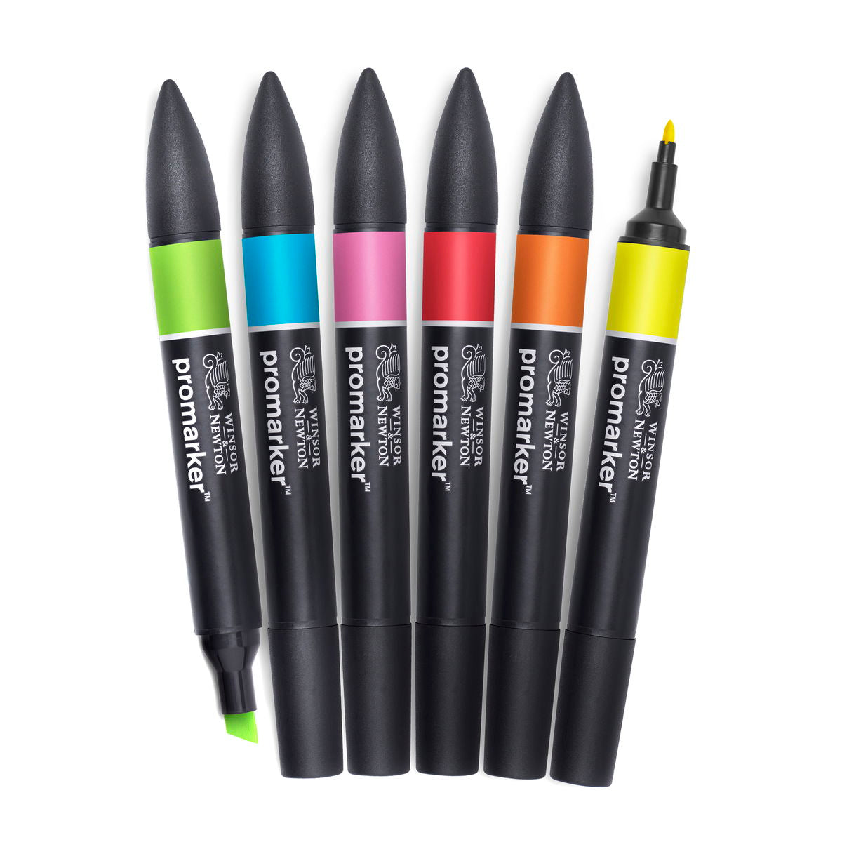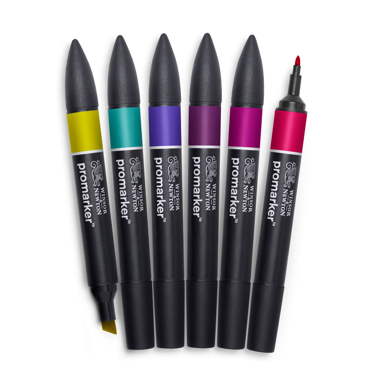 Promarkers offer translucent, alcohol-based ink ideal for adding subtle nuances or building dramatic layering to your work. Streak-free coverage means you can achieve flawless, print-like results. The twin-tipped design comes with a broad chisel for shading large areas and a fine bullet nib for precision detailing. The smooth colors are loved by graphic designers, illustrators, and artists around the world. Promarker sets are available in a range of themes or key colors to jumpstart your collection. Incorporate the Promarker Blender to explore the range of tones in each color, softening and merging the colors together. The possibilities are endless! Experiment with a variety of surfaces including acetate, glass, plastic, and even wood.