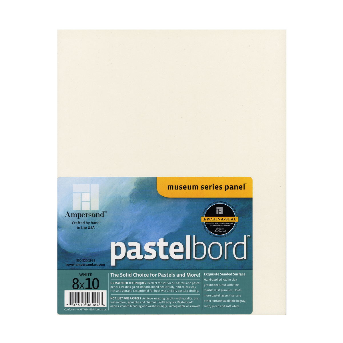 Esta superficie con calidad de museo admite técnicas aditivas y sustractivas. Aplique capas de pasteles suaves hasta lograr una rica saturación y luego resalte las luces o refine los bordes sin rasgar ni degradar la superficie. El recubrimiento de polvo de mármol admite fijador sin oscurecer ni alterar los valores de color, lo cual es fundamental para preservar la apariencia deseada de su obra. Su fabricación sin ácido y con pH neutro garantiza que los pigmentos se mantengan intactos, evitando que se desplacen a medida que los fondos de menor calidad amarillean y se deterioran.