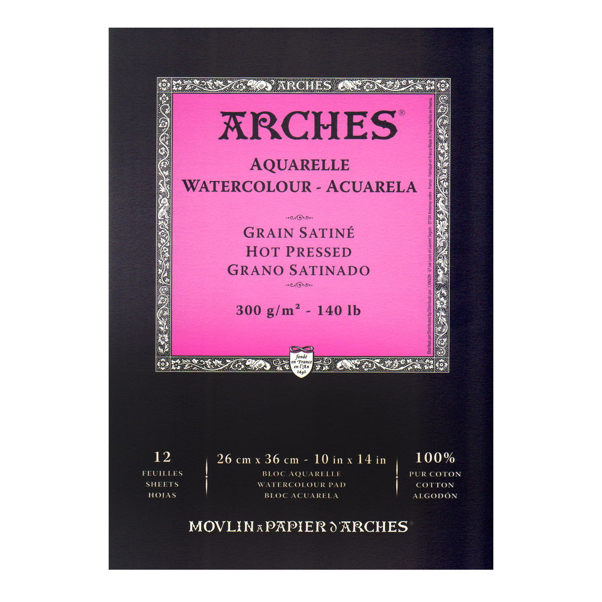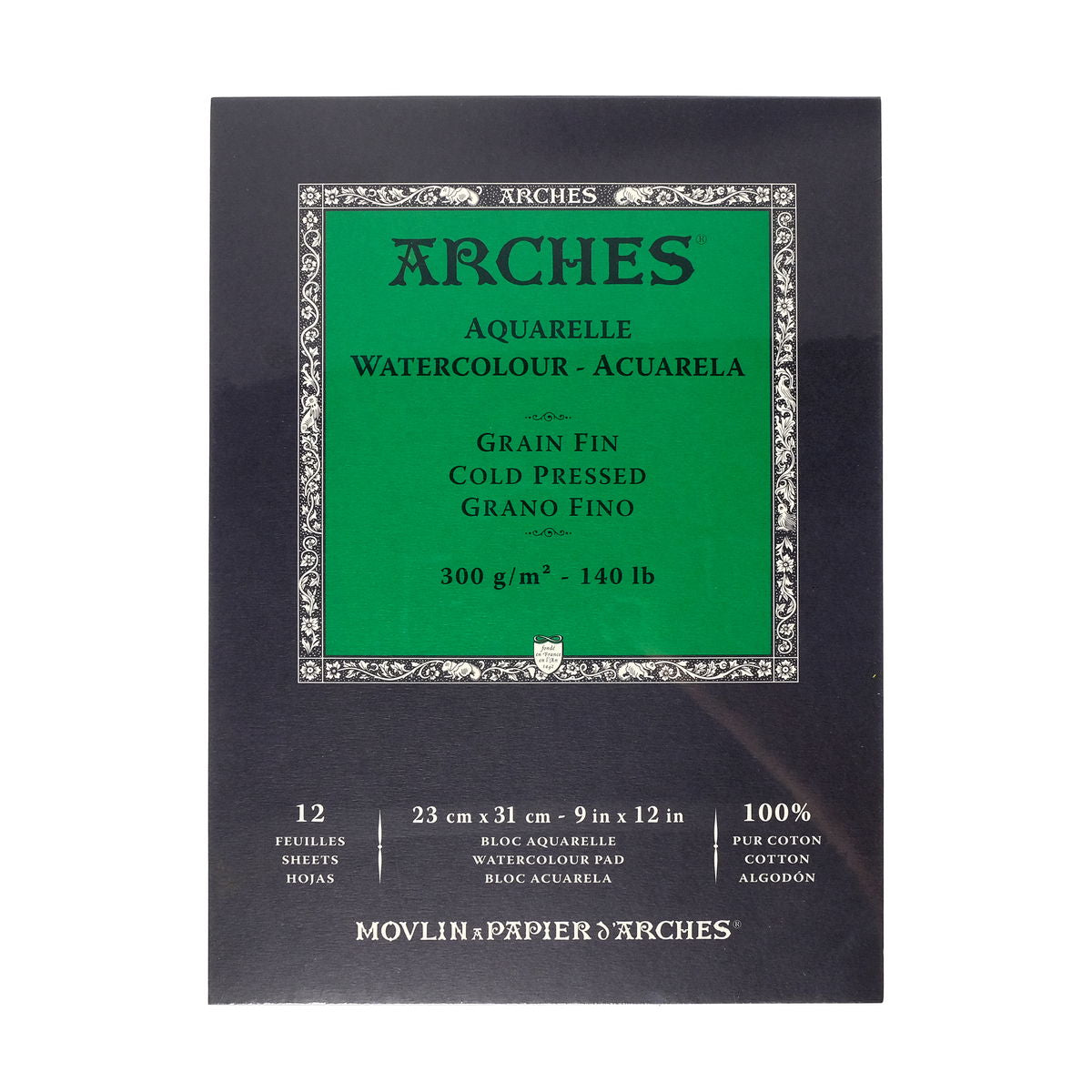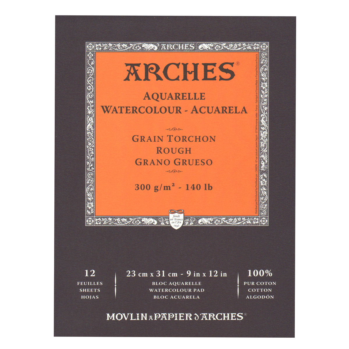 Los papeles de acuarela Arches se fabrican en Francia con una máquina de moldeo cilíndrico en la misma fábrica de papel desde 1942. Con un enfoque en la calidad y la tradición excepcionales, cada hoja está compuesta 100 % de trapo y se inspecciona a mano para garantizar la consistencia de su superficie, textura y rendimiento. Fieltros especiales le confieren un elegante acabado de grano. Este papel duradero tiene doble encolado: uno en el batidor y otro después de la formación de la hoja. Estas páginas de 140 lb son ideales para acuarela, gouache, tinta, acrílico, dibujo y grabado. Las hojas son lo suficientemente resistentes como para soportar múltiples lavados de color, líquido enmascarador, frotamiento y cinta adhesiva sin dañar la superficie. Los blocs de acuarela Arches están encuadernados con cinta adhesiva desde la parte superior y contienen 12 hojas en blanco natural.