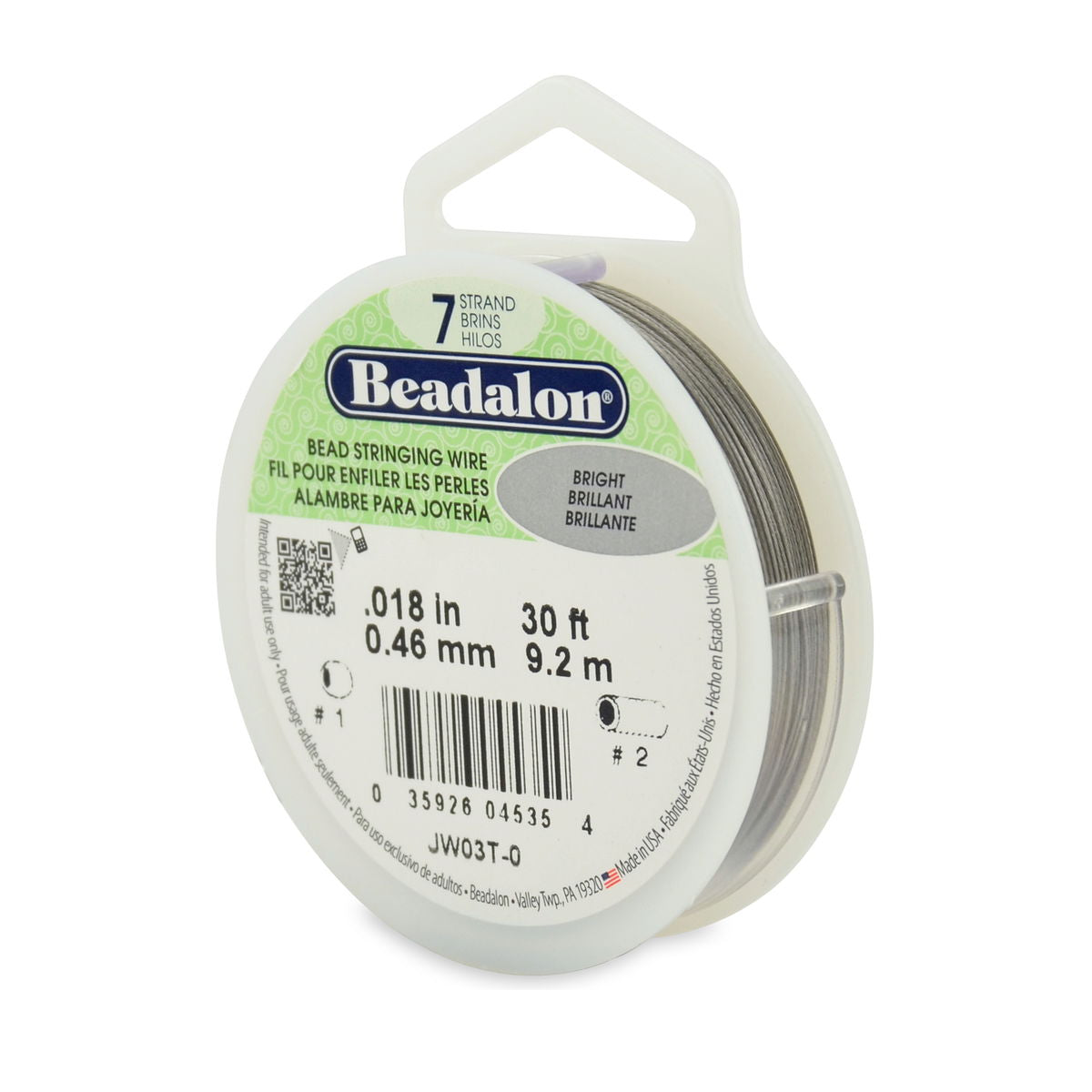 El alambre Beadalon de 7 hebras está compuesto por 7 hebras recubiertas de un revestimiento protector de nailon resistente a la abrasión. Con buena flexibilidad y buena caída, este alambre es muy resistente y no se enrosca. Su precio económico lo convierte en una excelente opción para proyectos de abalorios en general. Disponible en colores metálicos, satinados y estándar en carretes de 9 metros y diferentes grosores. Los colores metálicos reflejan la luz y dan la apariencia de metales preciosos. Los colores satinados son alambres recubiertos de nailon en tonos mate suaves. Los colores estándar están recubiertos de nailon transparente, negro o blanco.