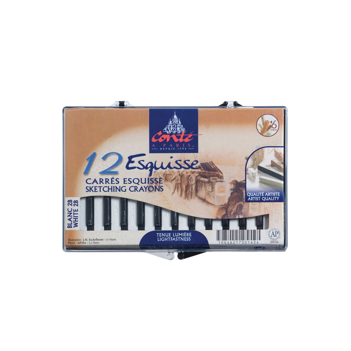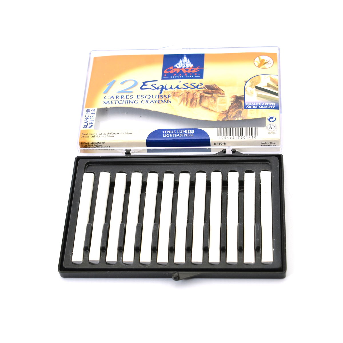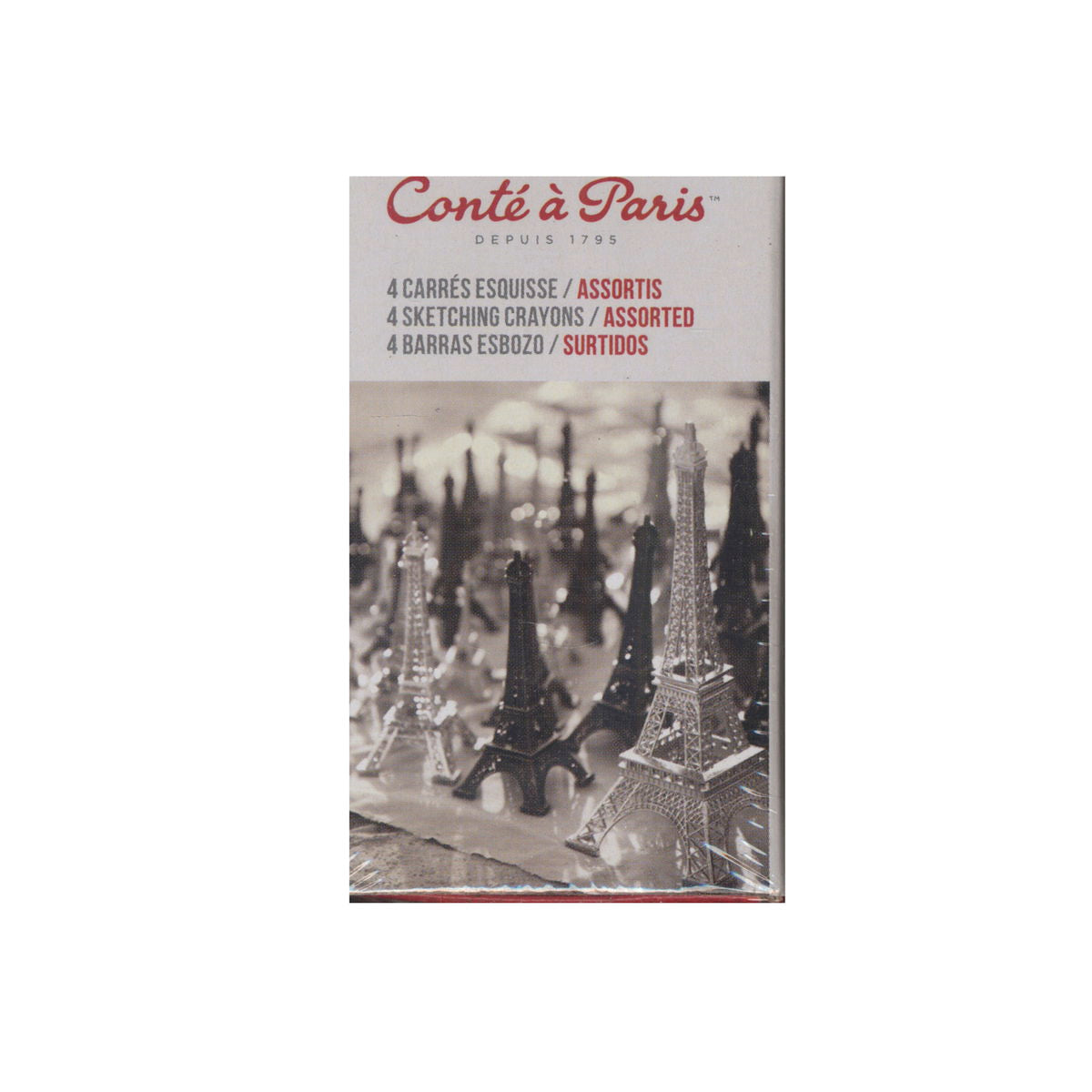 - Paquete surtido de 4 crayones que incluye blanco, negro, bistre y sanguina.