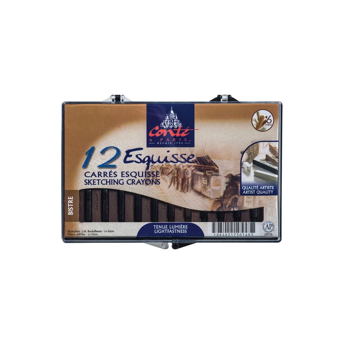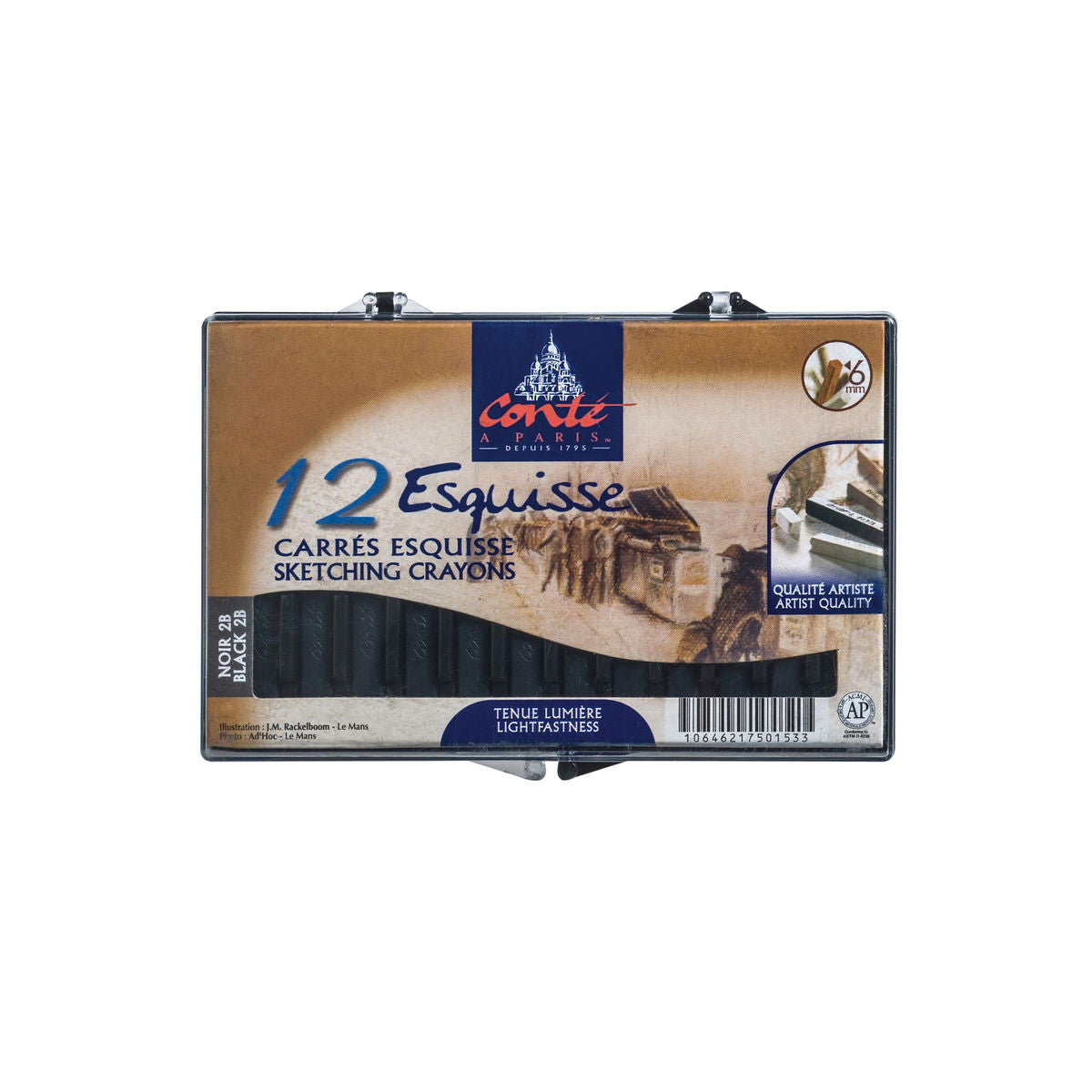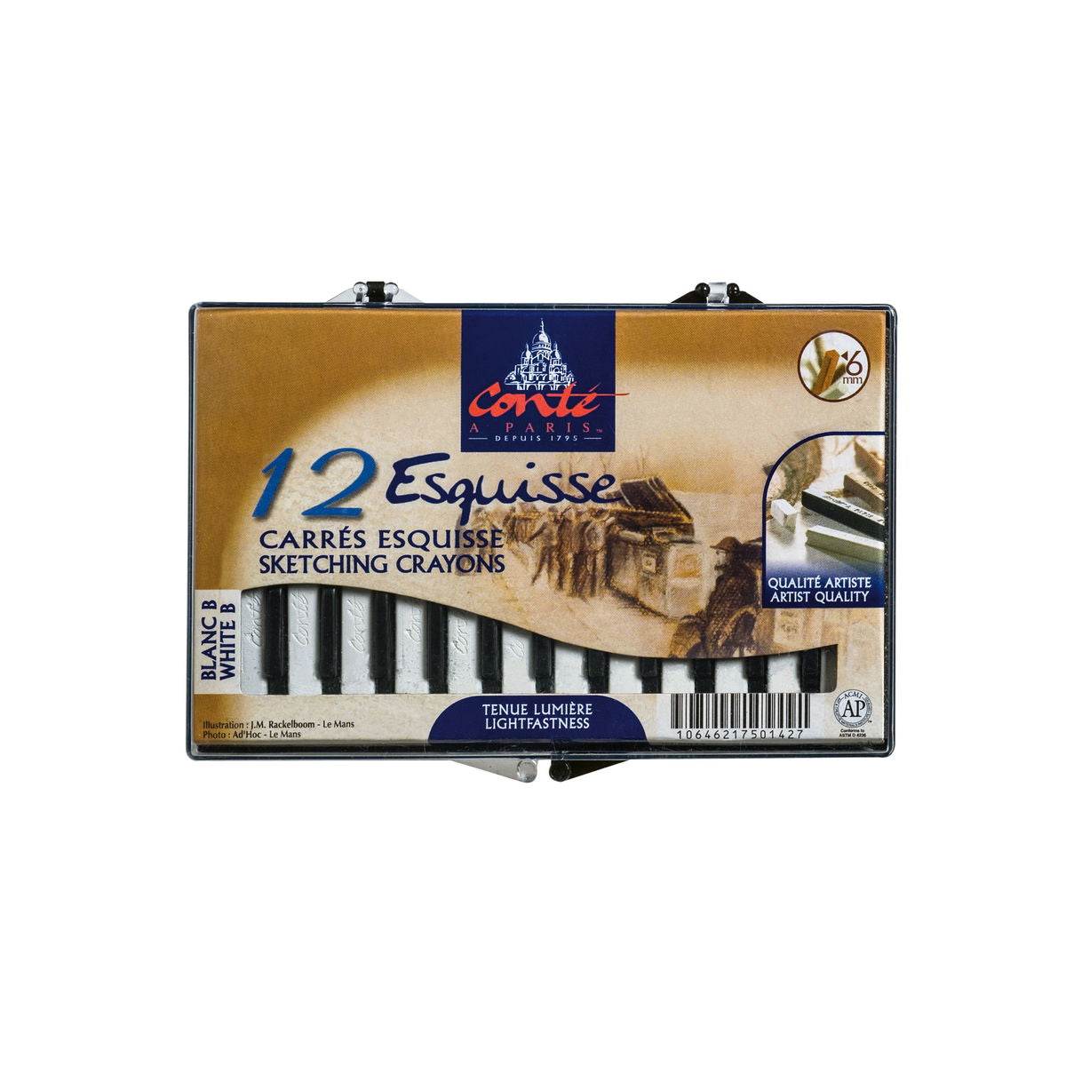 - Paquete surtido de 4 crayones que incluye blanco, negro, bistre y sanguina.