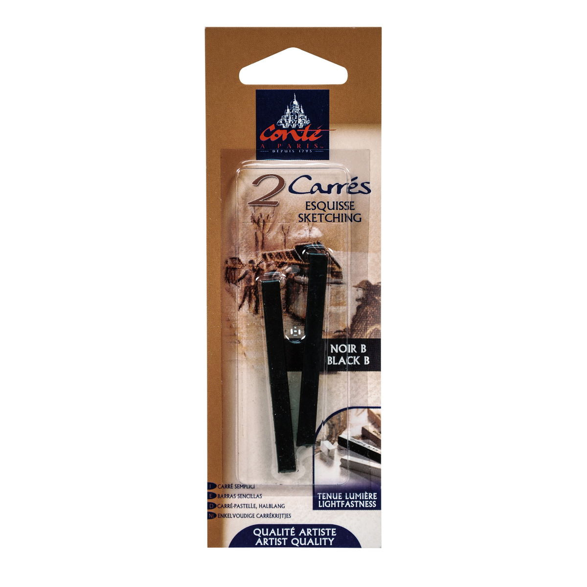 Las barras cuadradas con bordes biselados ofrecen opciones de dibujo que los crayones redondos no pueden igualar. Usa la esquina para líneas precisas, el borde plano para trazos intensos o el lado ancho para trazos tonales amplios. Esta geometría versátil, combinada con fórmulas perfeccionadas durante dos siglos, explica por qué los crayones Conte siguen siendo fundamentales para el dibujo de figuras y el retrato. Divide las barras en tiras más cortas para un mejor control durante sesiones prolongadas.