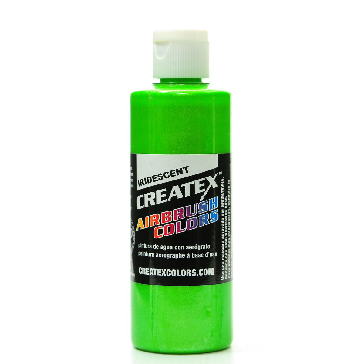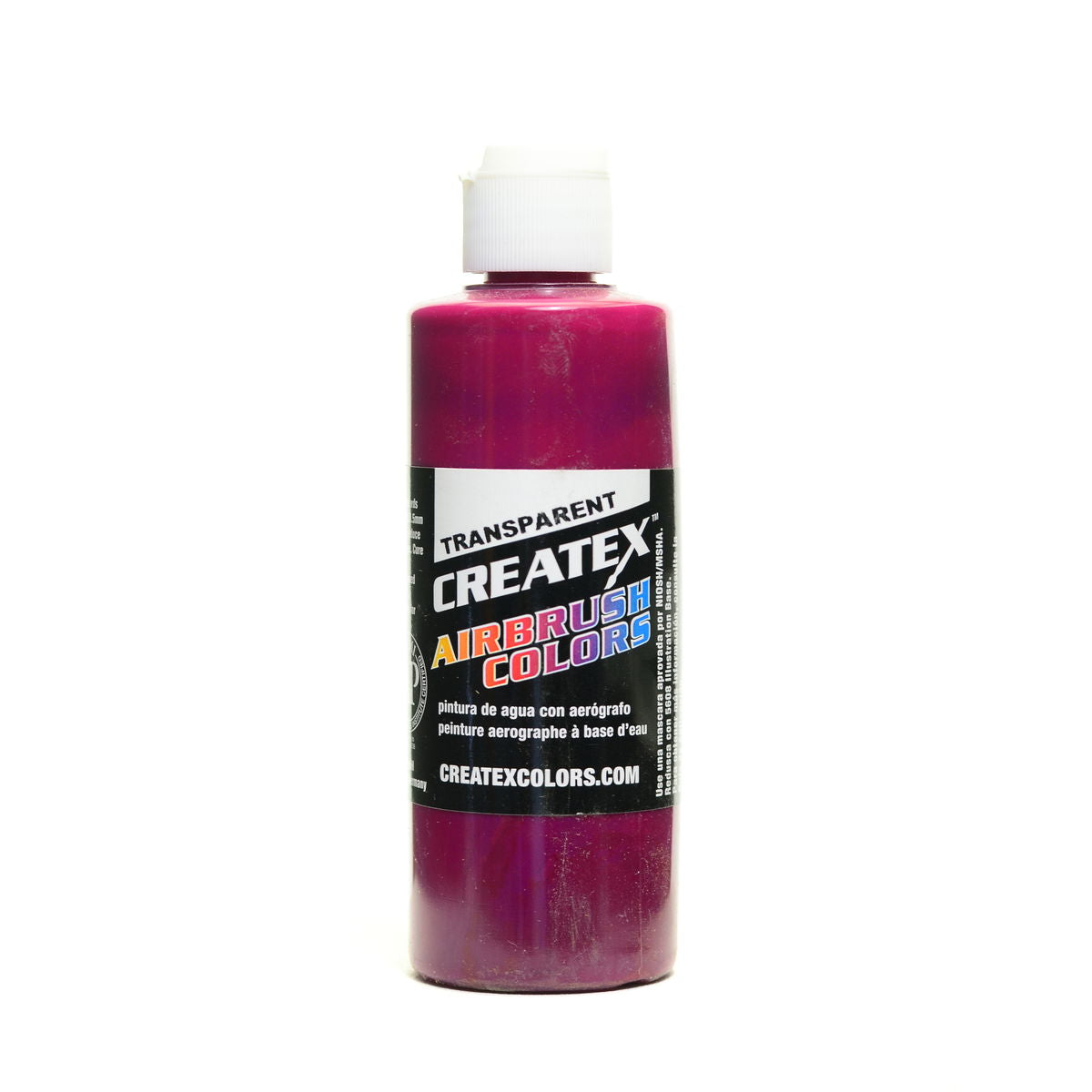 Los colores para aerógrafo Createx son de grado profesional, fabricados con los más altos estándares de control de calidad. Createx utiliza los pigmentos más finos disponibles, y los colores tienen un brillo y una riqueza inigualables. Estos colores se pueden usar en una variedad de superficies, incluyendo telas, cuero, lienzo, papel, madera, cerámica y arcilla, con resultados permanentes. Los colores transparentes son solo para superficies blancas y de colores claros. Se pueden mezclar con todos los demás colores para aerógrafo Createx. Los colores fluorescentes son para superficies blancas y de colores claros. Se pueden mezclar con colores transparentes, perlados y otros fluorescentes. Los colores opacos son para superficies de colores claros y oscuros. Se pueden mezclar con otros colores opacos o transparentes. Los colores perlados cubren superficies de colores claros y oscuros. Estos colores tienen un acabado metálico brillante. Se pueden mezclar con otros colores perlados, transparentes y fluorescentes. Los colores para aerógrafo Createx están disponibles en botellas de 4 oz. y 16 oz.