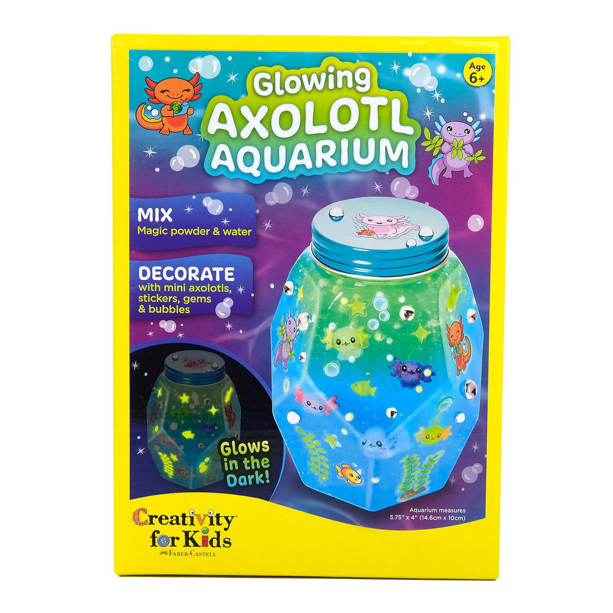 Cinco detalladas figuras de ajolote vienen en diversas poses, listas para colocar en tu acuario de gel. Personaliza el acuario de plástico con pegatinas de colores, detalles que brillan en la oscuridad, cristales de burbujas y adornos de espuma que añaden profundidad y personalidad a la escena. La tapa segura mantiene todo contenido una vez colocado, lo que lo convierte en una creación para exhibir en lugar de un solo uso.