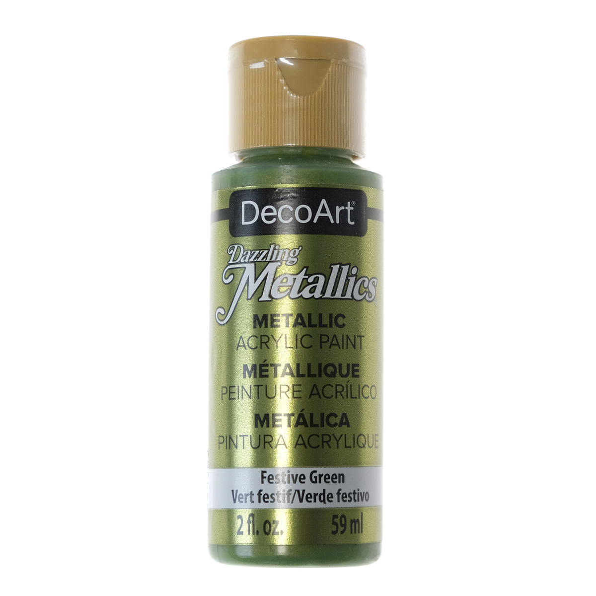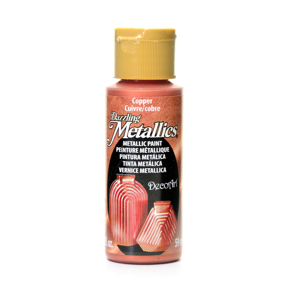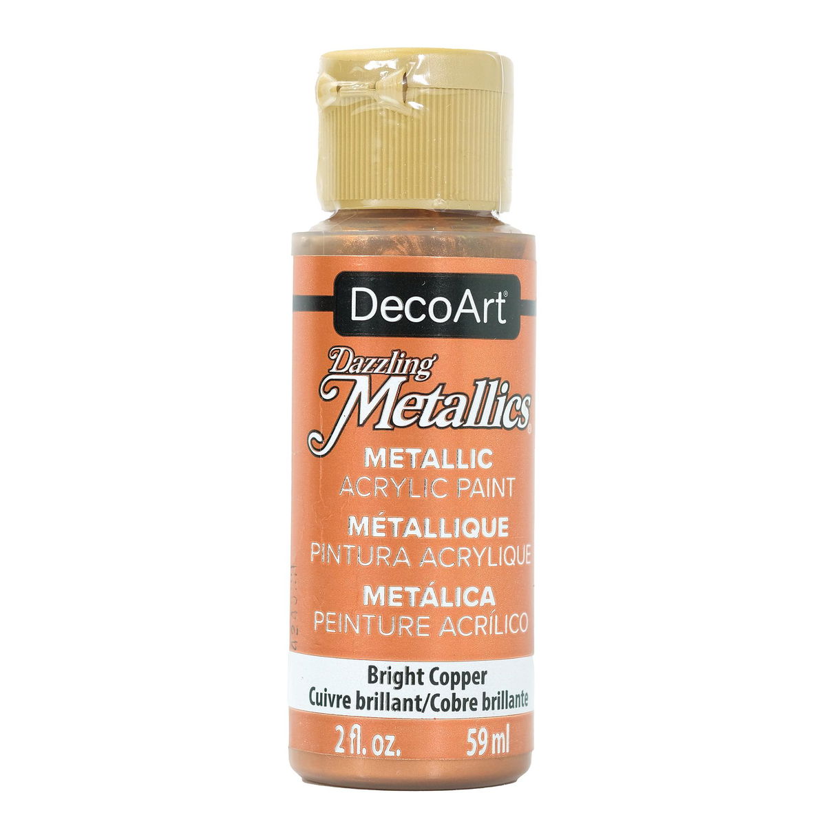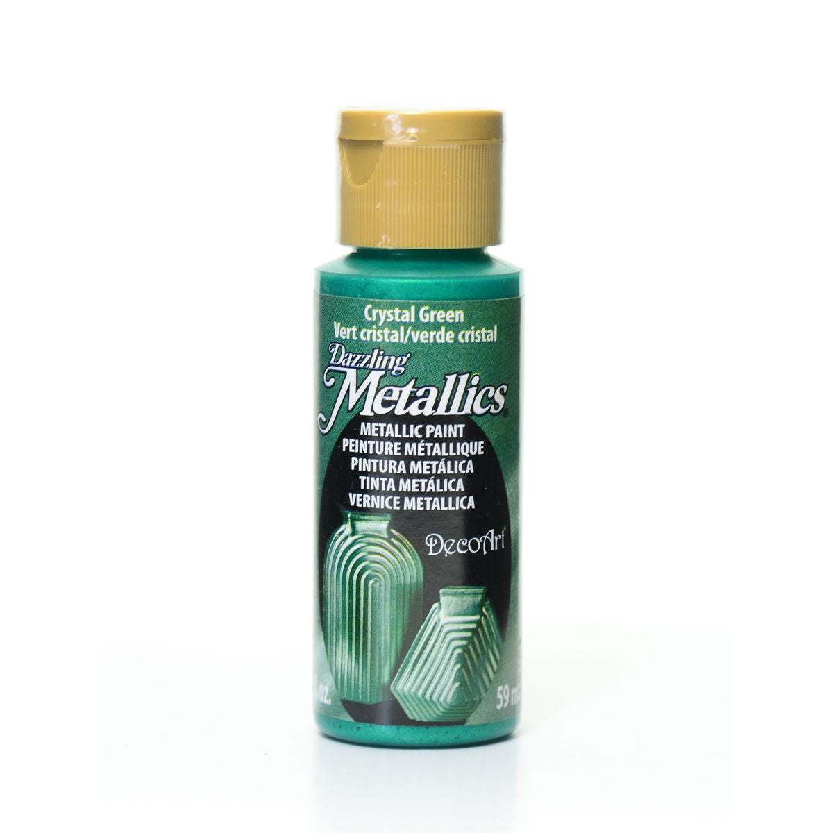 Las escamas de metal real suspendidas en acrílico crean un brillo metálico genuino en lugar de un brillo simulado. Esto es importante cuando se necesitan detalles reflectantes que capturen la luz como el metal real, sin un sustituto perlado mate. DecoArt muele las escamas lo suficientemente finas para que fluyan suavemente desde las botellas flexibles, manteniendo una opacidad que cubre en menos capas que las pinturas metálicas para manualidades típicas.