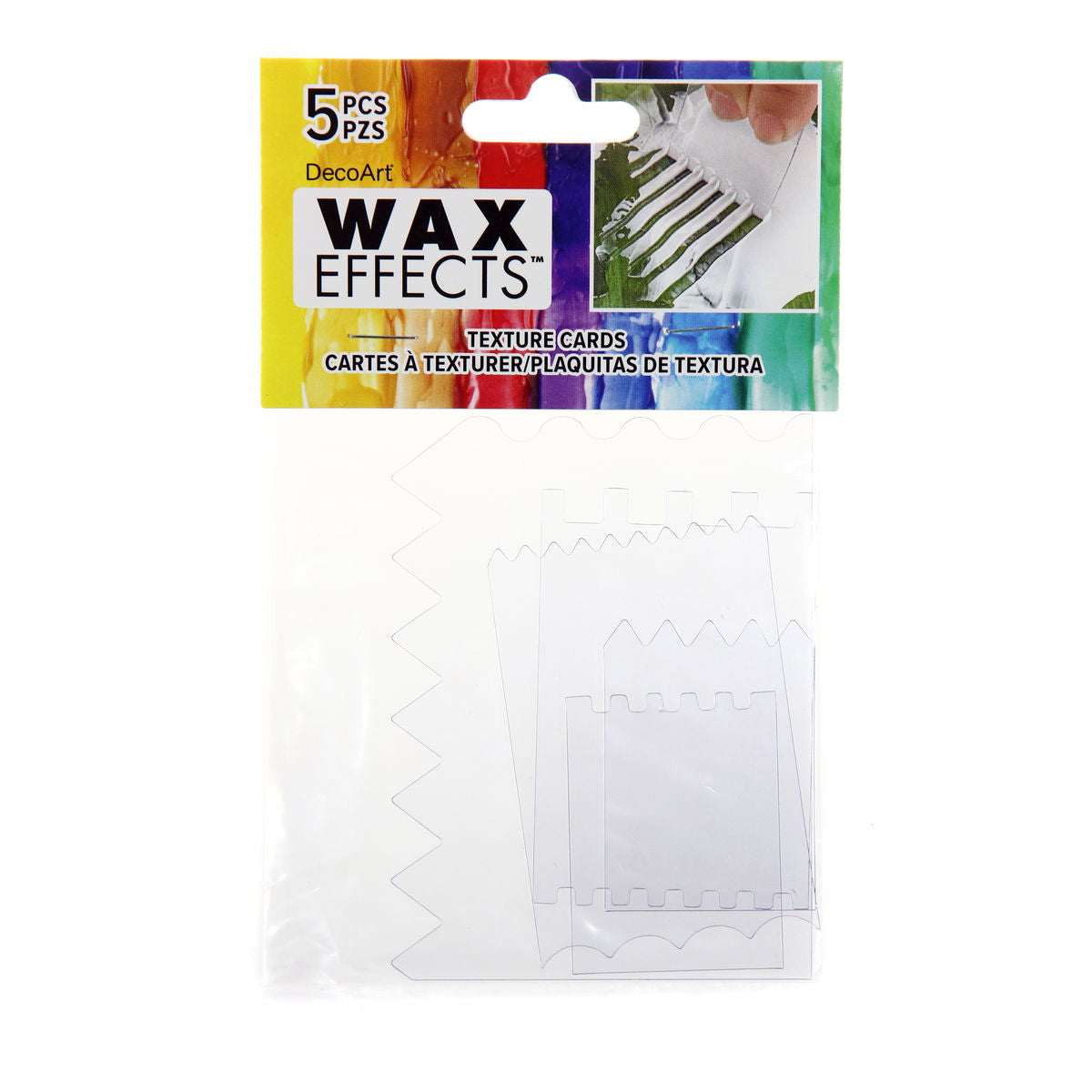 Cinco perfiles distintos te permiten adaptarte a un solo patrón. Experimenta con la superposición de diferentes texturas, combinando trazos rectos con barridos curvos o alternando entre trazos superficiales y profundos dentro de la misma composición. DecoArt diseñó estas tarjetas específicamente para su sistema WaxEffects, pero funcionan igual de bien con técnicas tradicionales de encáustica, pasta de modelar, geles de textura y cualquier medio que se beneficie de una manipulación controlada de la superficie.