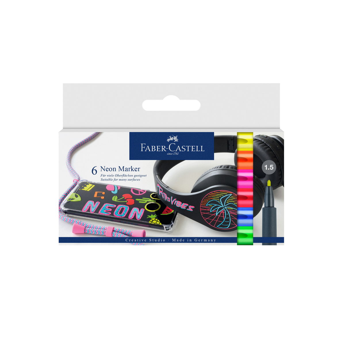 La tinta neón termofijable ofrece aplicaciones más allá del papel estándar: etiquetas de vidrio personalizadas, cajas de plástico para proyectos y cartulina oscura que hace que los marcadores estándar desaparezcan. Los marcadores neón Faber-Castell ofrecen una permanencia impermeable al aplicar calor, transformando las fórmulas a base de agua en marcas duraderas que resisten salpicaduras y manipulación. Las puntas redondas aplican un color uniforme en superficies lisas donde otros marcadores forman gotas o rayas.