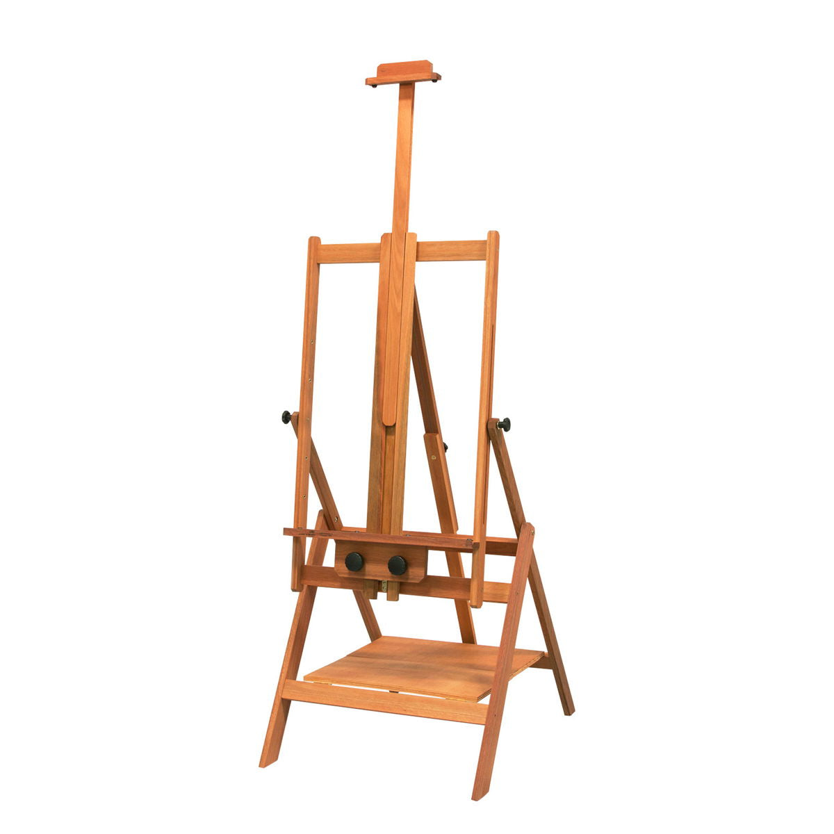 Horizontal para acuarelas que requieren una superficie plana, vertical para óleos y acrílicos, inclinado hacia adelante para que el polvo de pastel se desprenda de la superficie de trabajo en lugar de depositarse en ella. El amplio estante de base de 55,5 cm × 71 cm soporta sustratos de hasta 112 cm de altura, manteniendo la estabilidad al cambiar de posición.