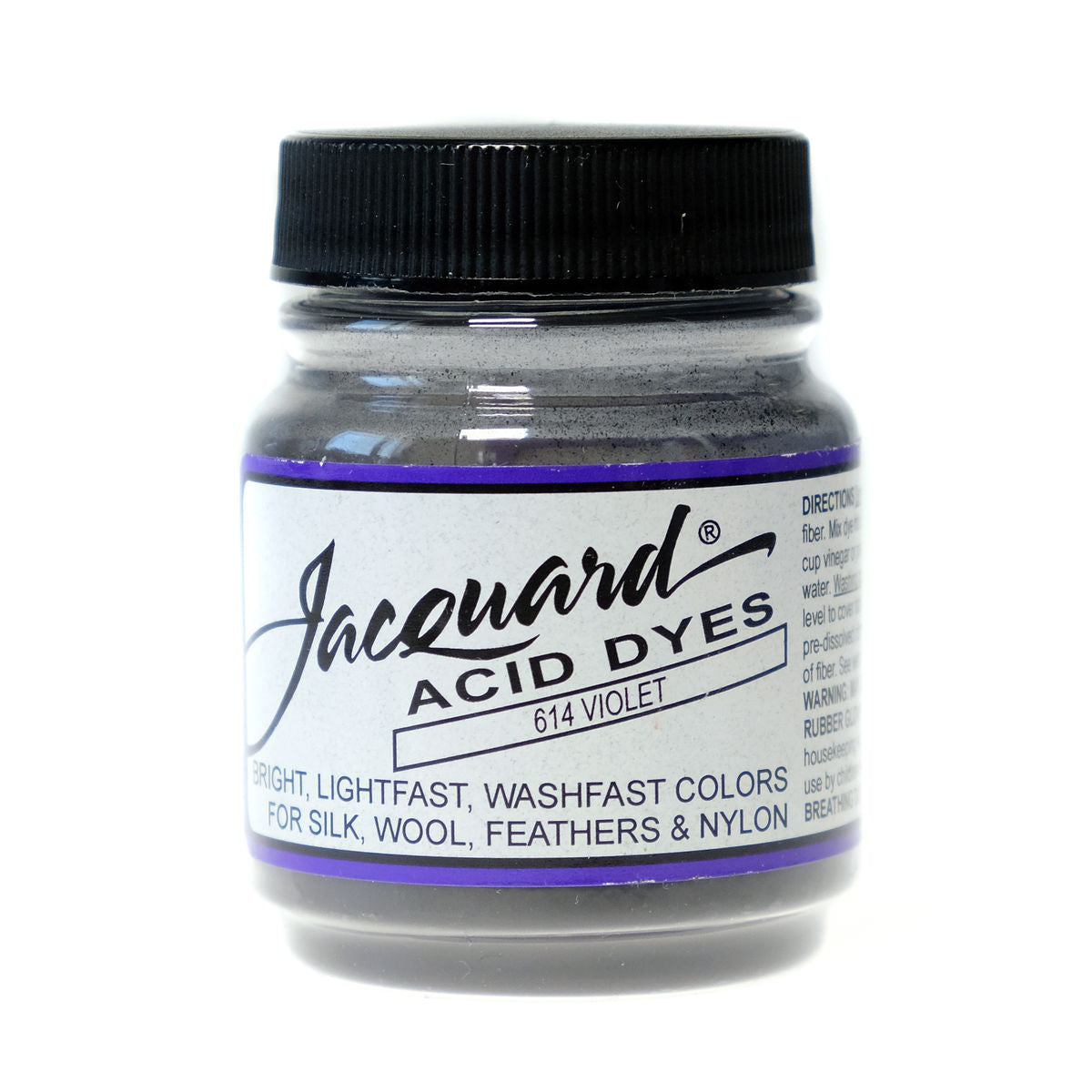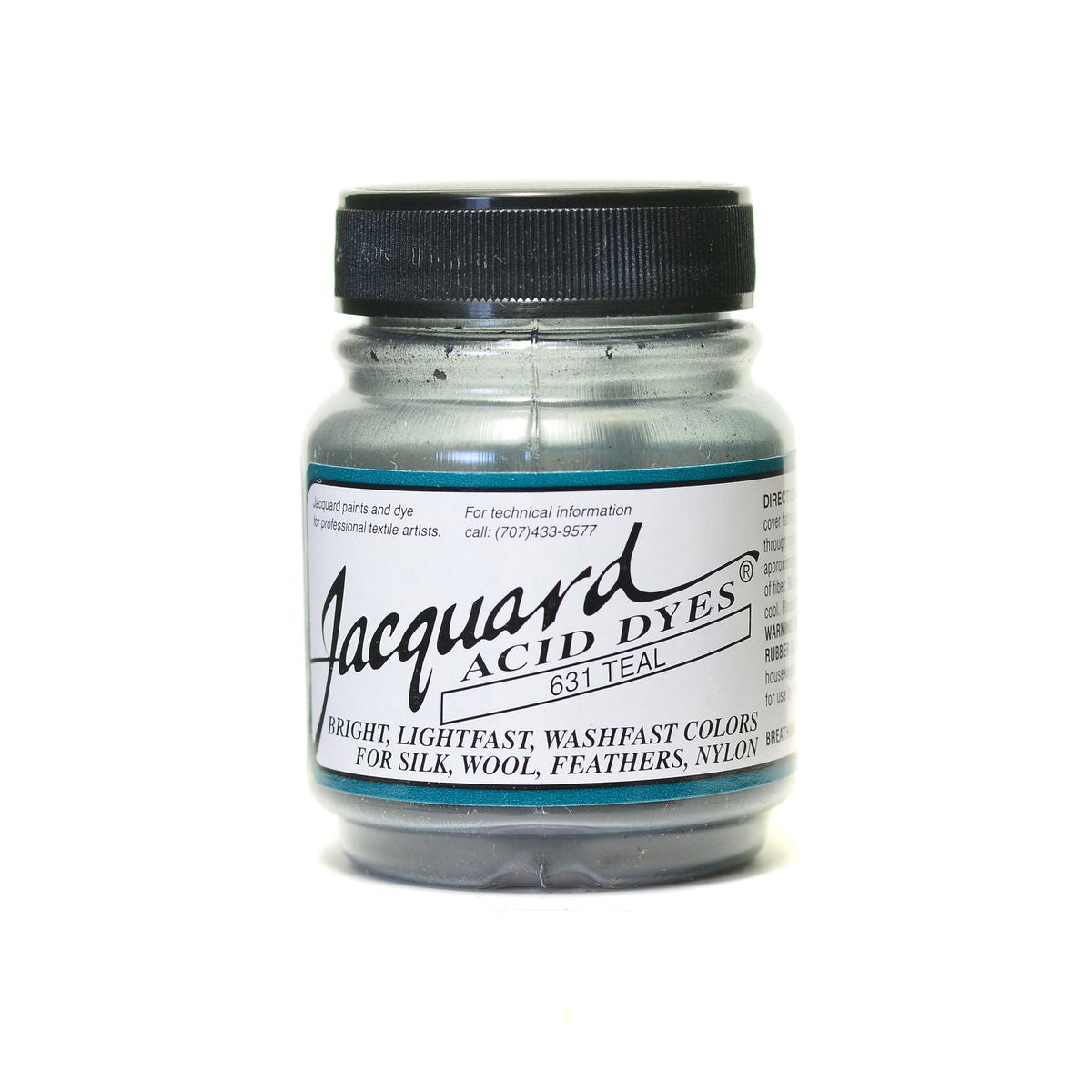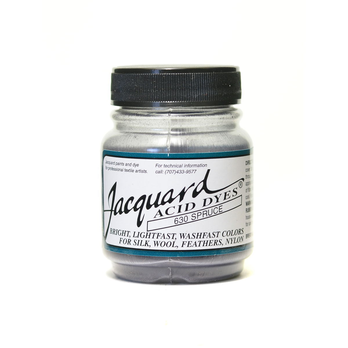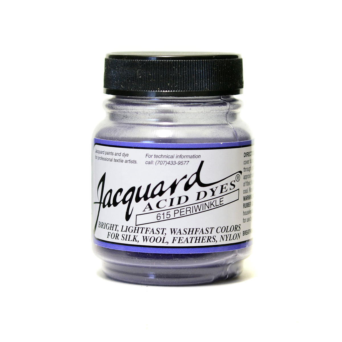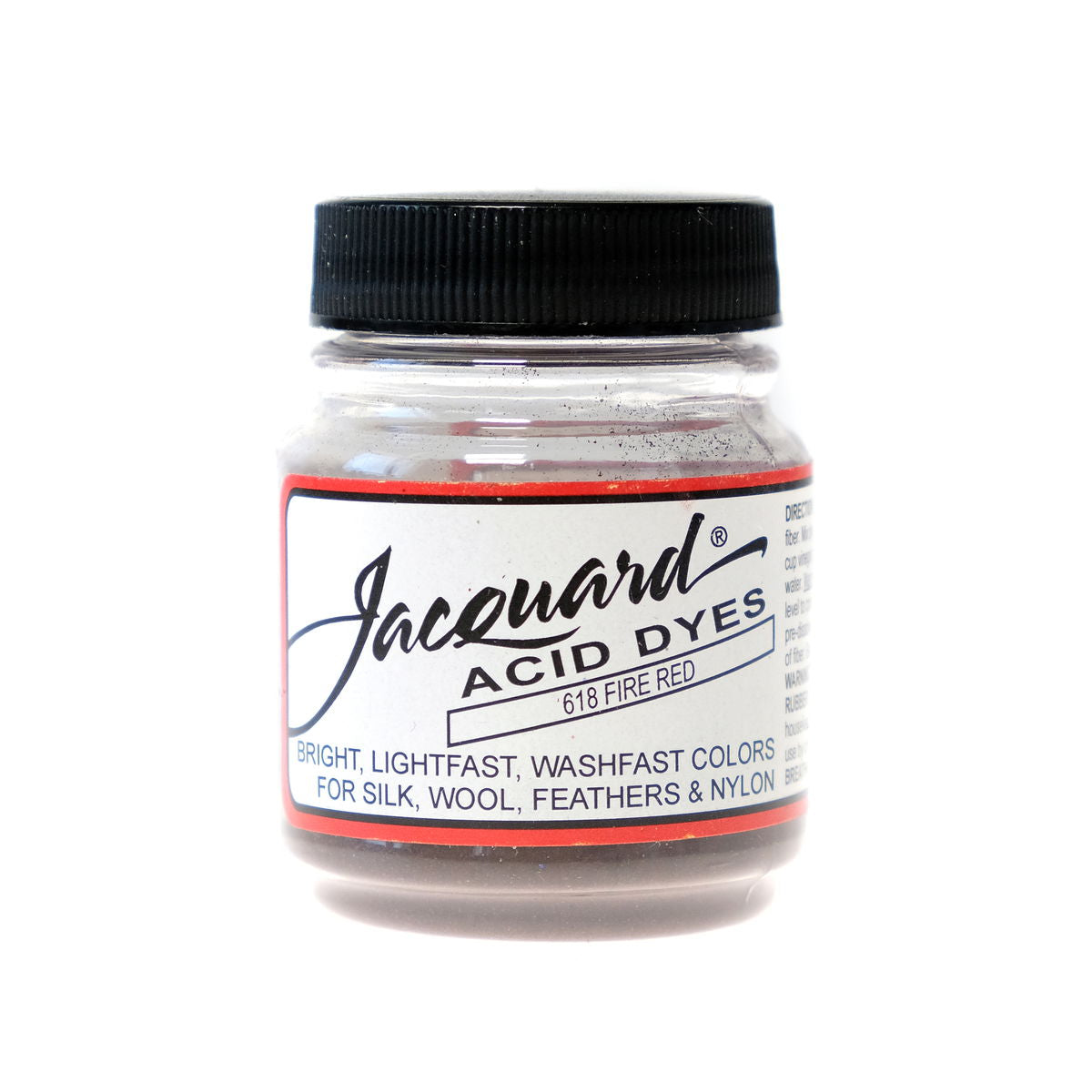 Los tintes ácidos Jacquard son tintes concentrados, en polvo, para agua caliente que producen los resultados más vibrantes posibles en fibras proteínicas, como seda, lana, cachemira, alpaca, plumas y la mayoría de las telas de nailon. No se alarme por el nombre: el único ácido que se utiliza es el vinagre que se agrega. Vienen envasados en un práctico frasco de 1/2 oz que se puede volver a cerrar y que teñirá aproximadamente dos libras de fibra. Los tintes ácidos Jacquard son extremadamente brillantes y no pierden color. Si puede lavar una carga de ropa, puede usar estos tintes. Es así de fácil. Además de teñir prendas en una lavadora, puede usarlos para pintar o estampar.