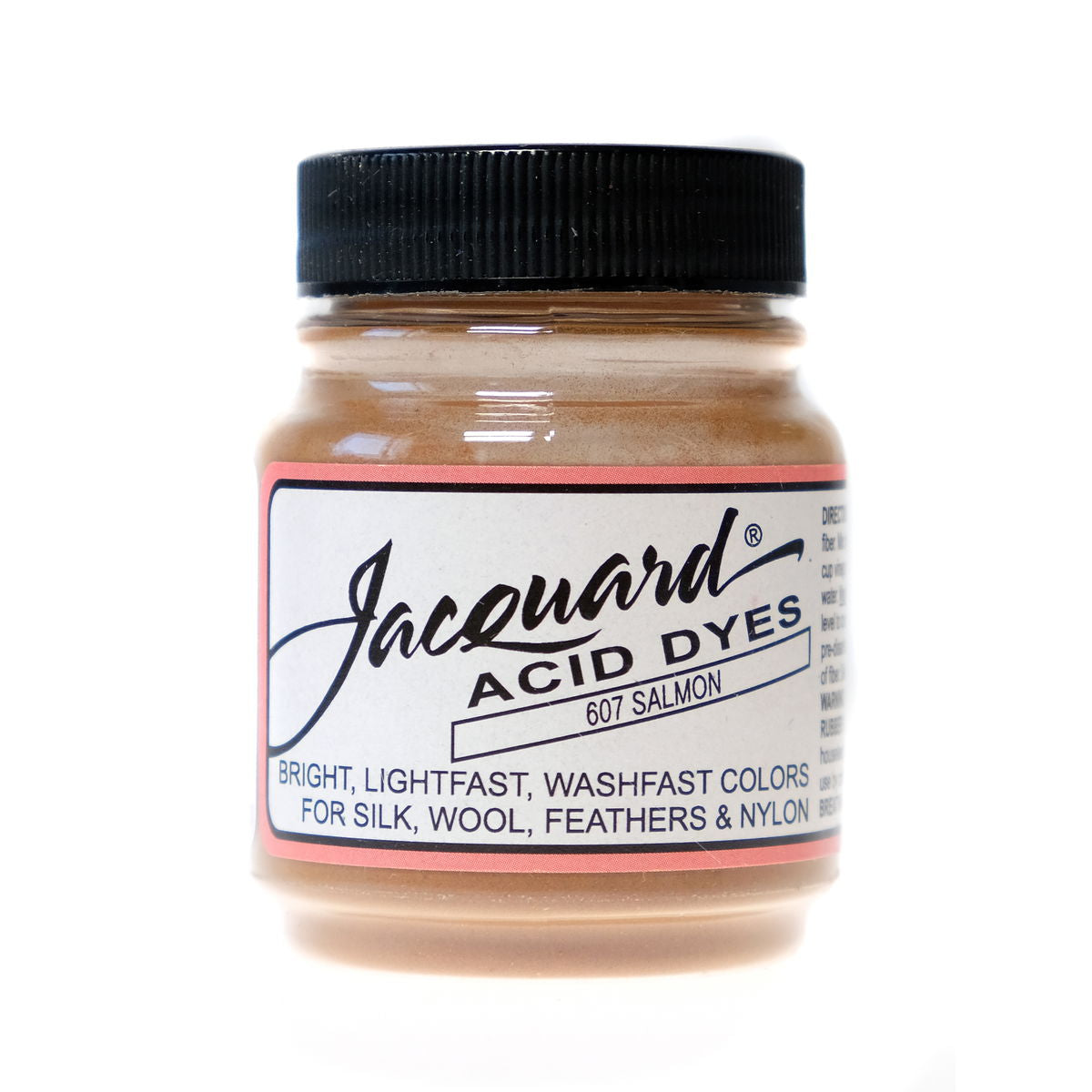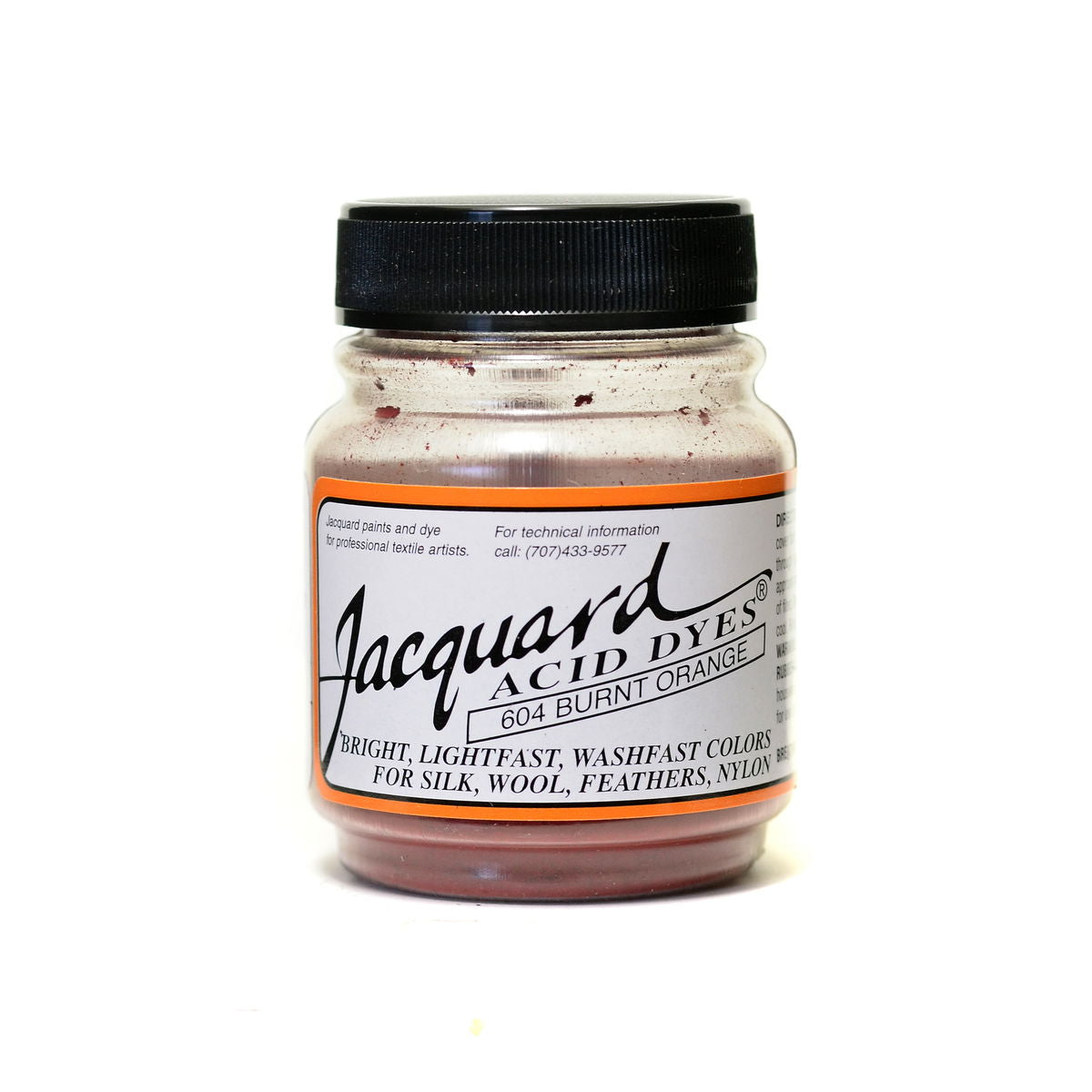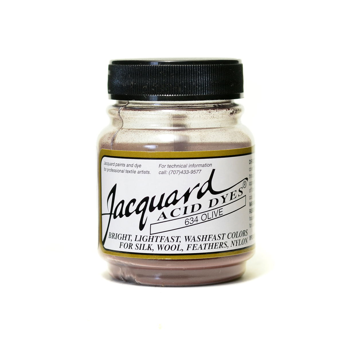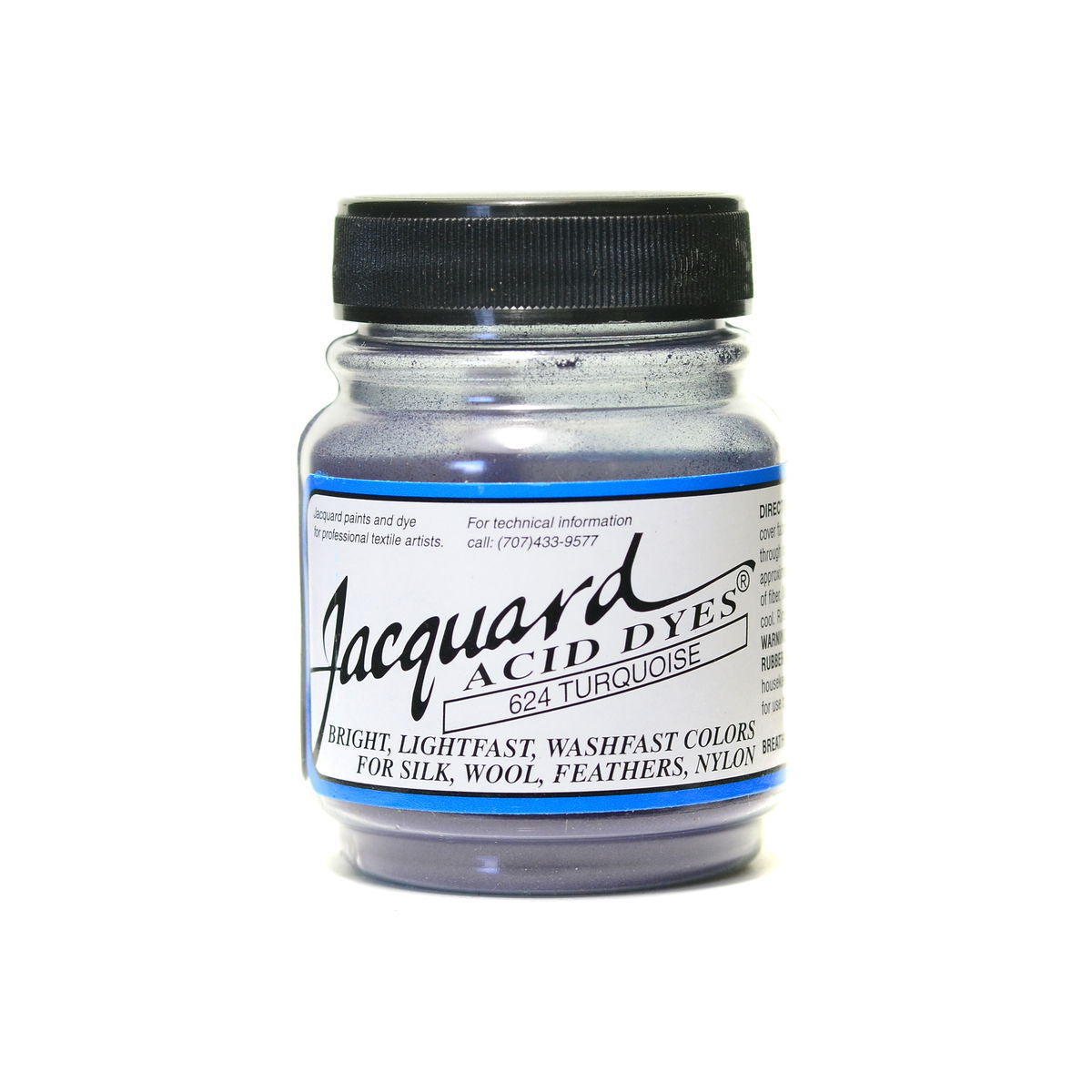 Los tintes ácidos Jacquard son tintes concentrados, en polvo, para agua caliente que producen los resultados más vibrantes posibles en fibras proteínicas, como seda, lana, cachemira, alpaca, plumas y la mayoría de las telas de nailon. No se alarme por el nombre: el único ácido que se utiliza es el vinagre que se agrega. Vienen envasados en un práctico frasco de 1/2 oz que se puede volver a cerrar y que teñirá aproximadamente dos libras de fibra. Los tintes ácidos Jacquard son extremadamente brillantes y no pierden color. Si puede lavar una carga de ropa, puede usar estos tintes. Es así de fácil. Además de teñir prendas en una lavadora, puede usarlos para pintar o estampar.