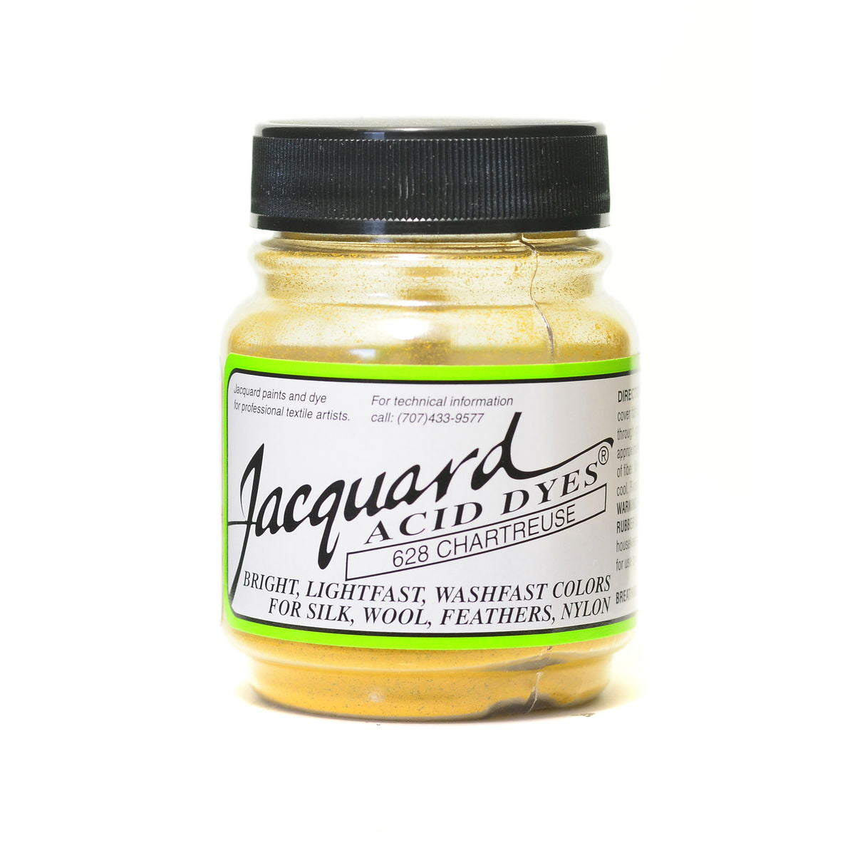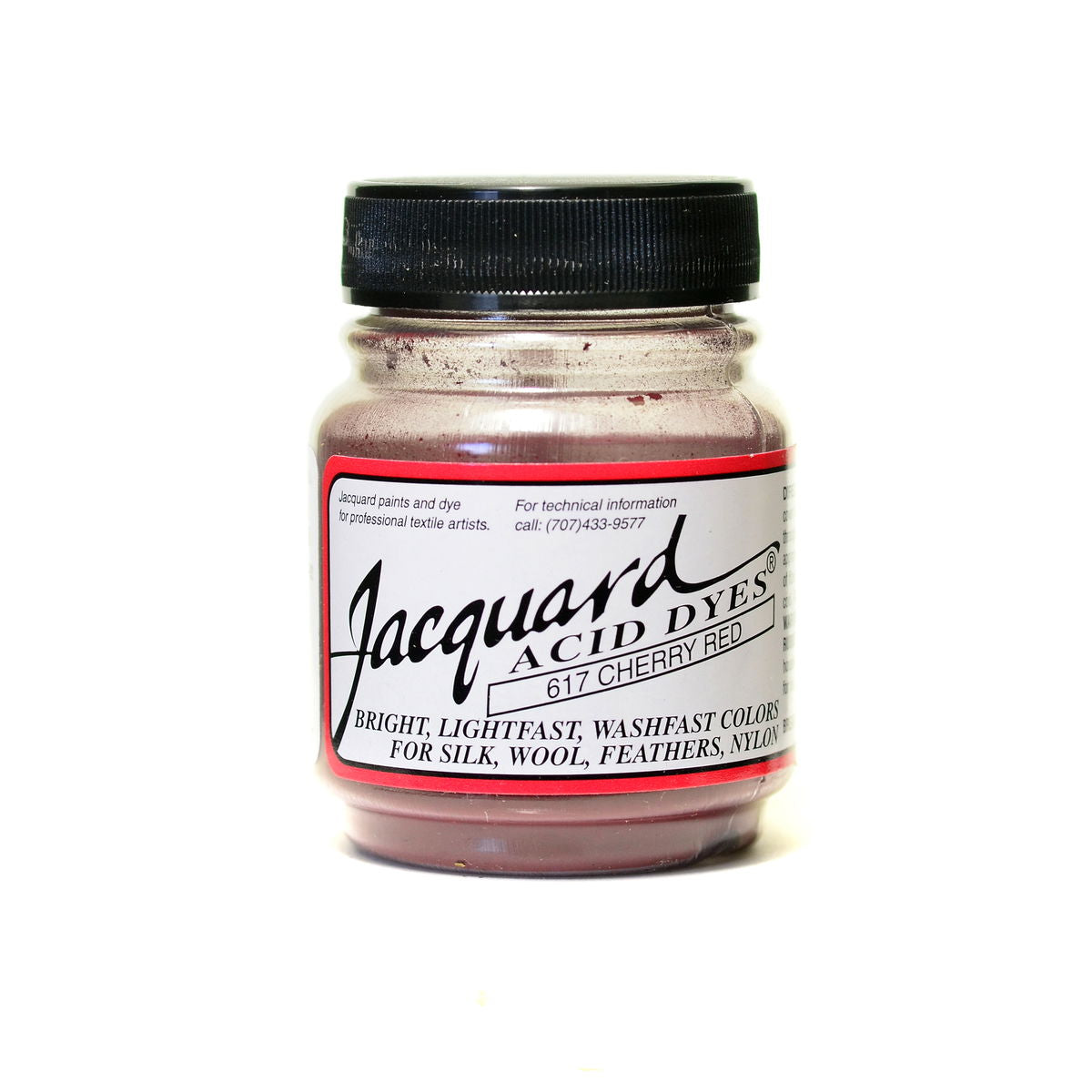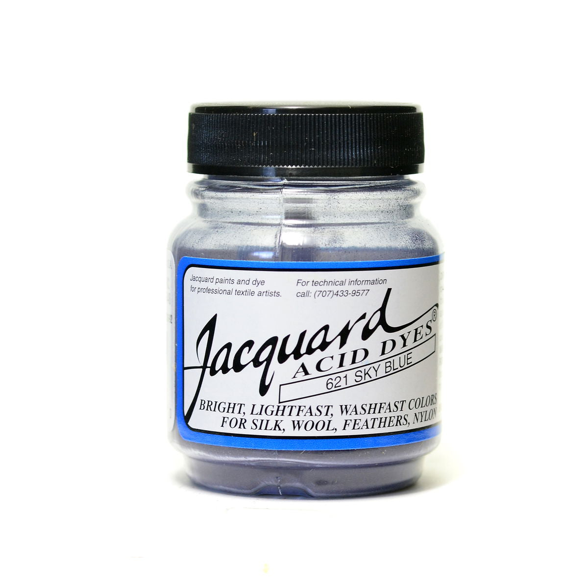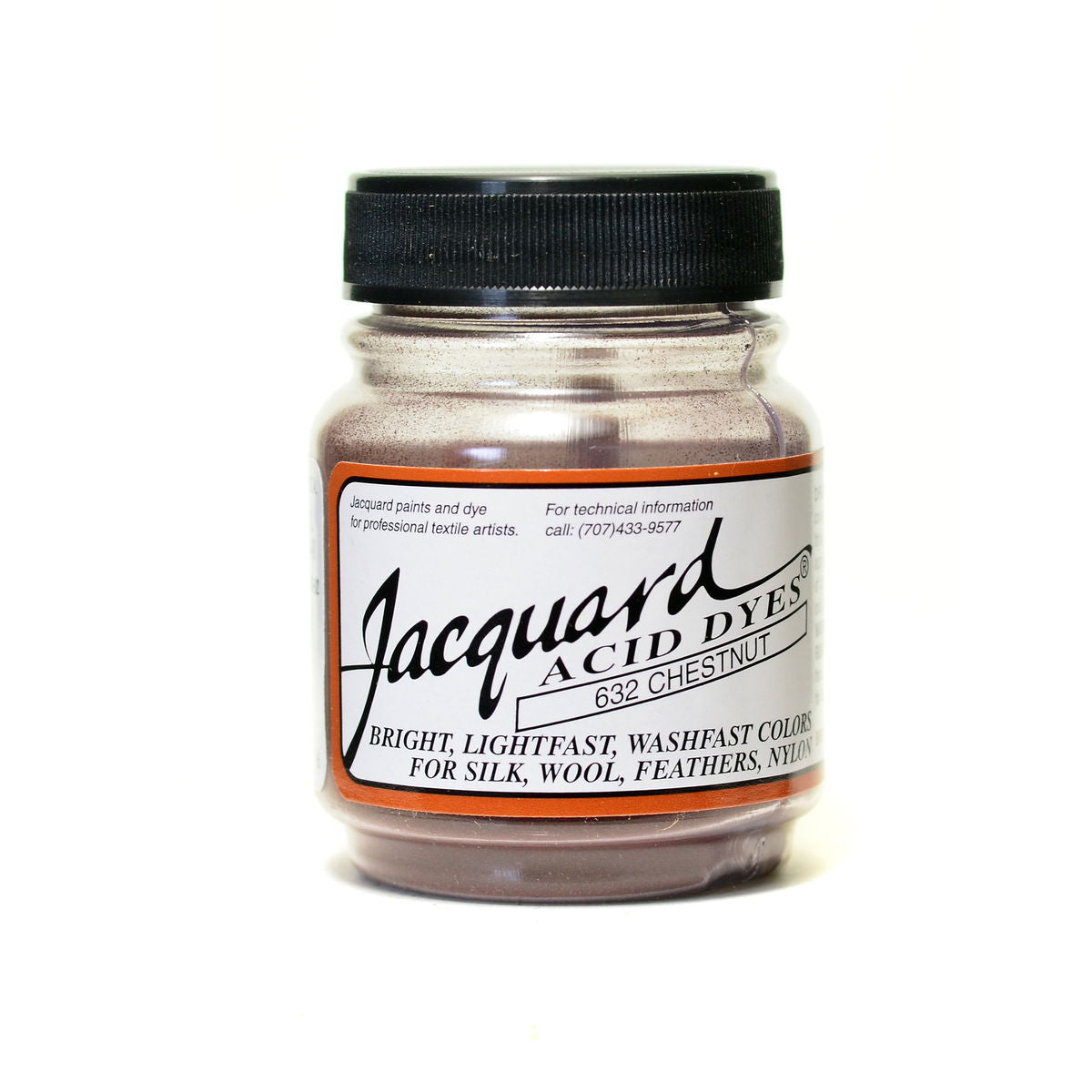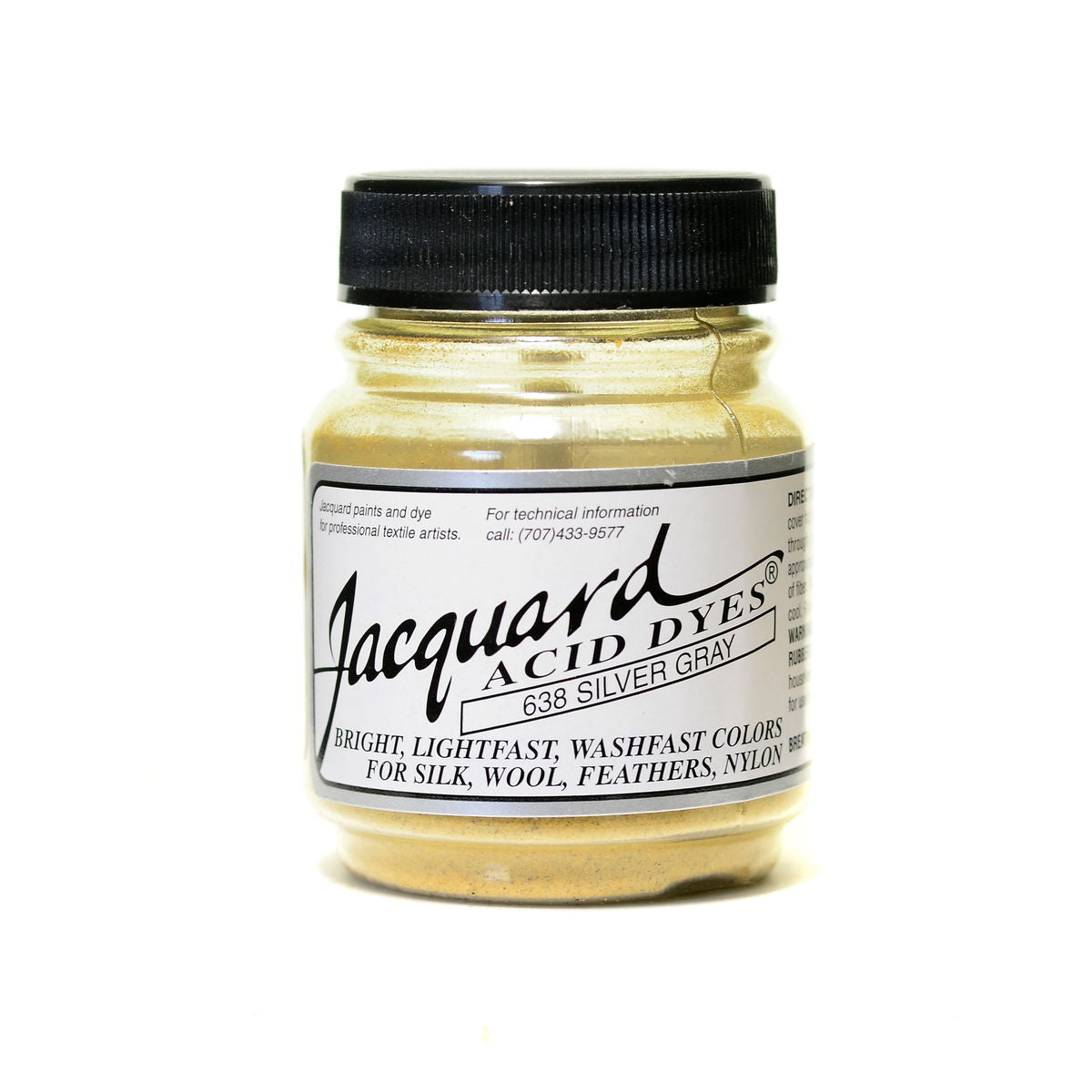 Los tintes ácidos Jacquard son tintes concentrados, en polvo, para agua caliente que producen los resultados más vibrantes posibles en fibras proteínicas, como seda, lana, cachemira, alpaca, plumas y la mayoría de las telas de nailon. No se alarme por el nombre: el único ácido que se utiliza es el vinagre que se agrega. Vienen envasados en un práctico frasco de 1/2 oz que se puede volver a cerrar y que teñirá aproximadamente dos libras de fibra. Los tintes ácidos Jacquard son extremadamente brillantes y no pierden color. Si puede lavar una carga de ropa, puede usar estos tintes. Es así de fácil. Además de teñir prendas en una lavadora, puede usarlos para pintar o estampar.