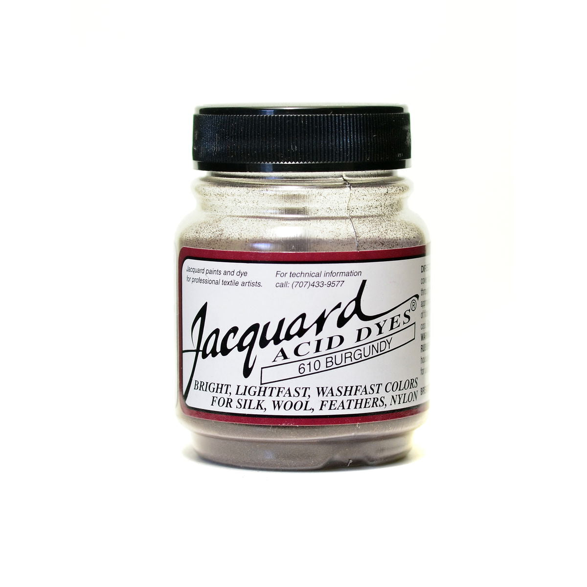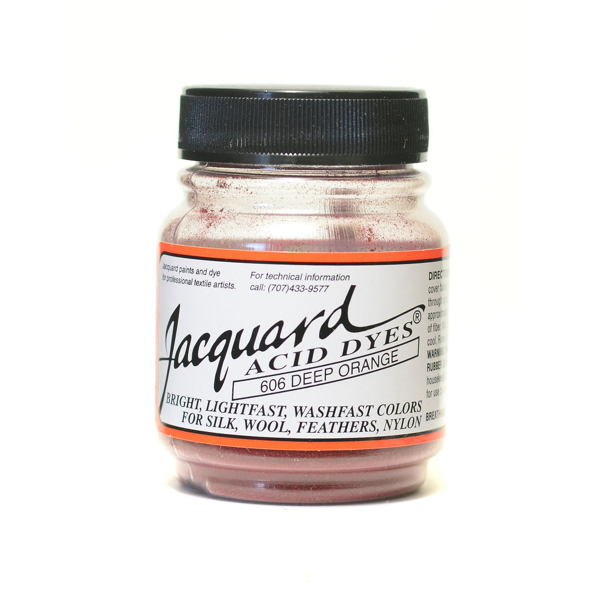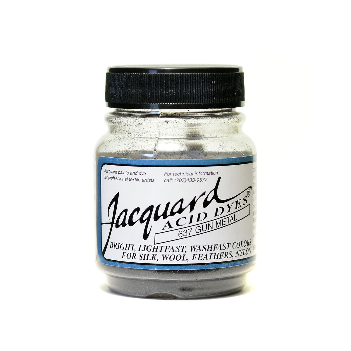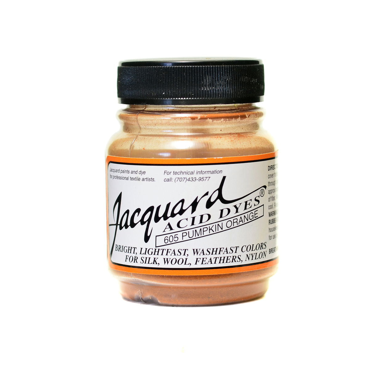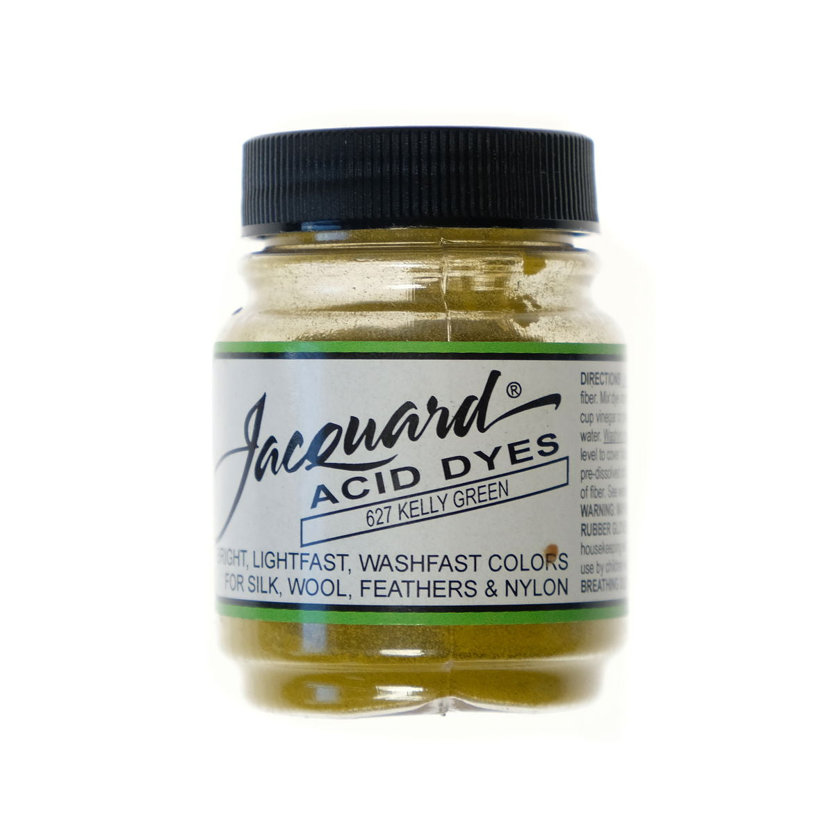 Los tintes ácidos Jacquard son tintes concentrados, en polvo, para agua caliente que producen los resultados más vibrantes posibles en fibras proteínicas, como seda, lana, cachemira, alpaca, plumas y la mayoría de las telas de nailon. No se alarme por el nombre: el único ácido que se utiliza es el vinagre que se agrega. Vienen envasados en un práctico frasco de 1/2 oz que se puede volver a cerrar y que teñirá aproximadamente dos libras de fibra. Los tintes ácidos Jacquard son extremadamente brillantes y no pierden color. Si puede lavar una carga de ropa, puede usar estos tintes. Es así de fácil. Además de teñir prendas en una lavadora, puede usarlos para pintar o estampar.