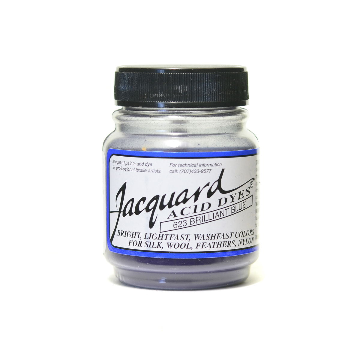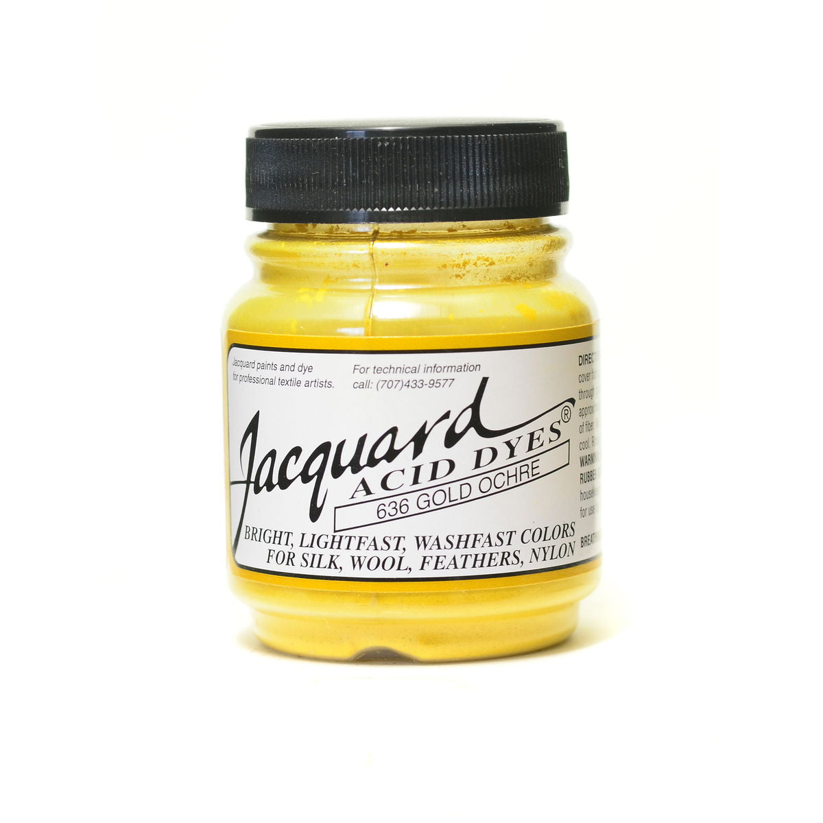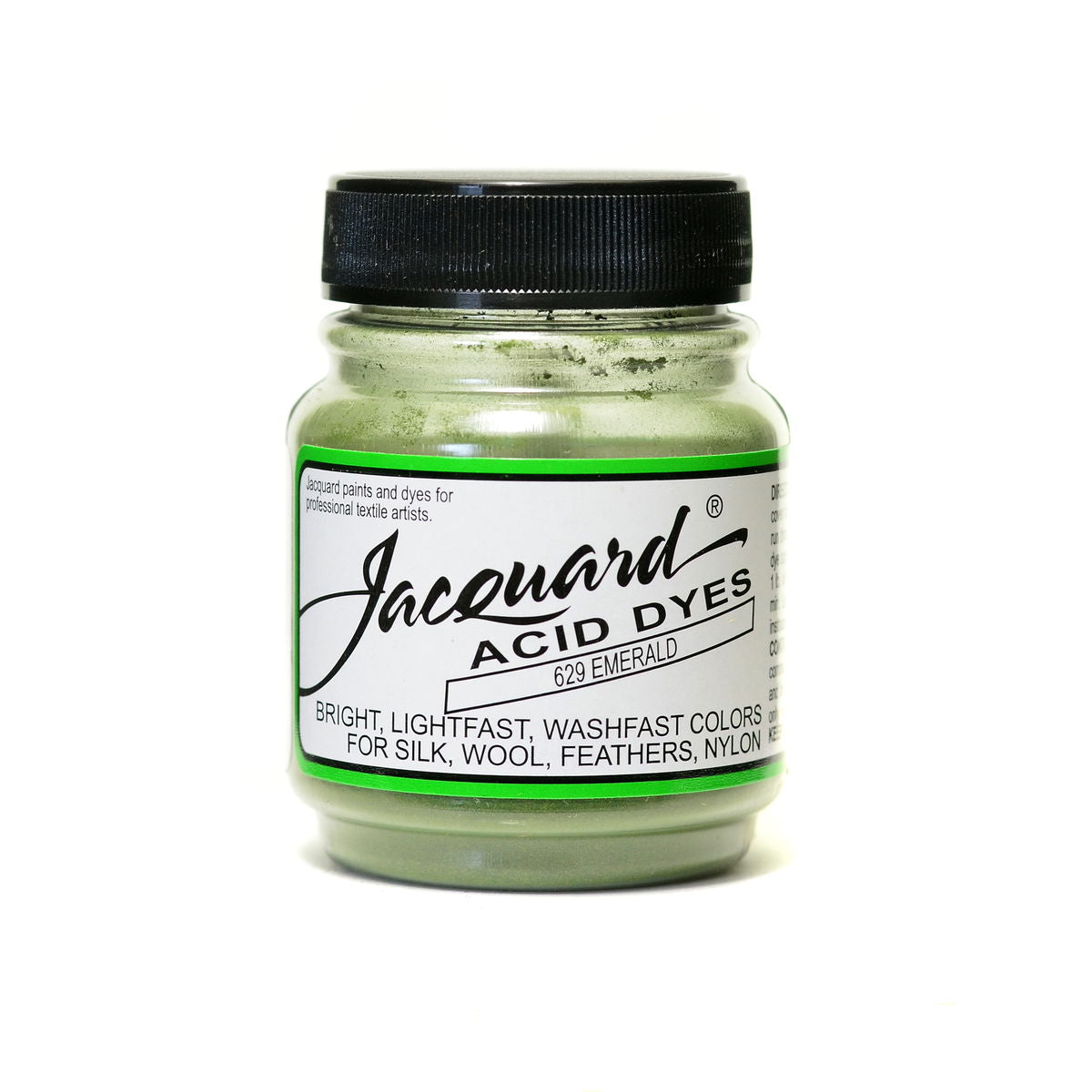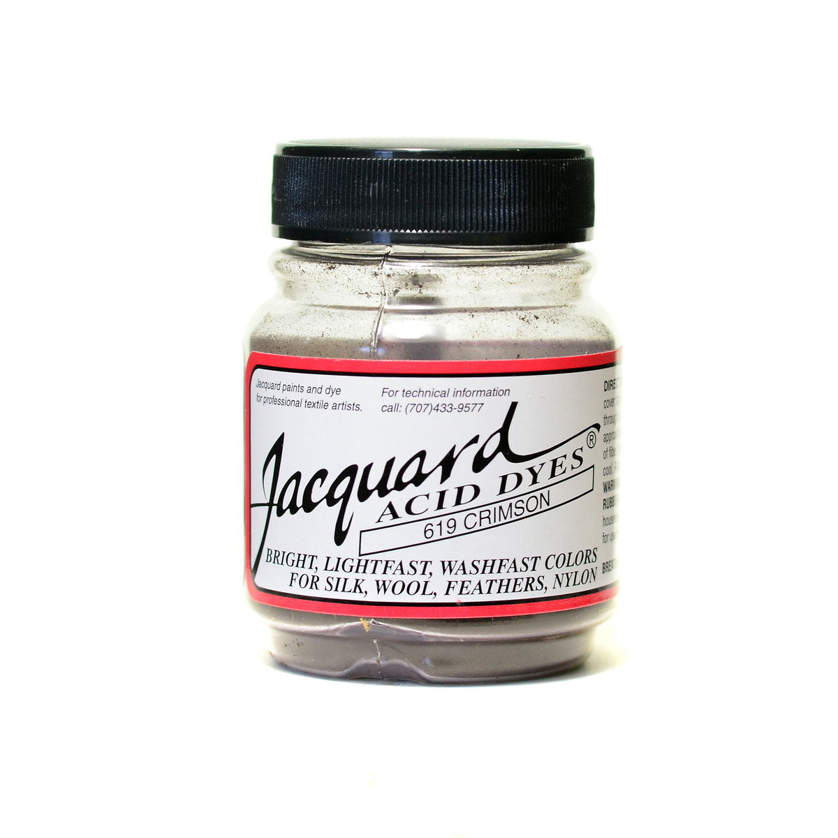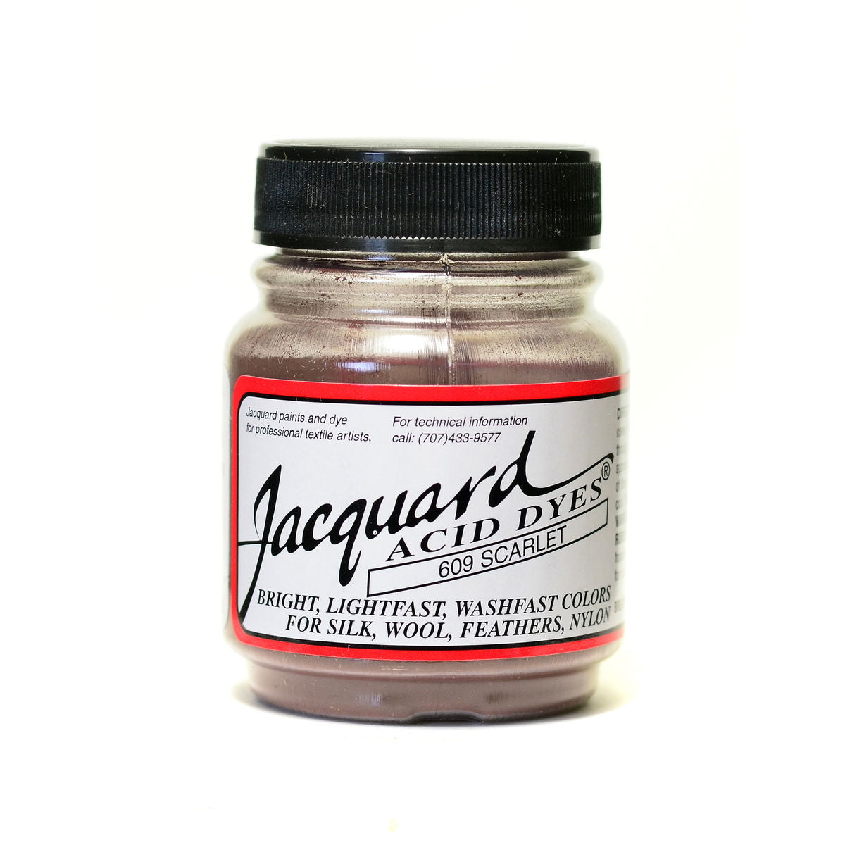 Los tintes ácidos Jacquard son tintes concentrados, en polvo, para agua caliente que producen los resultados más vibrantes posibles en fibras proteínicas, como seda, lana, cachemira, alpaca, plumas y la mayoría de las telas de nailon. No se alarme por el nombre: el único ácido que se utiliza es el vinagre que se agrega. Vienen envasados en un práctico frasco de 1/2 oz que se puede volver a cerrar y que teñirá aproximadamente dos libras de fibra. Los tintes ácidos Jacquard son extremadamente brillantes y no pierden color. Si puede lavar una carga de ropa, puede usar estos tintes. Es así de fácil. Además de teñir prendas en una lavadora, puede usarlos para pintar o estampar.