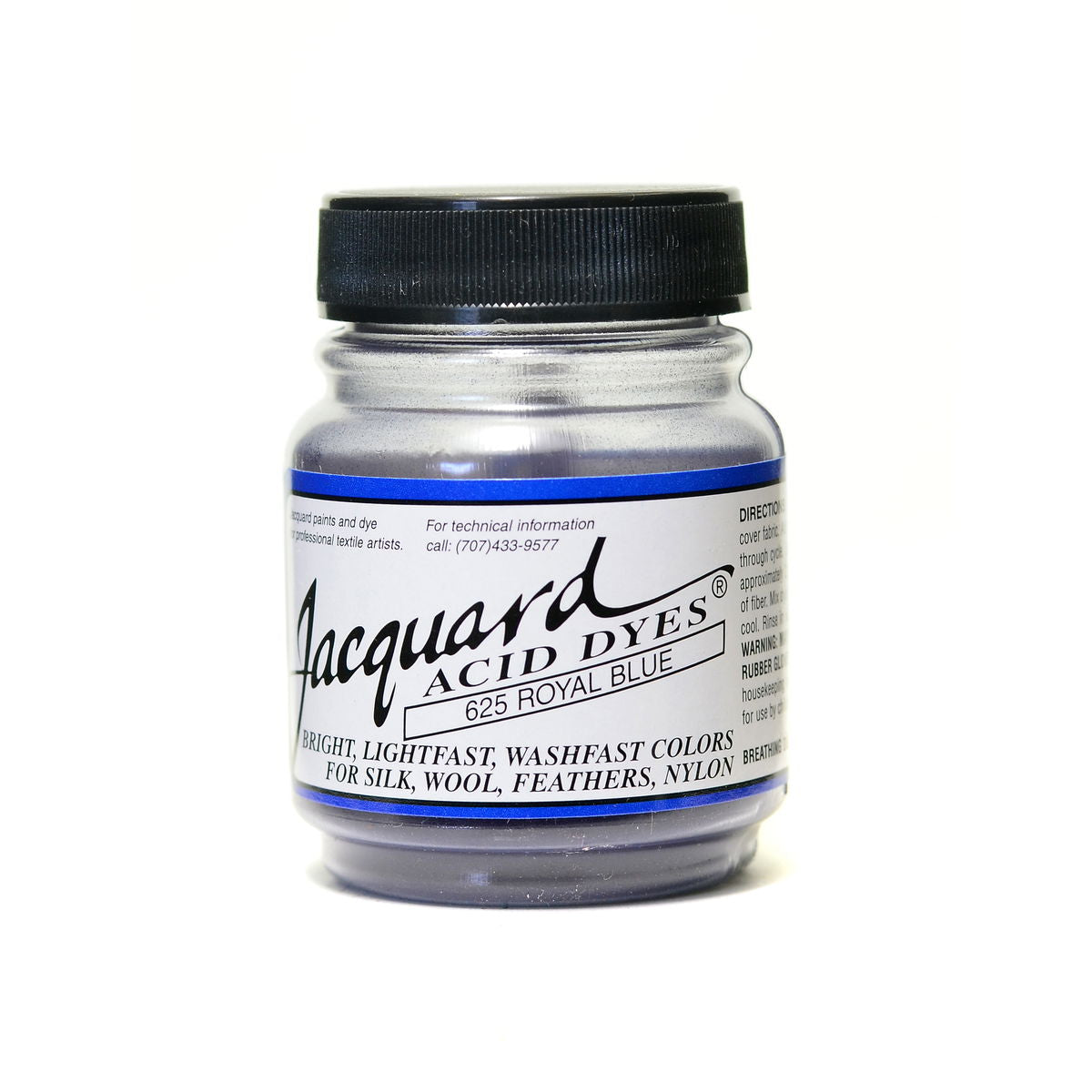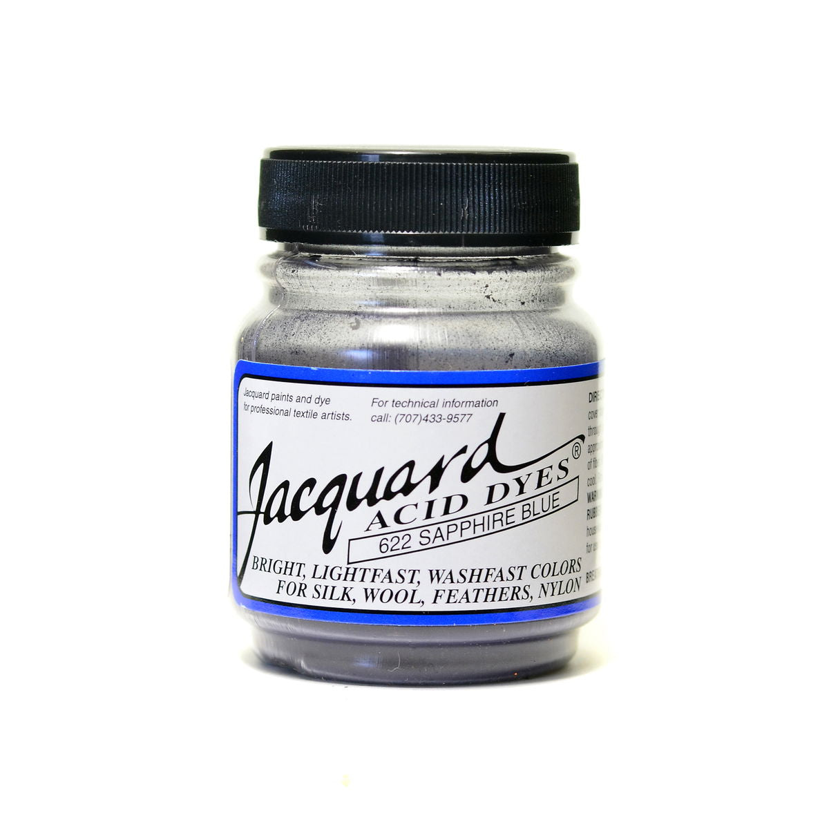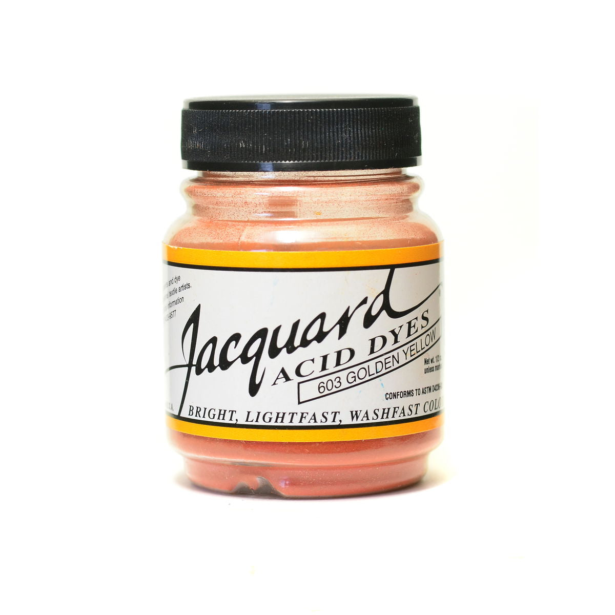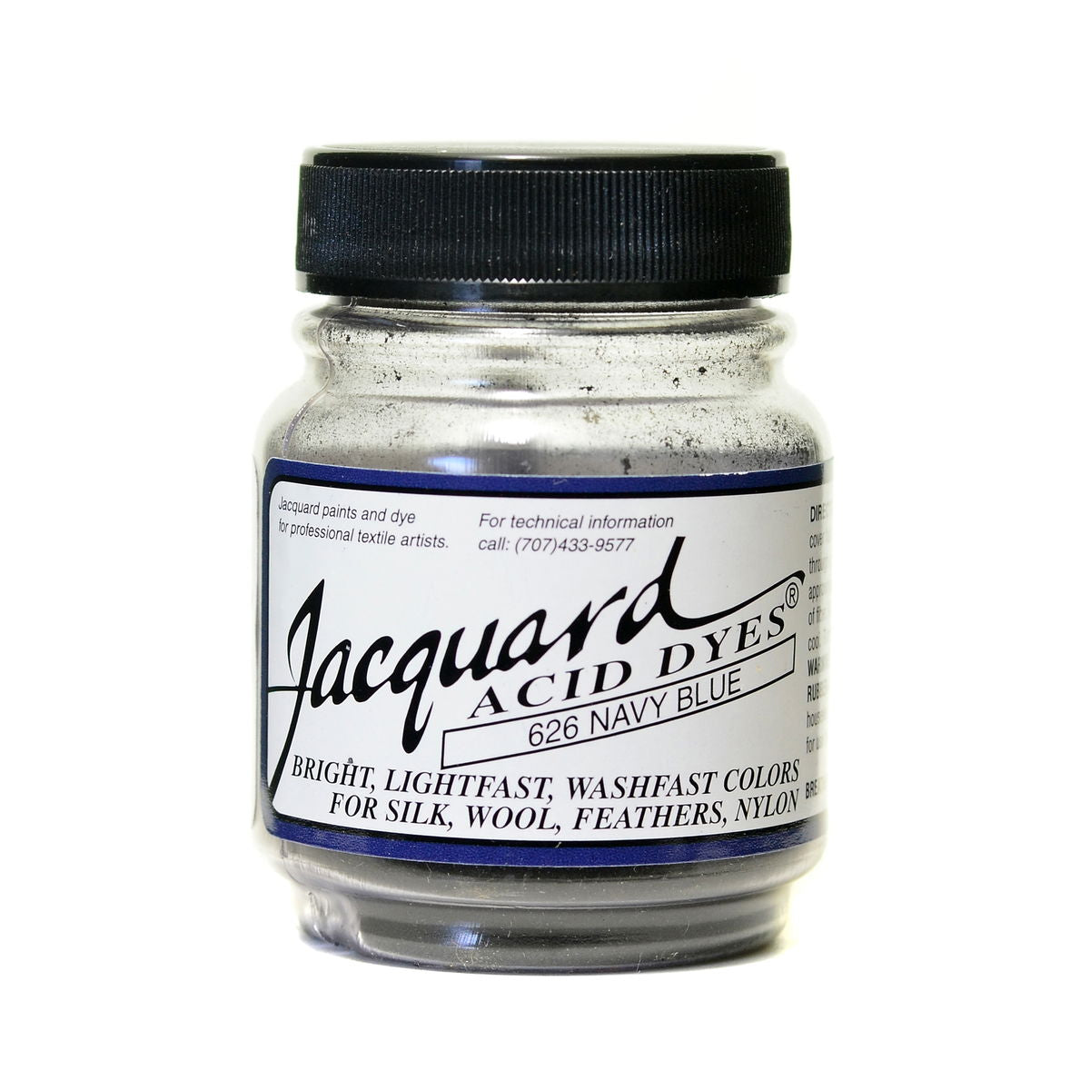 Los tintes ácidos Jacquard son tintes concentrados, en polvo, para agua caliente que producen los resultados más vibrantes posibles en fibras proteínicas, como seda, lana, cachemira, alpaca, plumas y la mayoría de las telas de nailon. No se alarme por el nombre: el único ácido que se utiliza es el vinagre que se agrega. Vienen envasados en un práctico frasco de 1/2 oz que se puede volver a cerrar y que teñirá aproximadamente dos libras de fibra. Los tintes ácidos Jacquard son extremadamente brillantes y no pierden color. Si puede lavar una carga de ropa, puede usar estos tintes. Es así de fácil. Además de teñir prendas en una lavadora, puede usarlos para pintar o estampar.