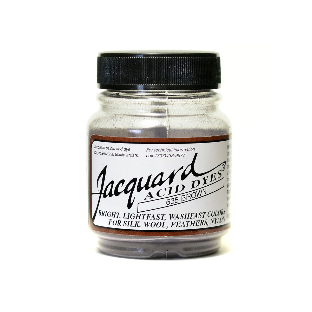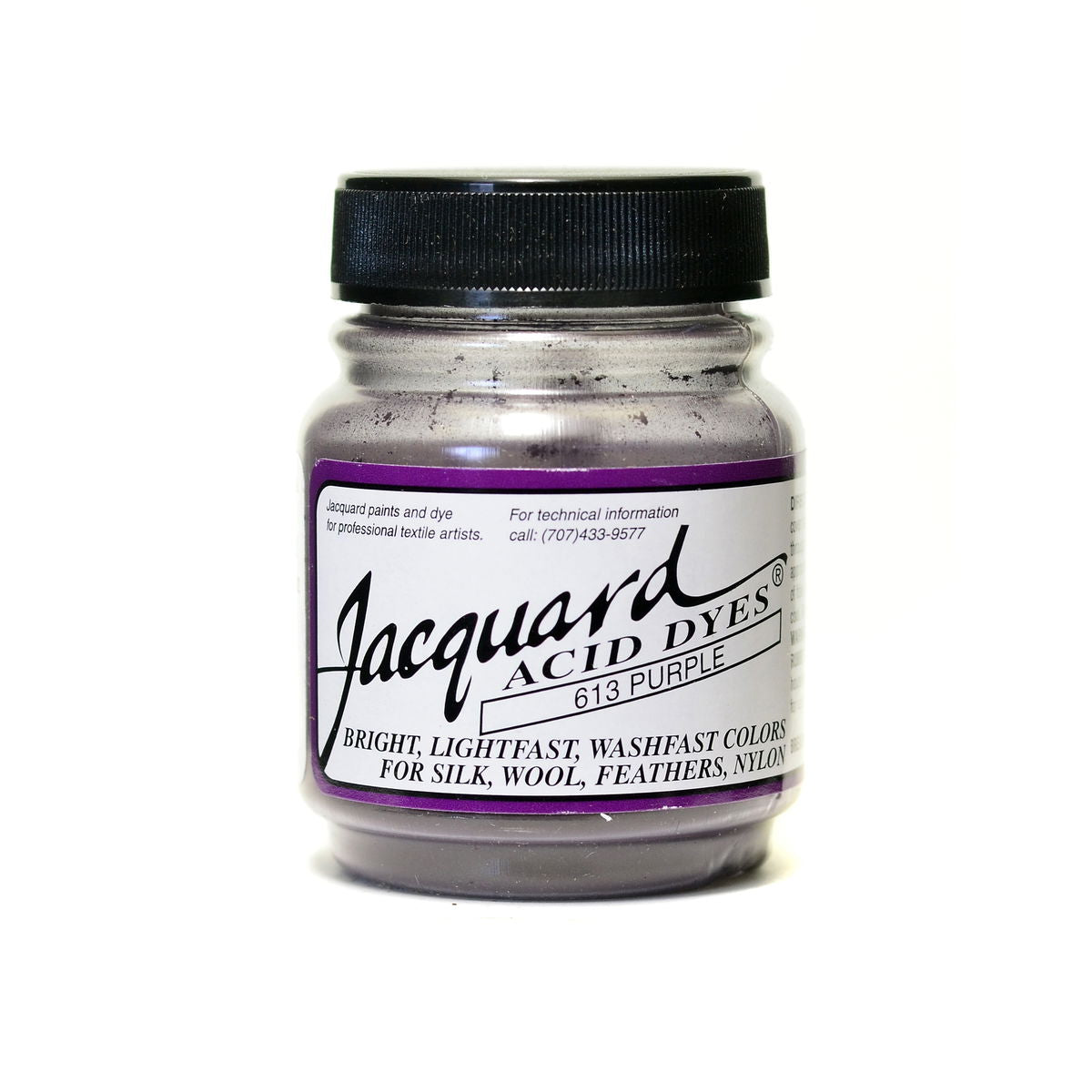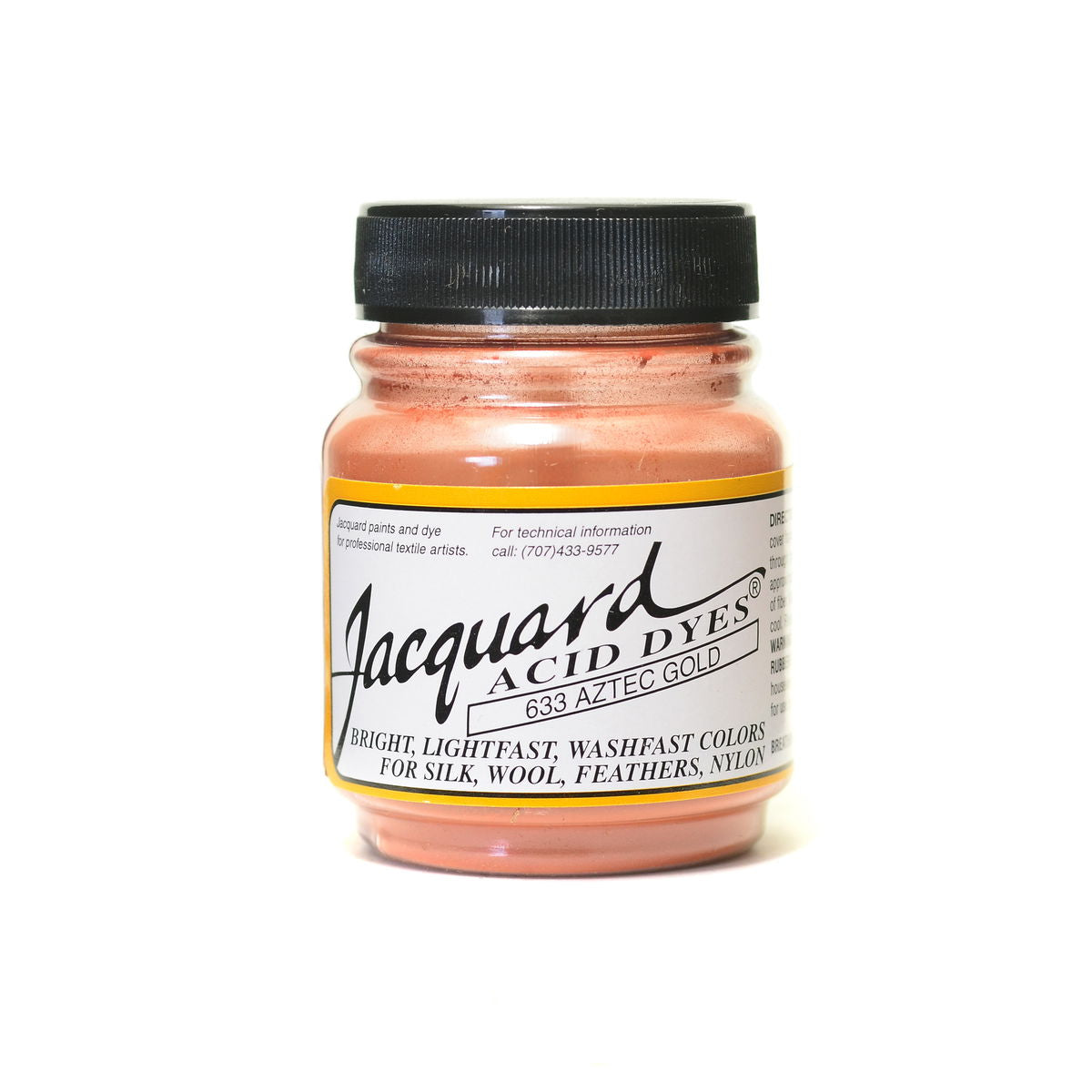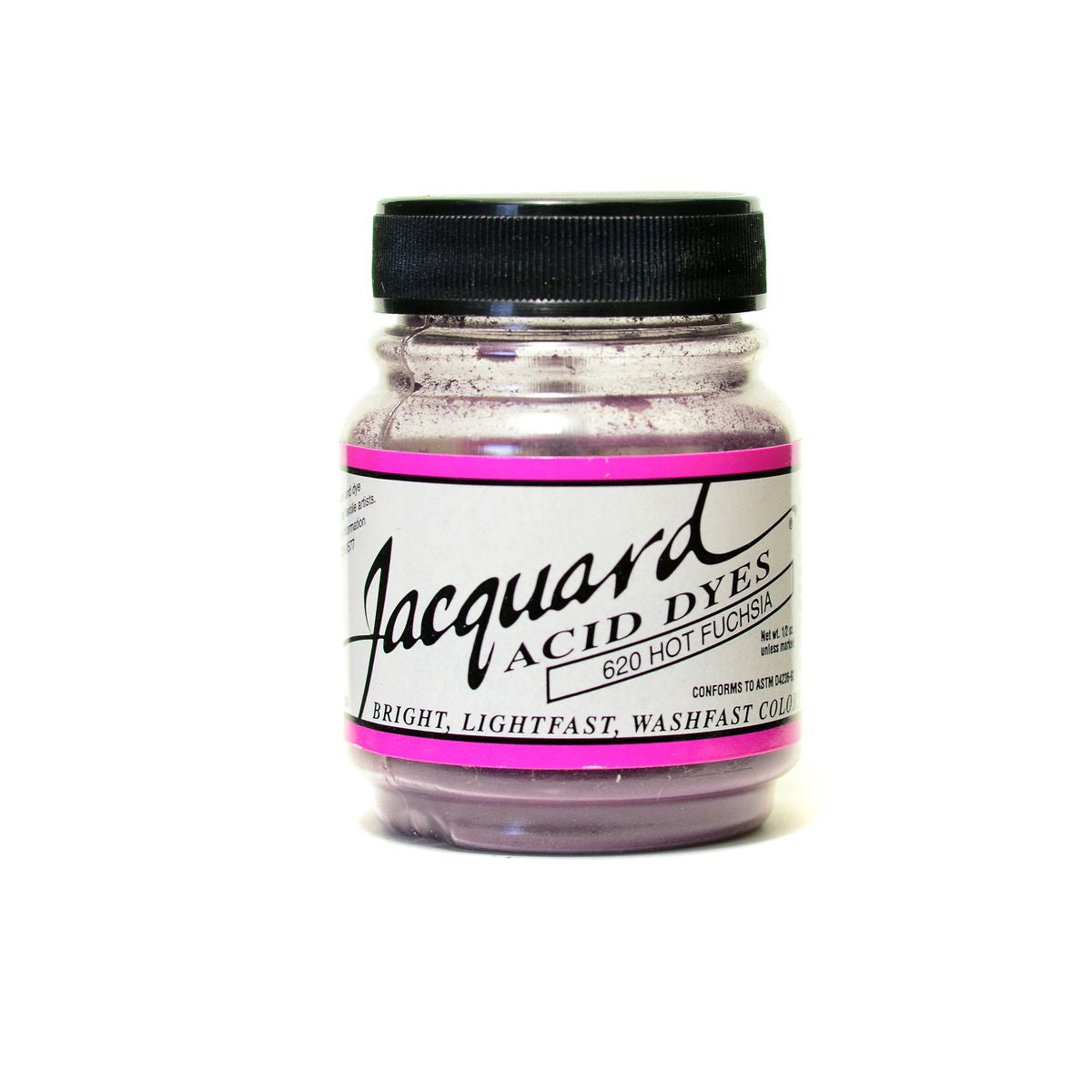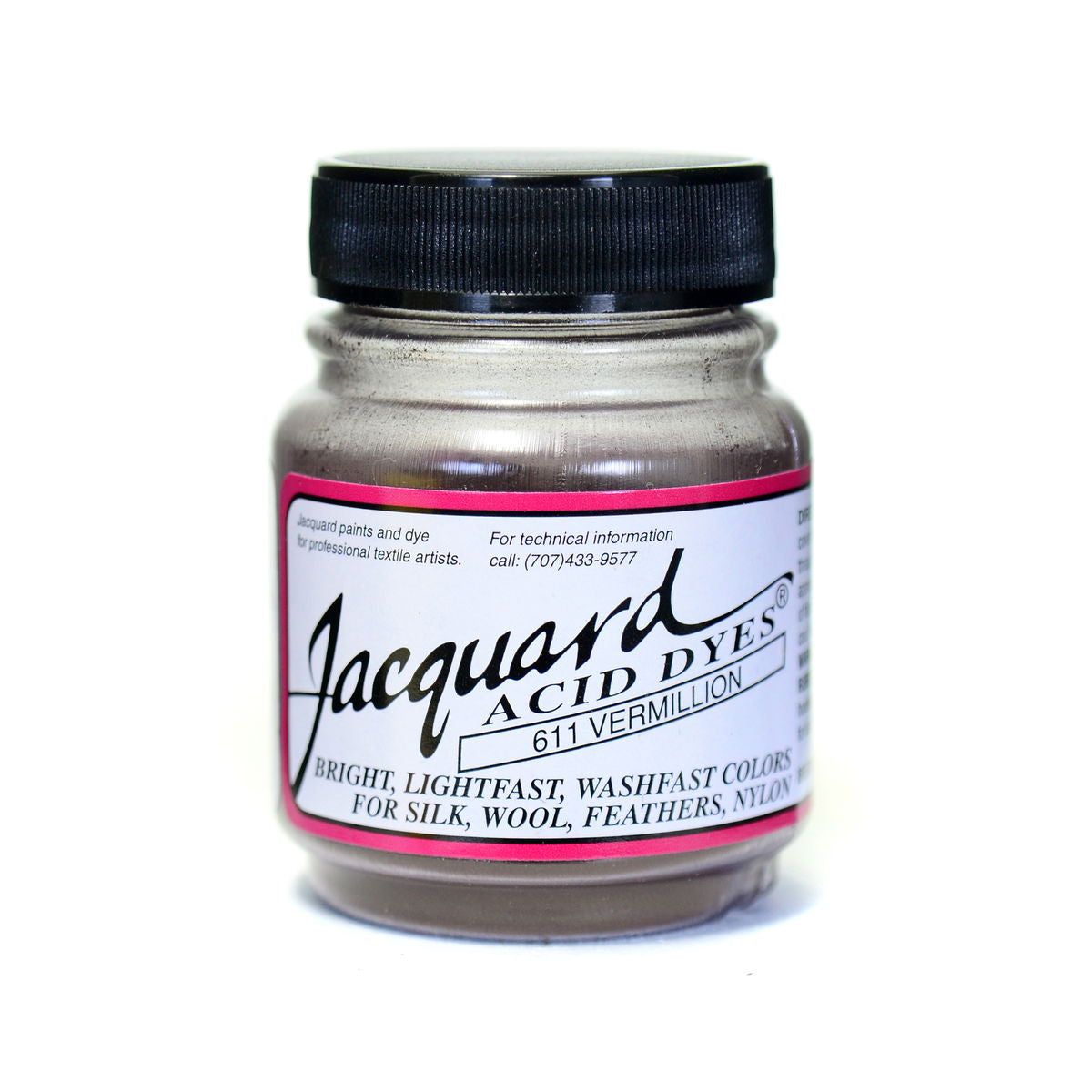 Los tintes ácidos Jacquard son tintes concentrados, en polvo, para agua caliente que producen los resultados más vibrantes posibles en fibras proteínicas, como seda, lana, cachemira, alpaca, plumas y la mayoría de las telas de nailon. No se alarme por el nombre: el único ácido que se utiliza es el vinagre que se agrega. Vienen envasados en un práctico frasco de 1/2 oz que se puede volver a cerrar y que teñirá aproximadamente dos libras de fibra. Los tintes ácidos Jacquard son extremadamente brillantes y no pierden color. Si puede lavar una carga de ropa, puede usar estos tintes. Es así de fácil. Además de teñir prendas en una lavadora, puede usarlos para pintar o estampar.