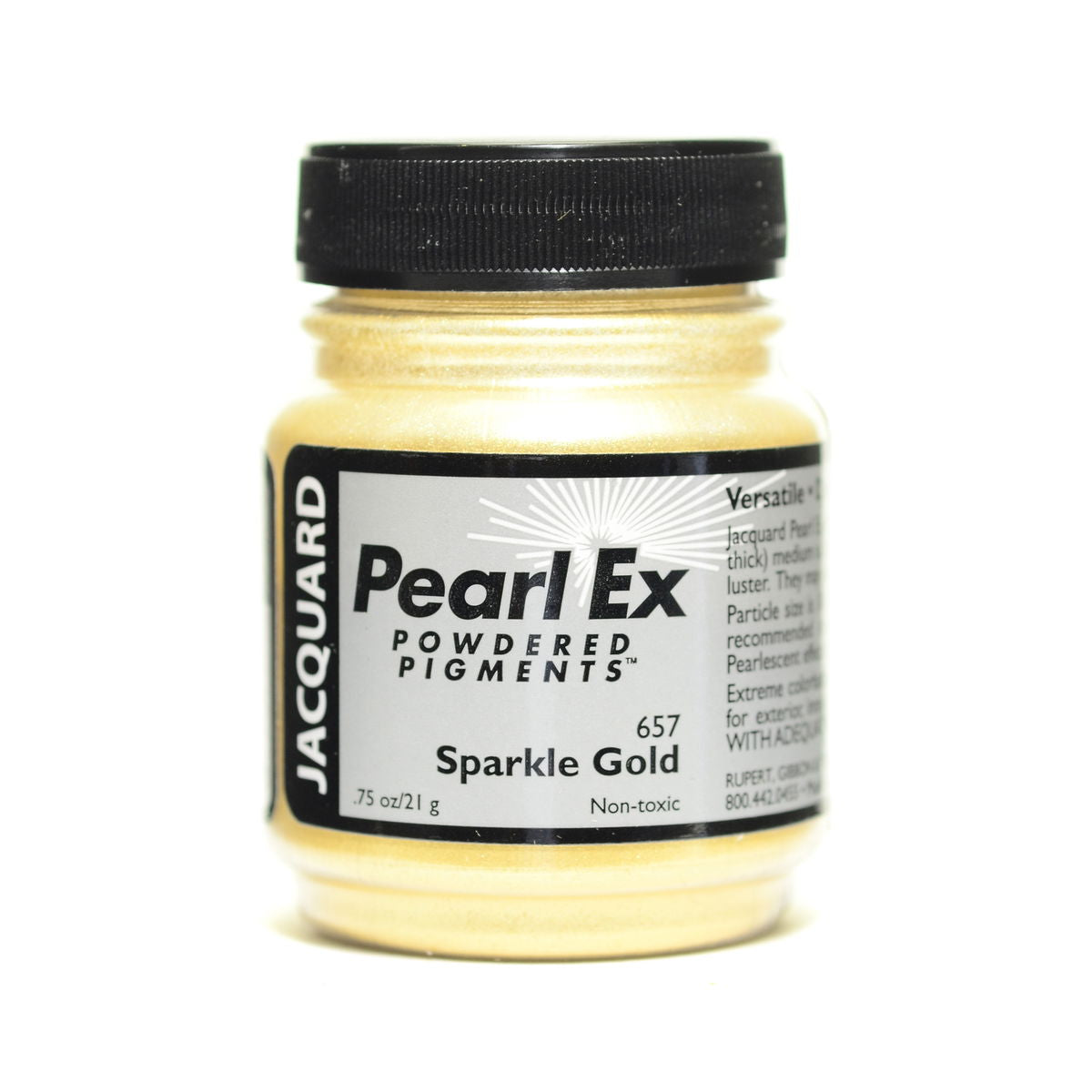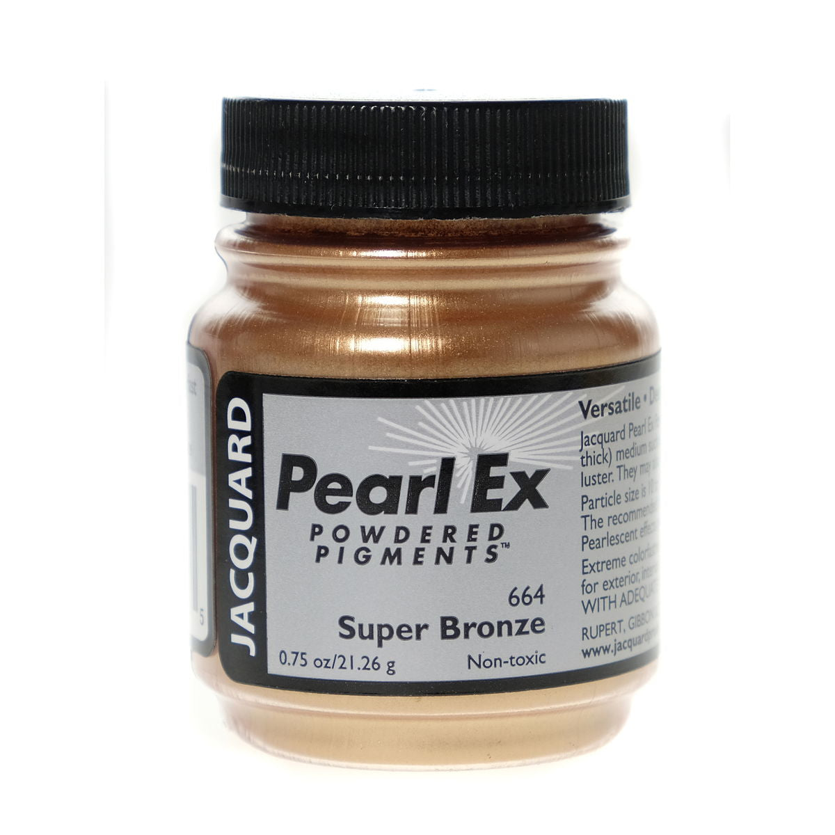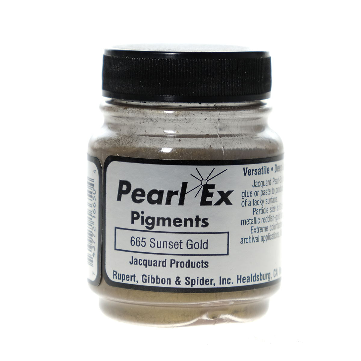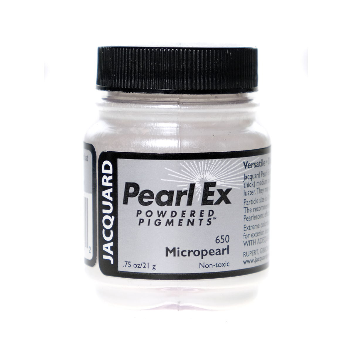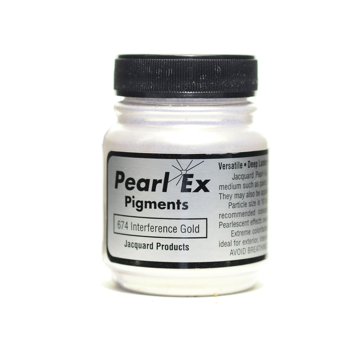 Pigmentos metálicos en polvo que se adaptan a tu proceso en lugar de imponerlo. Jacquard Pearl Ex funciona en húmedo o seco, mezclado con pintura, espolvoreado sobre superficies o estampado directamente sobre materiales porosos. El polvo fino se dispersa completamente en medios desde acrílico hasta barniz, creando efectos metálicos sin la granulosidad que afecta la aplicación uniforme. Su estabilidad térmica de hasta 300 °C permite incorporar estos pigmentos en proyectos de arcilla polimérica y hornearlos sin decoloración.