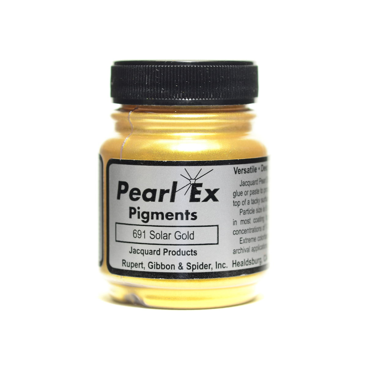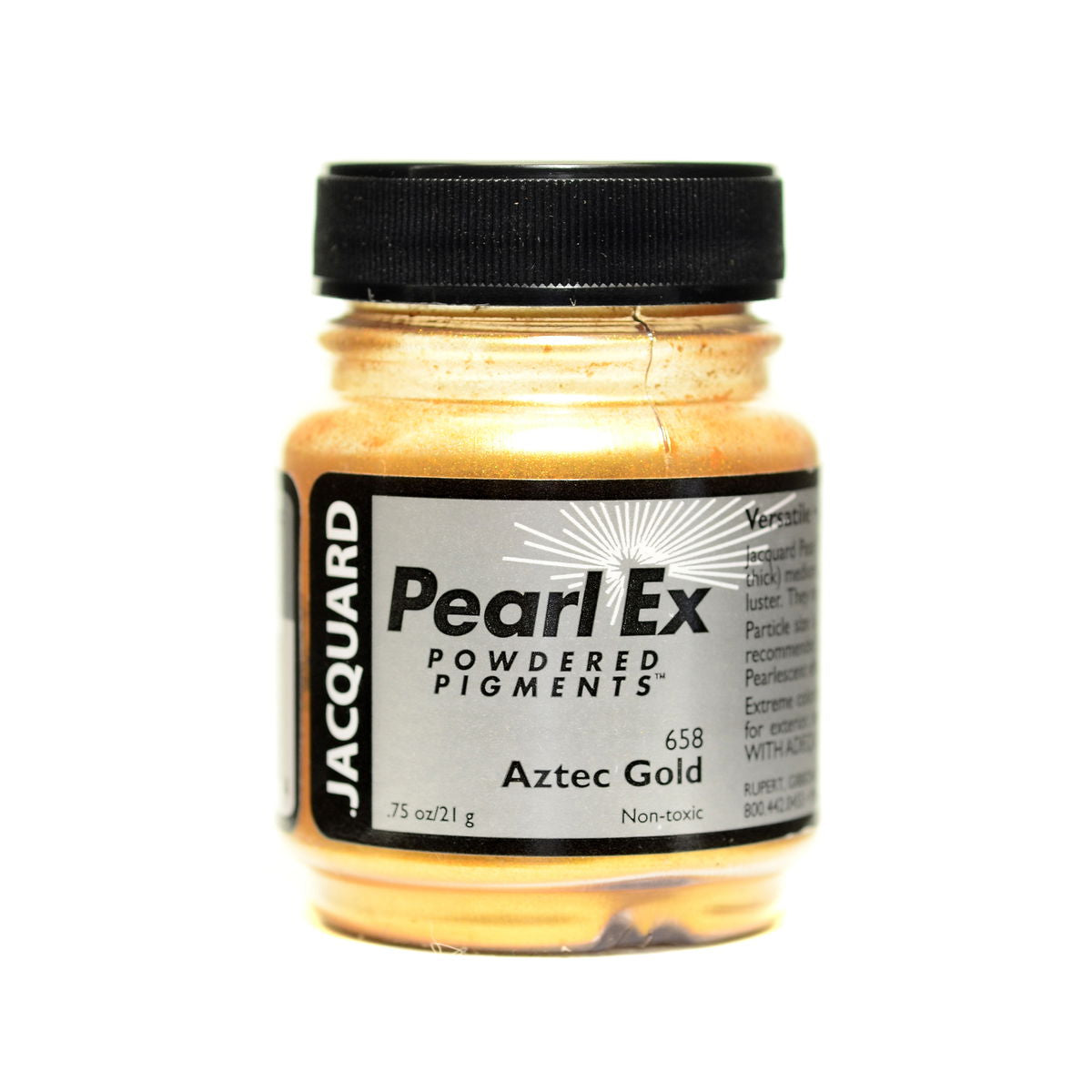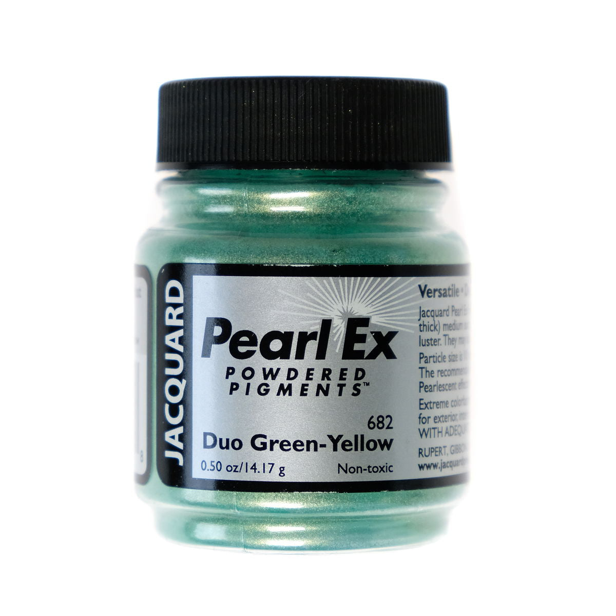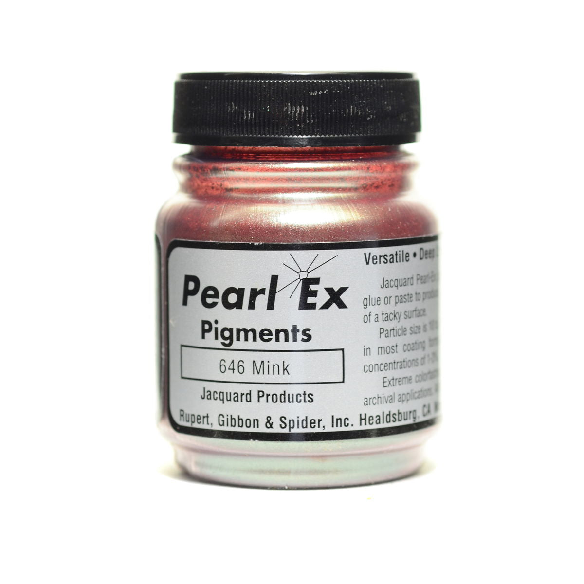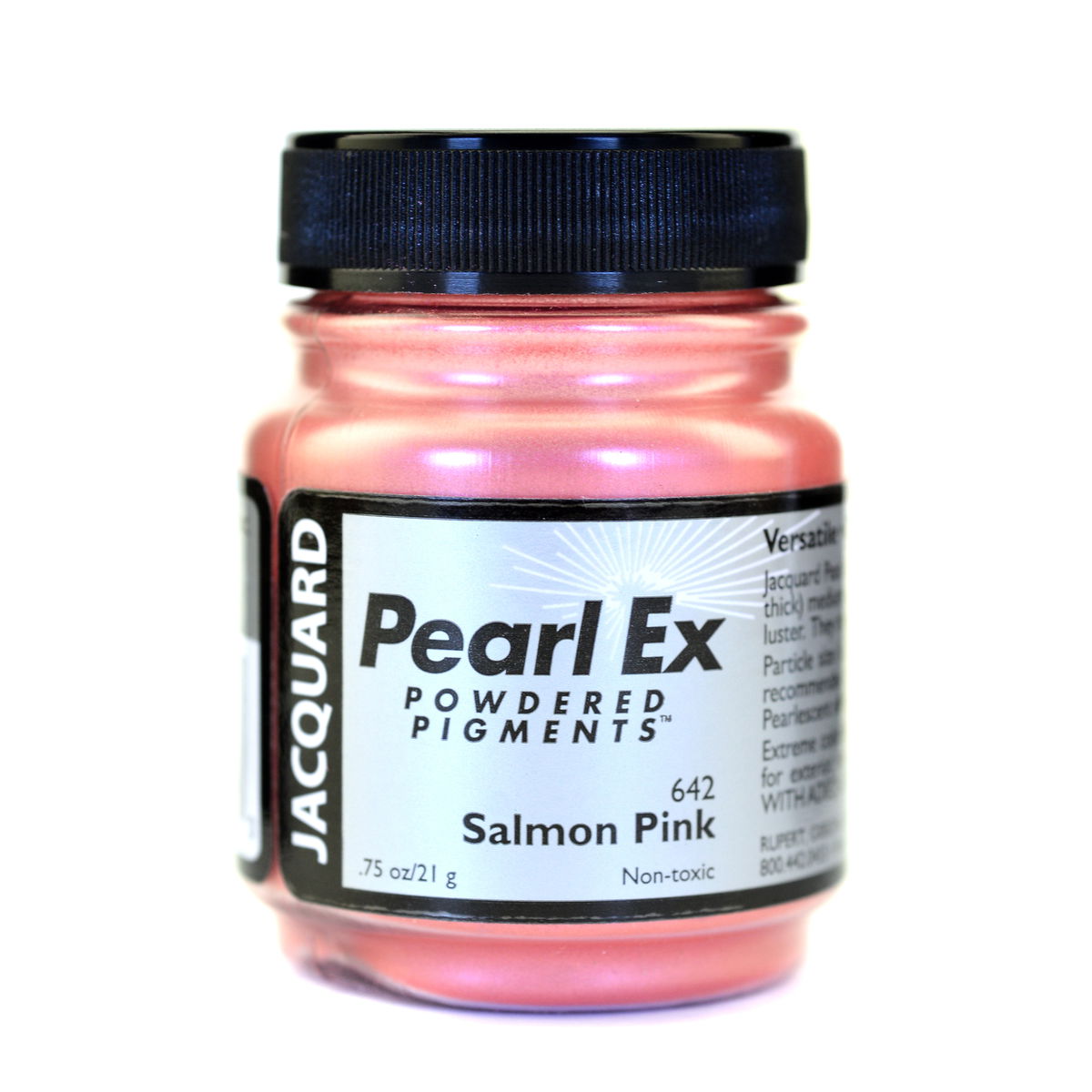 Pigmentos metálicos en polvo que se adaptan a tu proceso en lugar de imponerlo. Jacquard Pearl Ex funciona en húmedo o seco, mezclado con pintura, espolvoreado sobre superficies o estampado directamente sobre materiales porosos. El polvo fino se dispersa completamente en medios desde acrílico hasta barniz, creando efectos metálicos sin la granulosidad que afecta la aplicación uniforme. Su estabilidad térmica de hasta 300 °C permite incorporar estos pigmentos en proyectos de arcilla polimérica y hornearlos sin decoloración.