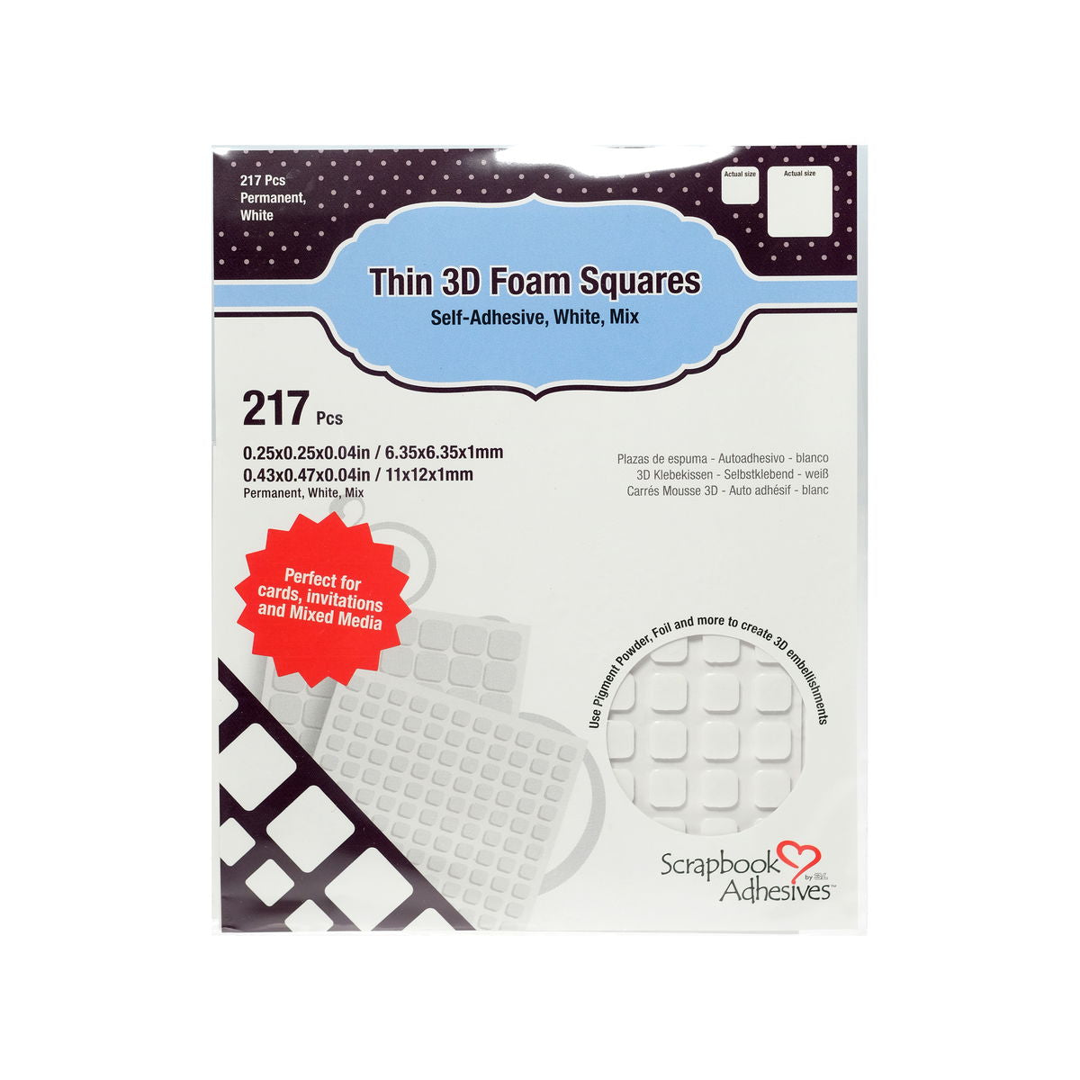 Estos cuadrados de espuma de alta densidad garantizan una gran durabilidad y añaden dimensión a cualquier proyecto de manualidades con papel. Usa espuma blanca sobre fondos claros y espuma negra sobre fondos oscuros. Cada color está disponible en tamaño regular o pequeño para que los adornos, pequeños o estrechos, destaquen fácilmente. También hay disponible un paquete de varios tamaños de perfil fino para una definición menos definida.