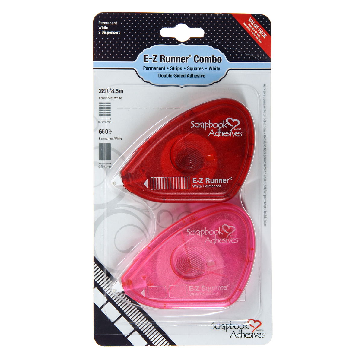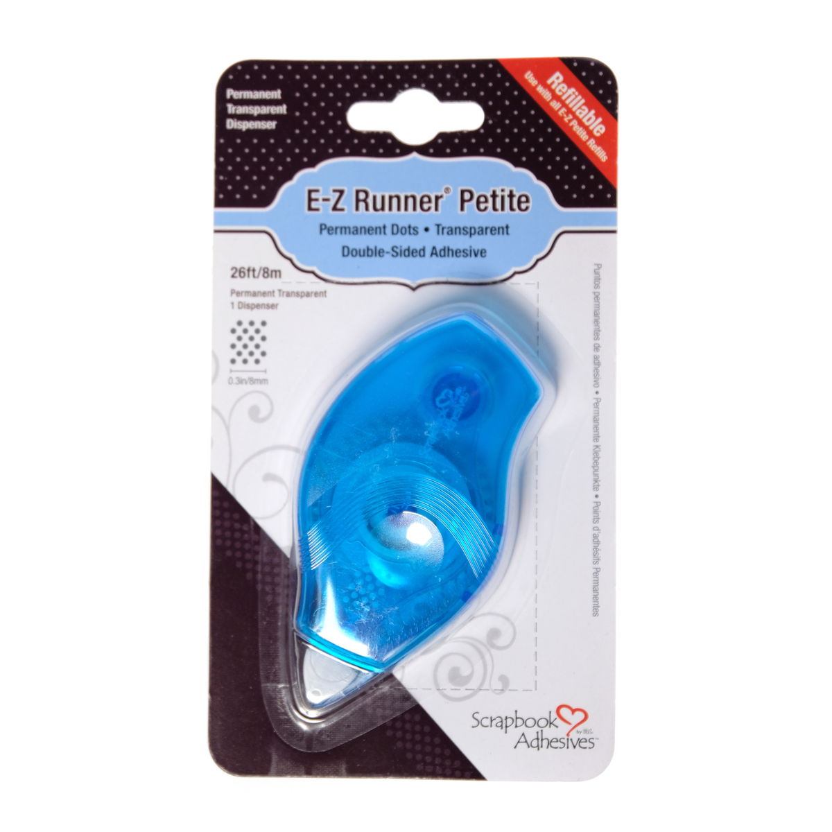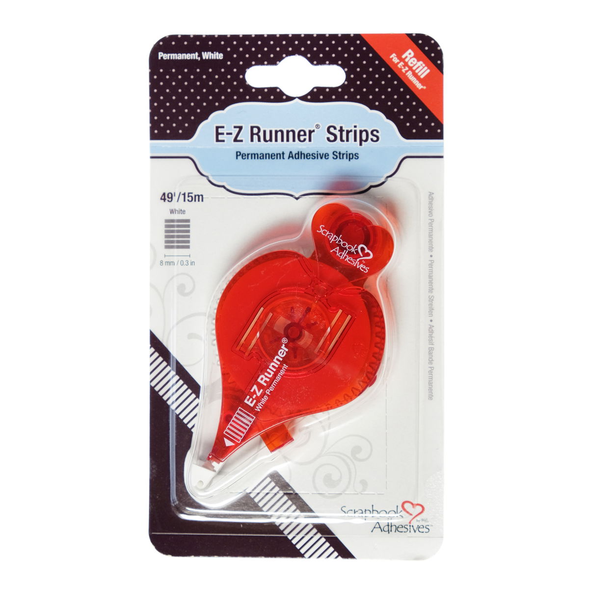 Los dispensadores EZ-Runner están diseñados pensando en las necesidades de los artesanos. Estos resistentes adhesivos son ideales para áreas pequeñas, fáciles de usar y tienen repuestos que no requieren enhebrado ni enrollado. Los dispensadores EZ-Runner y sus repuestos a juego están disponibles en 4 tipos de adhesivo: Tiras Permanentes en un rollo de 0,8 cm x 15,9 m, Puntos Reposicionables en un rollo de 0,8 cm x 13,1 m, Cinta Permanente Ultra Fuerte en un rollo de 0,8 cm x 12,8 m y Puntos Permanentes Pequeños en un rollo de 0,8 cm x 7,9 m. El repuesto Pequeño contiene 2 repuestos por paquete en lugar de uno.