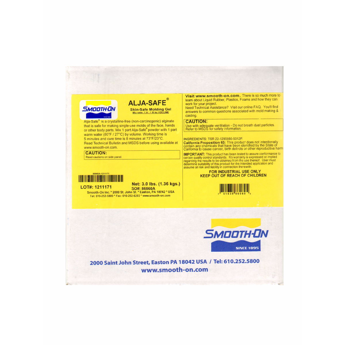 Alja-Safe es el primer alginato cristalino sin sílice del mundo, lo que ayuda a que su estudio sea más libre de carcinógenos. Cree moldes desechables para rostros, manos y otras partes del cuerpo de excelente calidad, ya que Alja-Safe captura los detalles mejor que otros alginatos para lograr representaciones más precisas de los originales. Alja-Safe es fácil de usar, cura rápidamente y es apto para dos reproducciones.